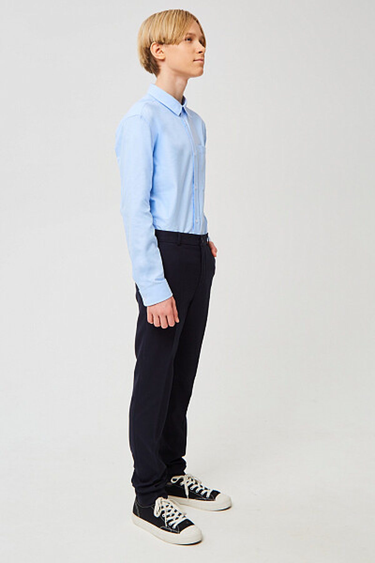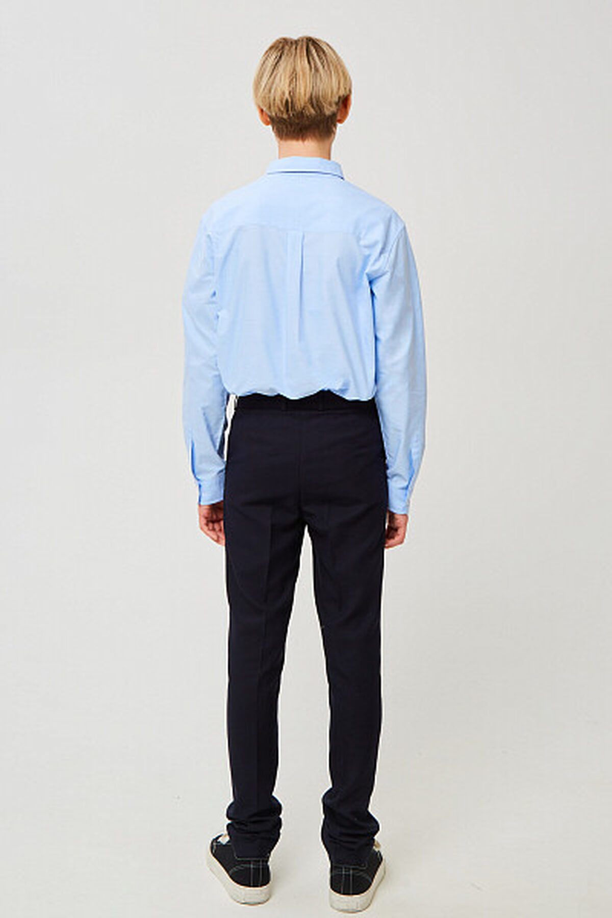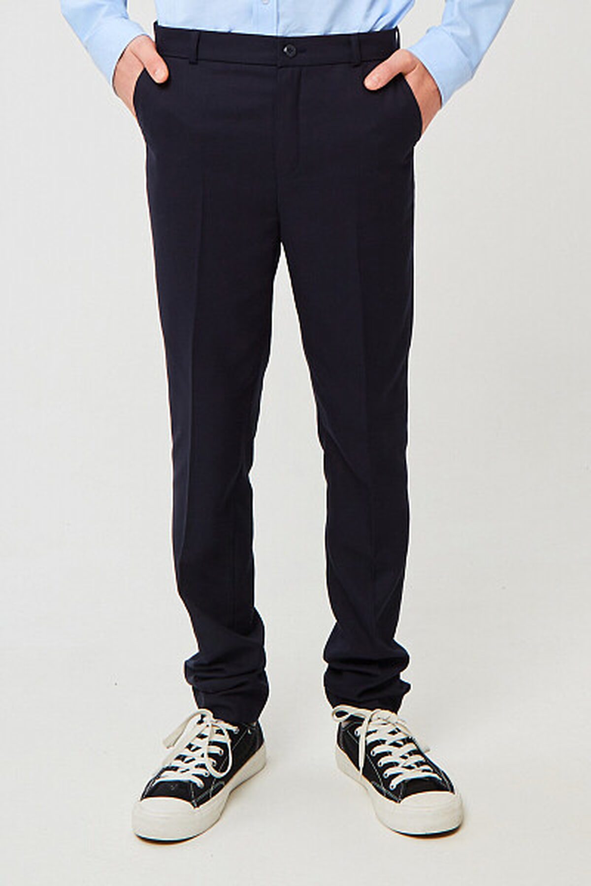 Классические брюки для мальчика из износостойкой и устойчивой к смятию костюмной поливискозы немного зауженные к низу. На передней части брюк боковые карманы, заглаженные стрелки и застёжка - гульфик на молнии. На правой задней половинке брюк - карман с клапаном, на втачном поясе с регулировкой и шлёвками. Отличный вариант на каждый день.