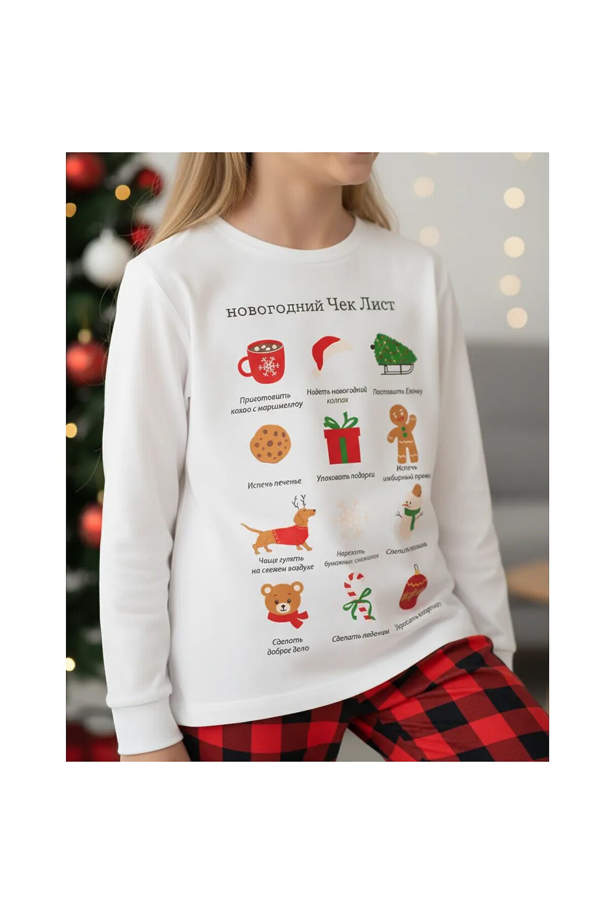 Детская пижама с новогодним принтом.
