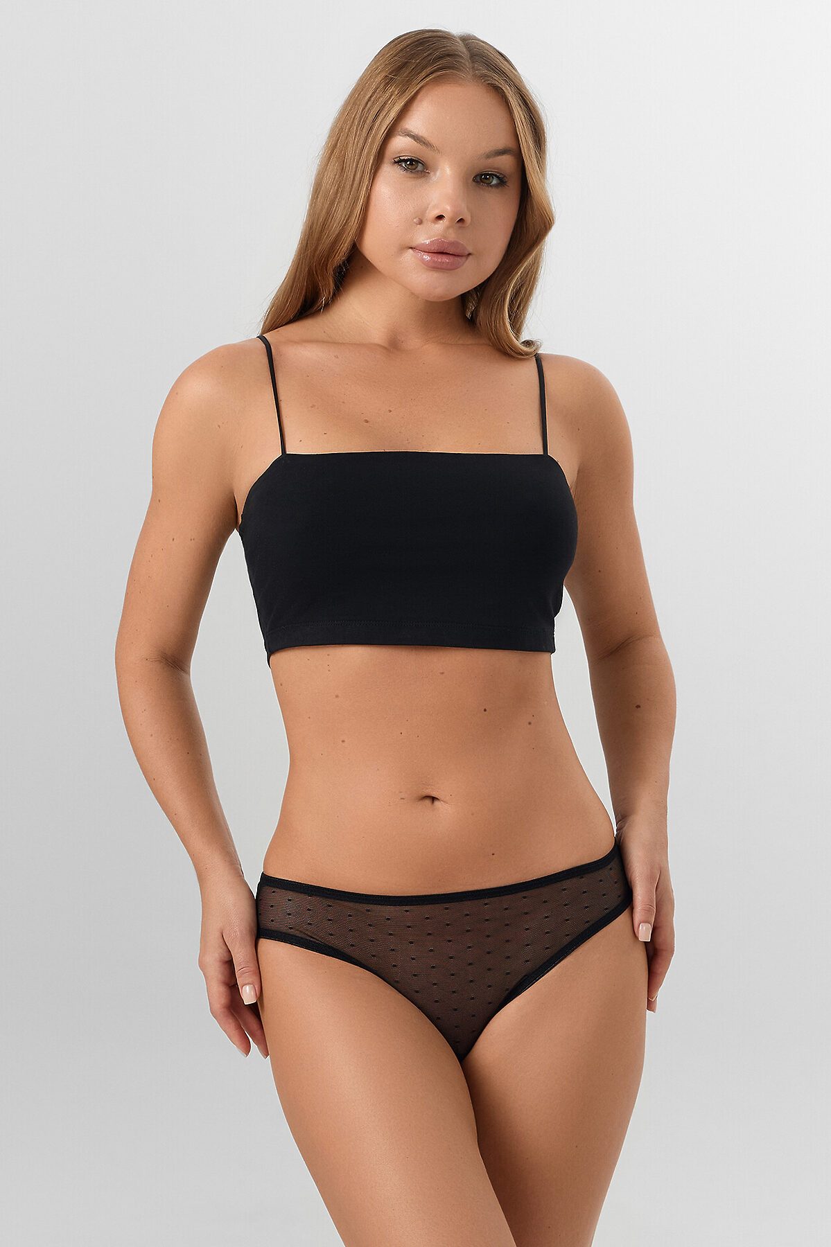 Женские слип-бикини с классической линией талии. Выполнены из невесомой полупрозрачной сетки. По верхнему и нижним срезам – эластичная тесьма. Рекомендуем!