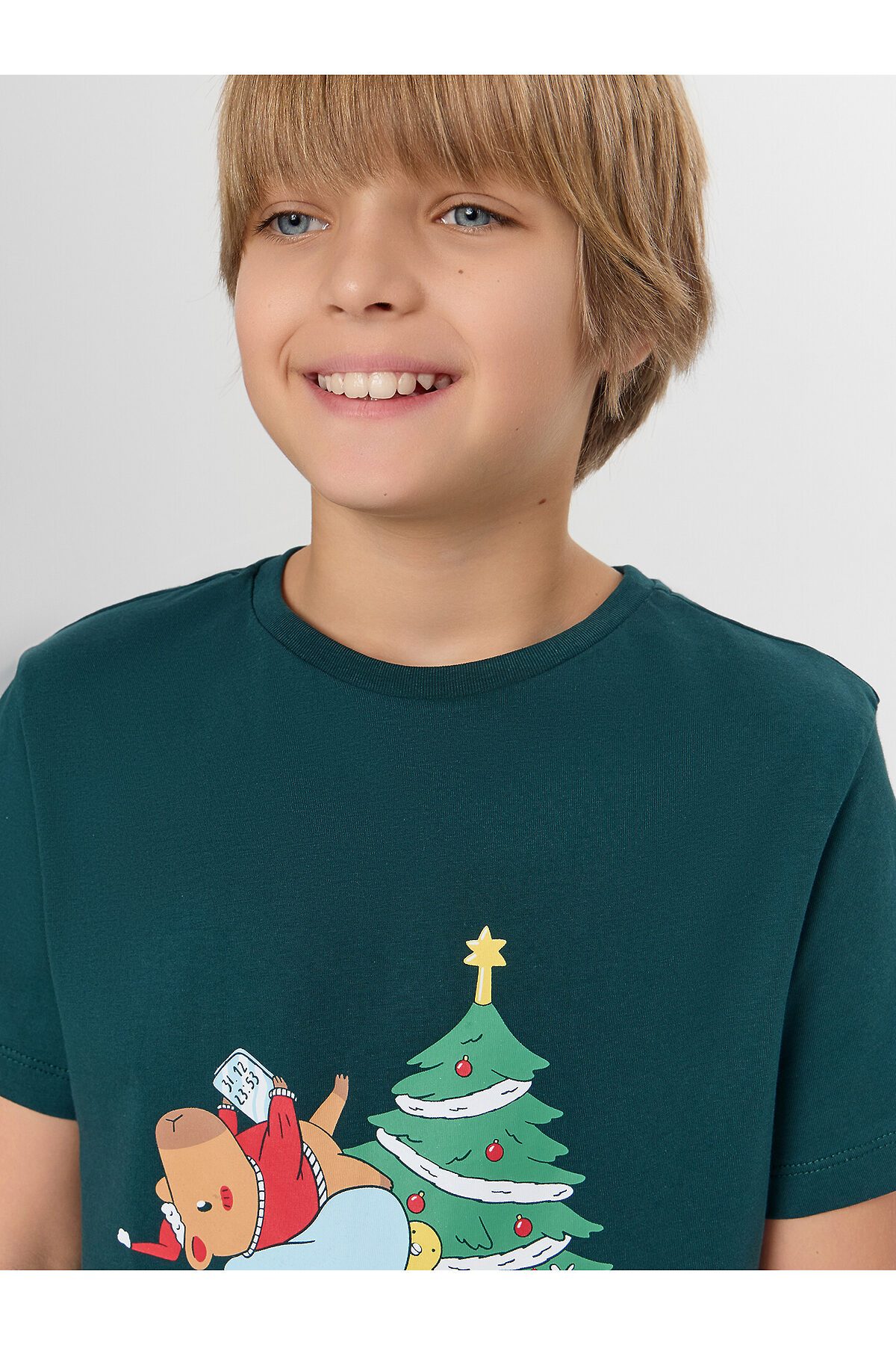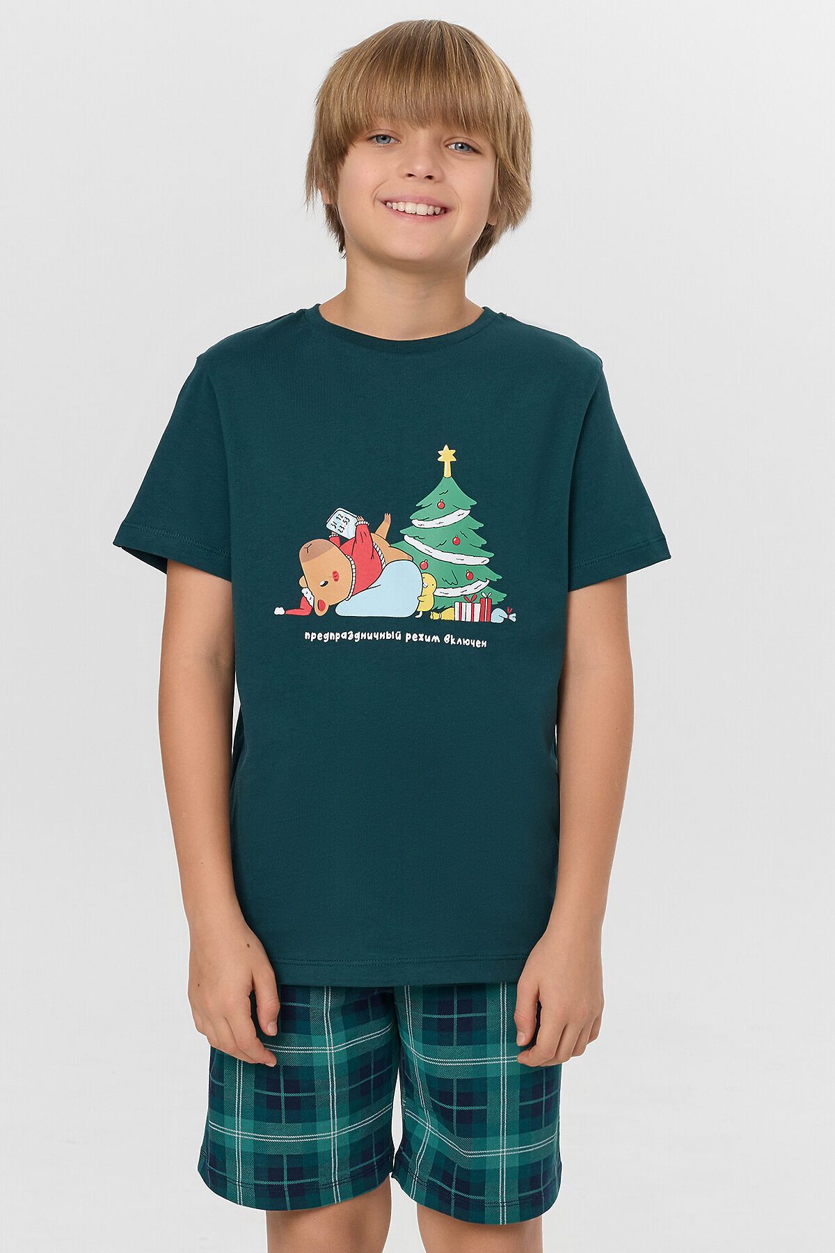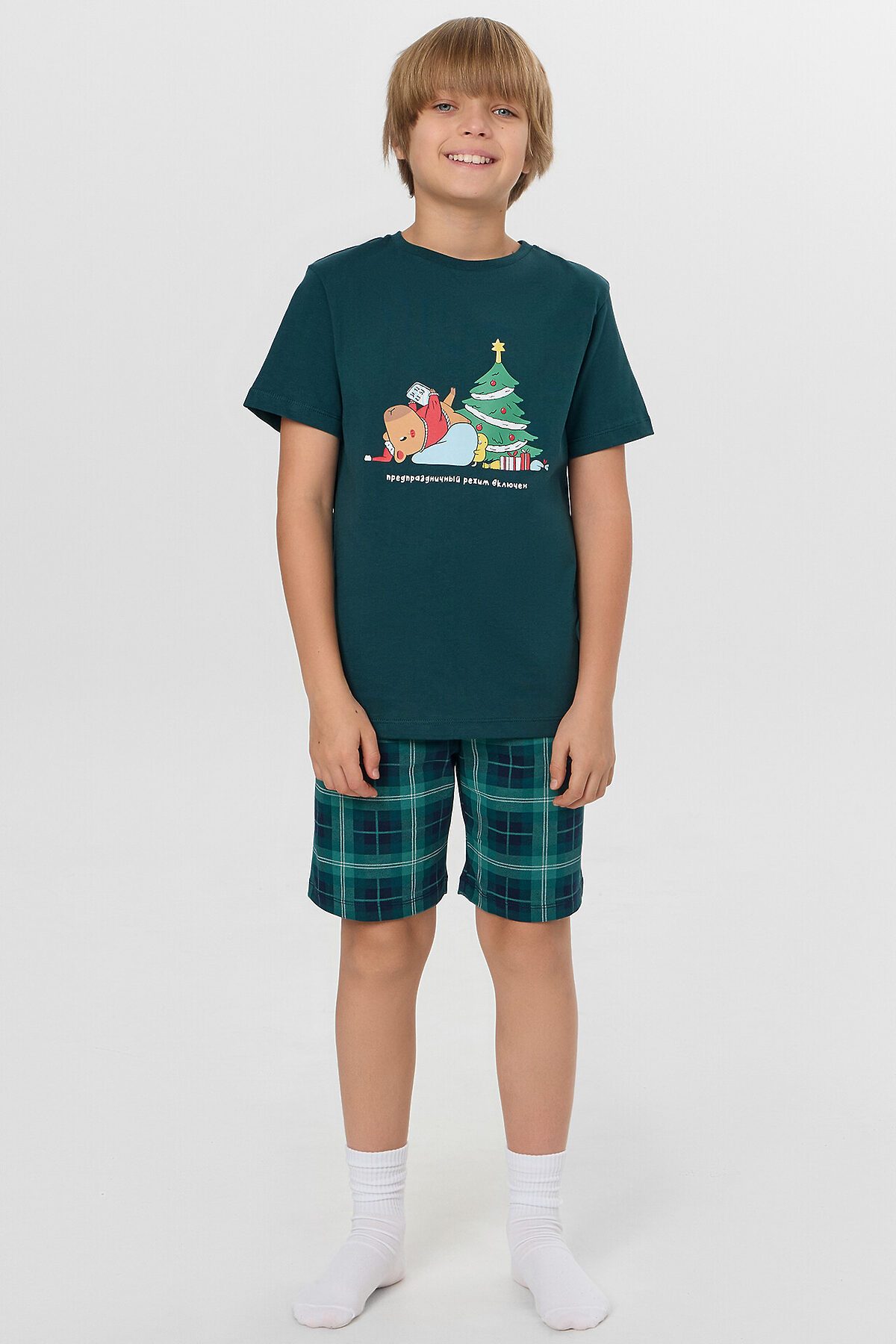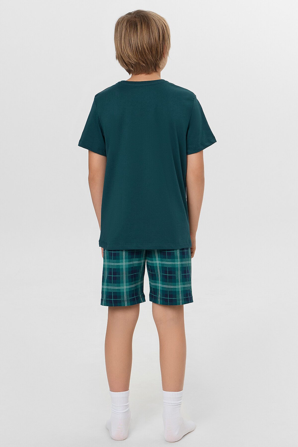 Пижама для мальчиков. Выполнена из хлопкового трикотажа кулирного переплетения. Комплект включает футболку и шорты. Футболка свободная, с круглой горловиной и короткими рукавами. Шорты длиной до колен, с эластичной тесьмой в поясе. Отличный комплект для сна и отдыха!