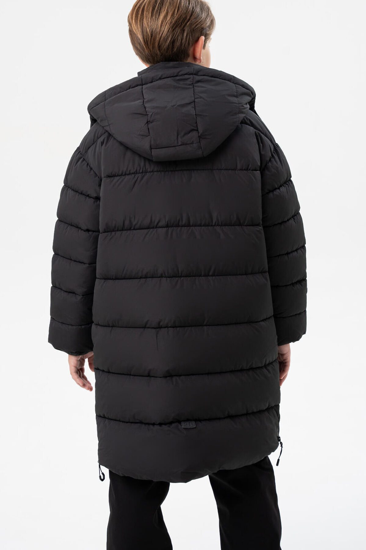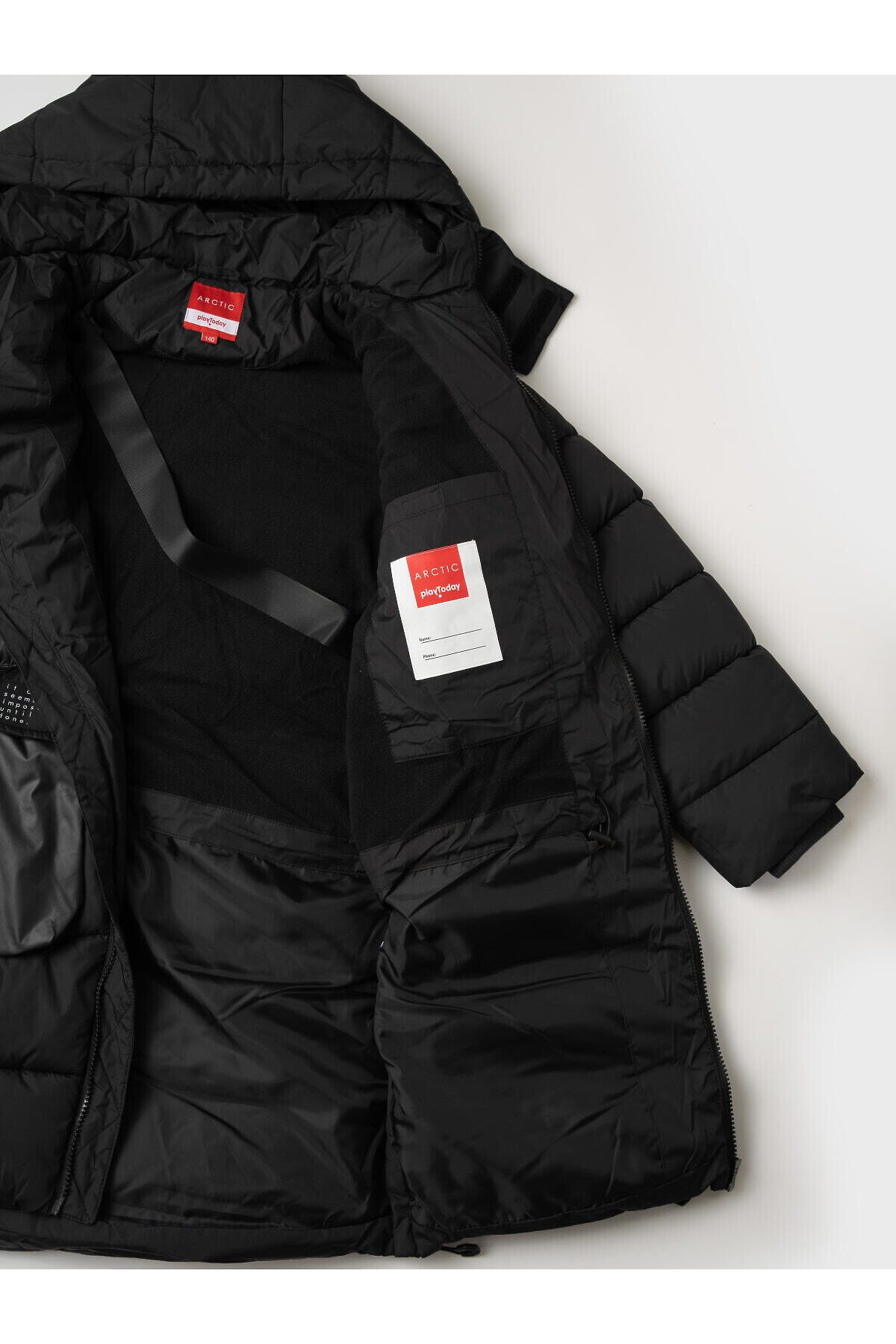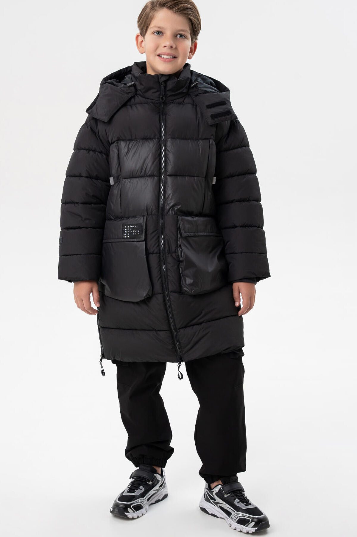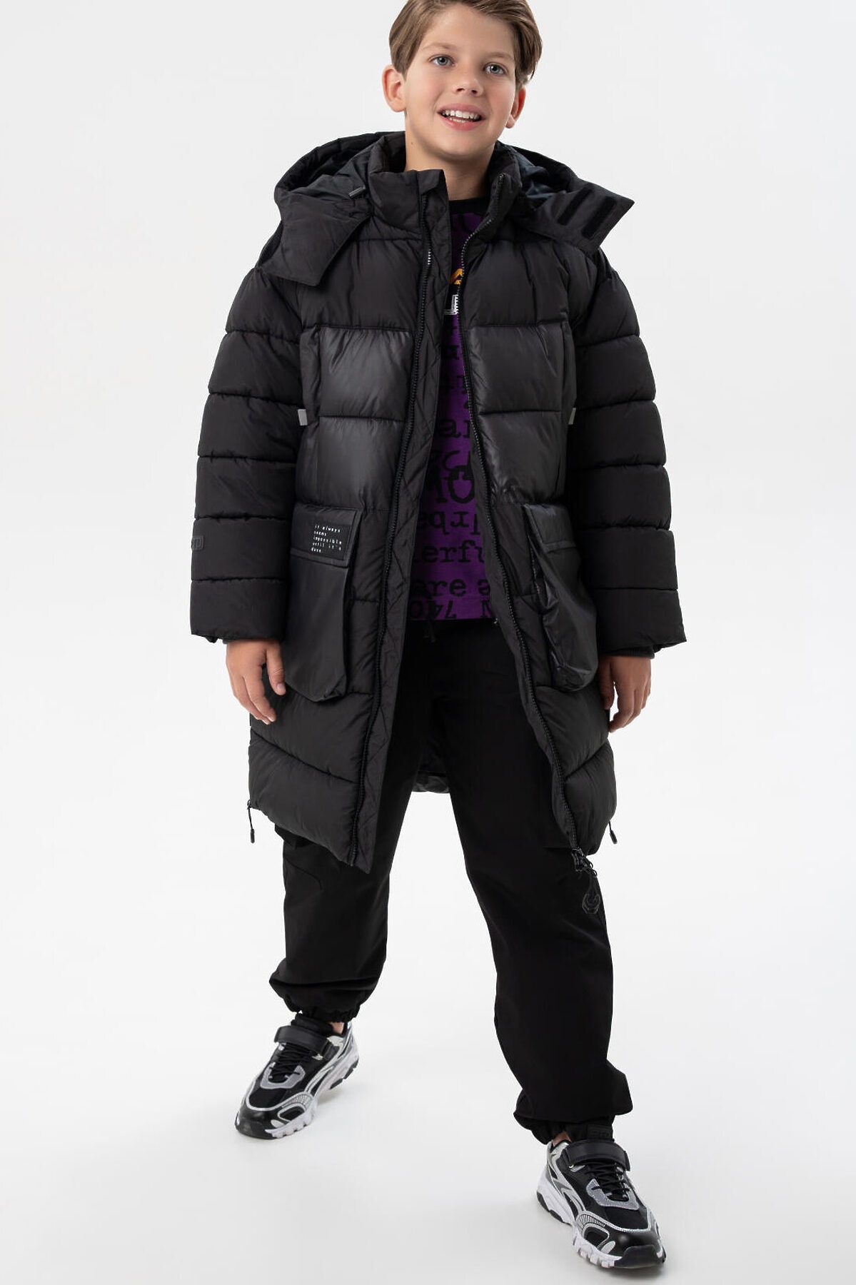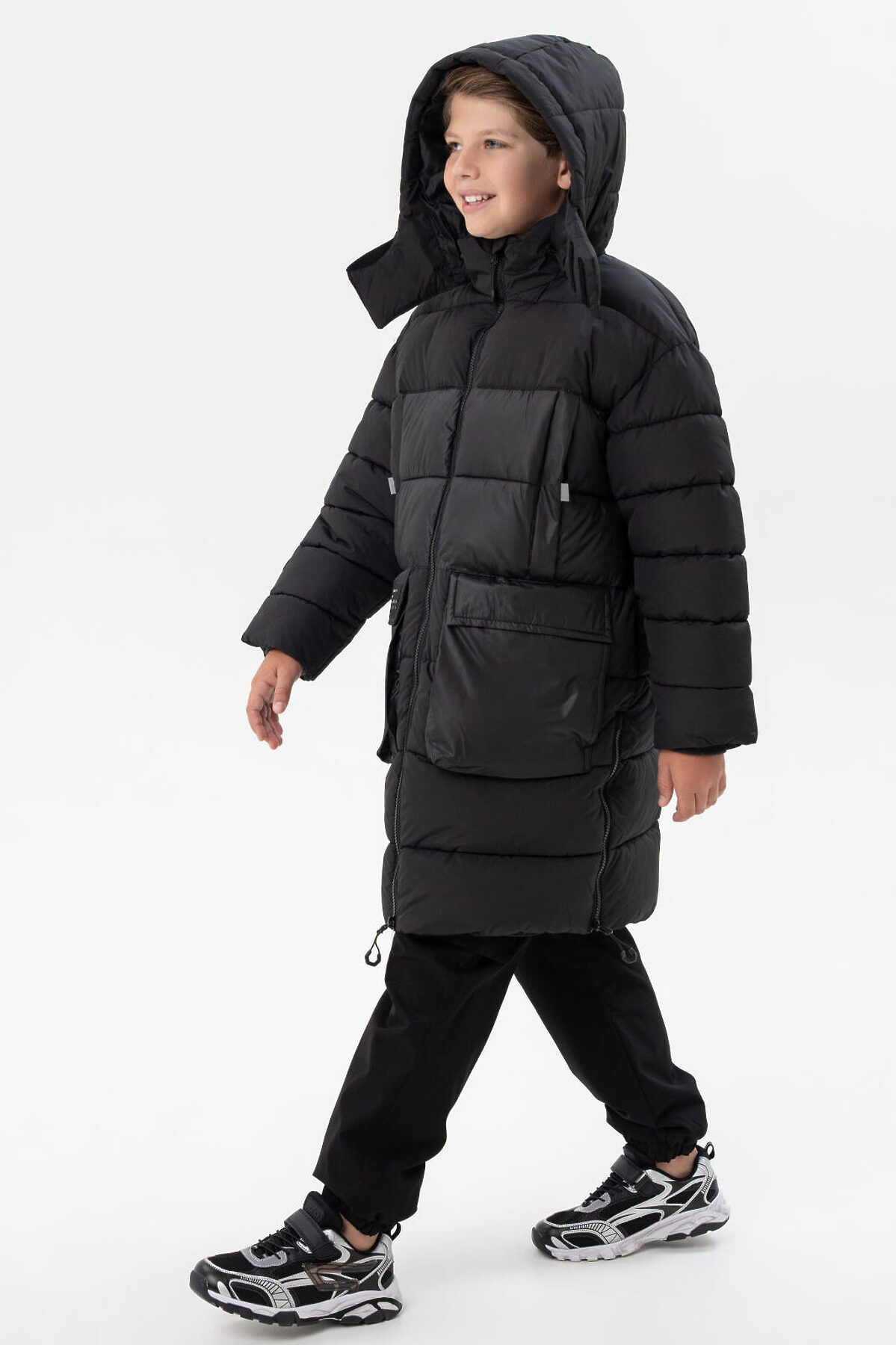Зимнее пальто для мальчика подростка от PlayToday — для тех, кто выбирает тепло, комфорт и стиль даже при –35°C. Преимущества модели: + температурный режим до –35°C — высокая степень теплозащиты + флисовая подкладка — мягкость и защита от холода + несъёмный капюшон с утяжкой на стопперах — надёжно закрывает от ветра и сне га + рукава с вязаным манжетом — плотно прилегают, сохраняют тепло + боковые карманы на липучках — удобно и практично + внутренние карман на липучке + внутренняя утяжка по талии + боковые разрезы на молнии по низу изделия — для свободы движений и регулировки объёма + удлинённый крой — особенно актуален в морозные дни + светоотражающие элементы Холод не страшен, когда на тебе надёжная верхняя одежда. Это зимнее пальто создано для суровой погоды, активных прогулок и уверенности в любую зиму. Модель объединяет современный дизайн, продуманные детали и максимум функциональности — всё, что нужно подростку от 8 до 17 лет. Это тёплое зимнее пальто для подростка не только греет, но и круто смотрится: городской силуэт, трендовый формат, продуманная функциональность. Подходит для школы, активных прогулок и зимних путешествий. Рекомендации по стилю: Сочетайте с утеплёнными брюками или джоггерами, грубыми ботинками или зимними кроссовками от PlayToday. Добавьте вязаную шапку, перчатки и шарф — и получите полноценный зимний образ в стиле street casual.Размерный ряд: модель представлена на рост 128–176 см — для мальчиков от 8 лет.
