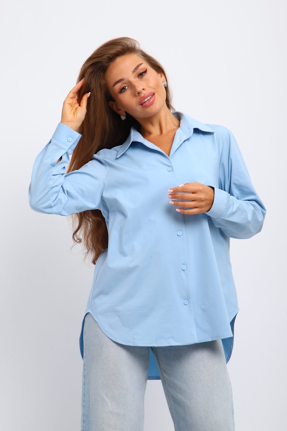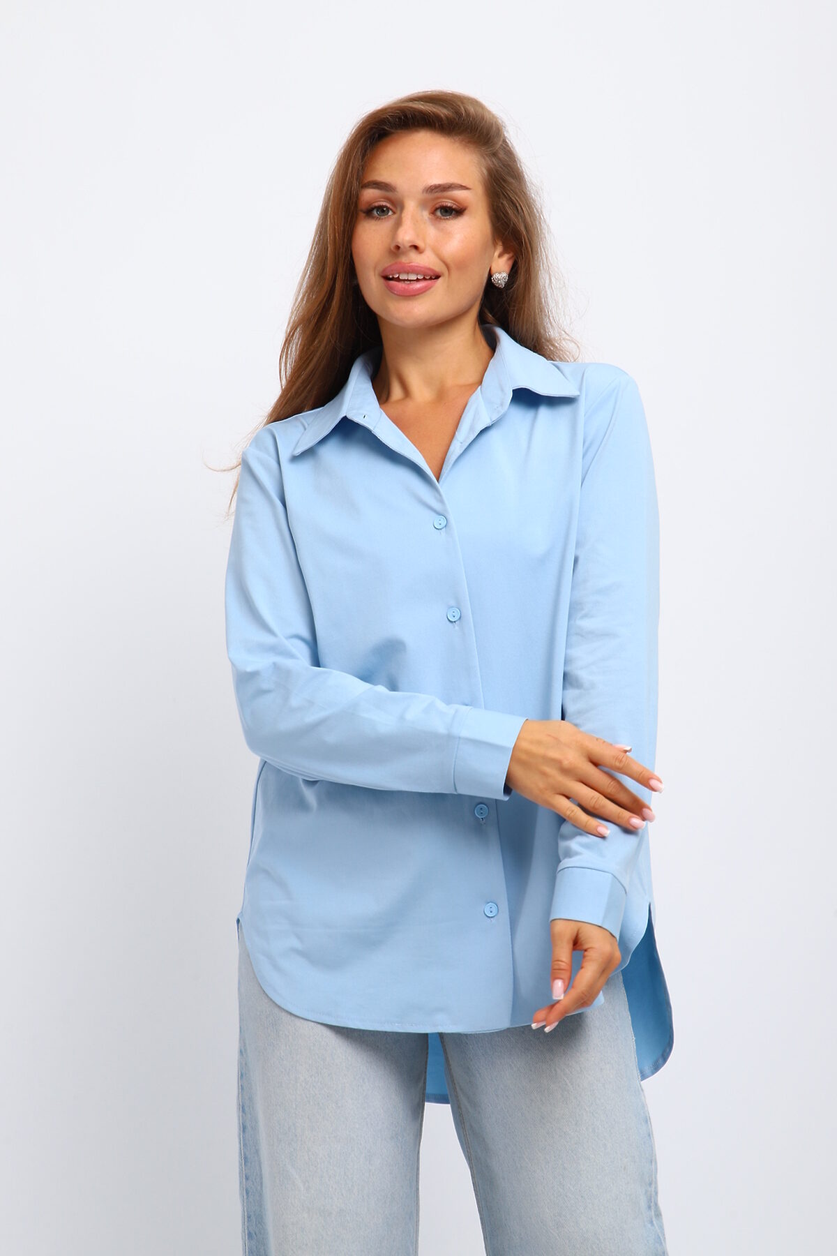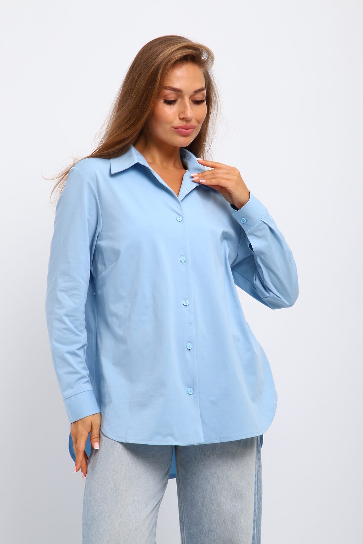 Элегантная женская рубашка: стиль и комфорт в каждой детали Ищете идеальную рубашку, сочетающую классику и современность? Наша женская рубашка с отложным воротником это то, что вам нужно! Идеальный выбор для создания как делового, так и повседневного образа. Рубашка выполнена с акцентом на детали: Отложной воротник: подчеркивает элегантность и женственность. Рукава на манжете: добавляют строгости и позволяют регулировать длину. Асимметричный крой: оригинальная спинка длиннее переда модный акцент, выделяющий вас из толпы. Эта рубашка - must have для каждой женщины, ценящей стиль и комфорт. Идеально сочетается с брюками, юбками и джинсами. Купите женскую рубашку с отложным воротником прямо сейчас и создавайте неповторимые образы каждый день! Женская рубашка, рубашка с отложным воротником, рубашка на манжете, рубашка спинка длинненее переда.