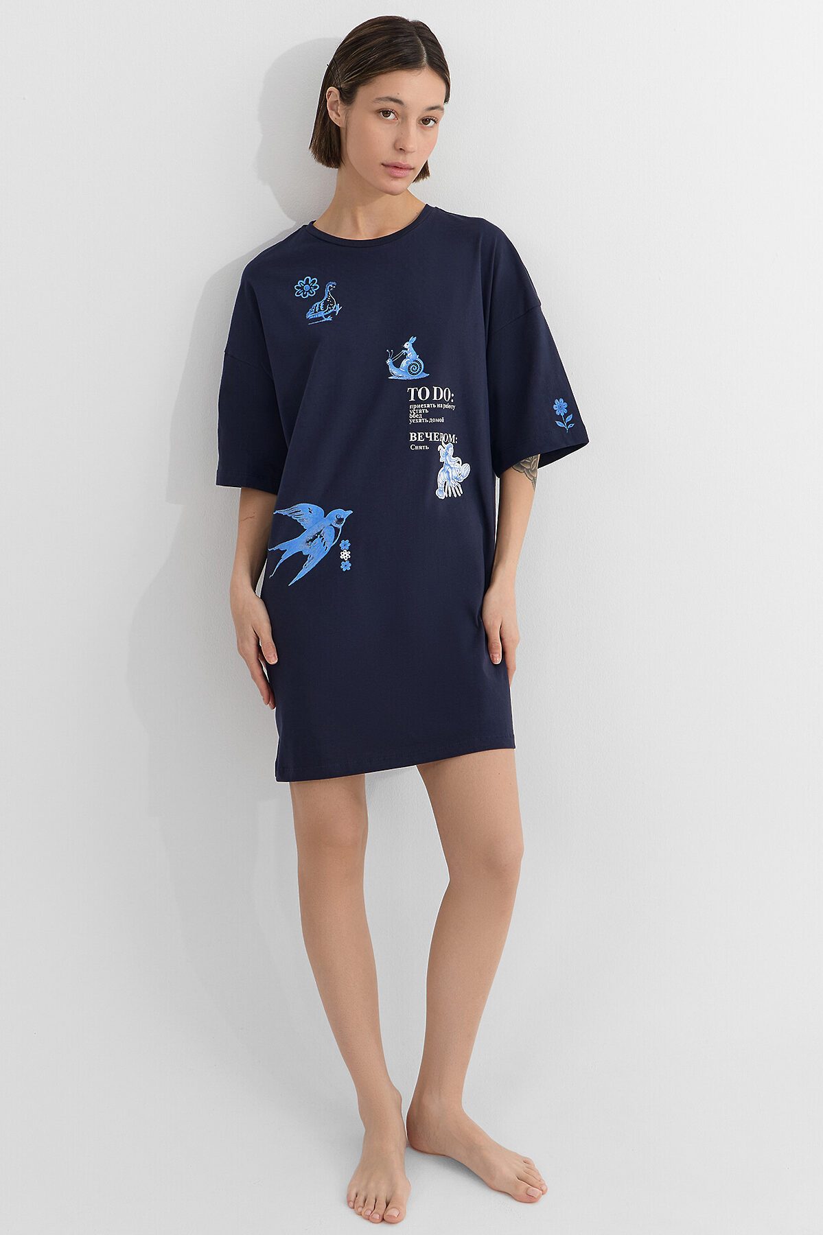 Очаровательная женская туника с милым принтом станет идеальным дополнением вашего домашнего гардероба.