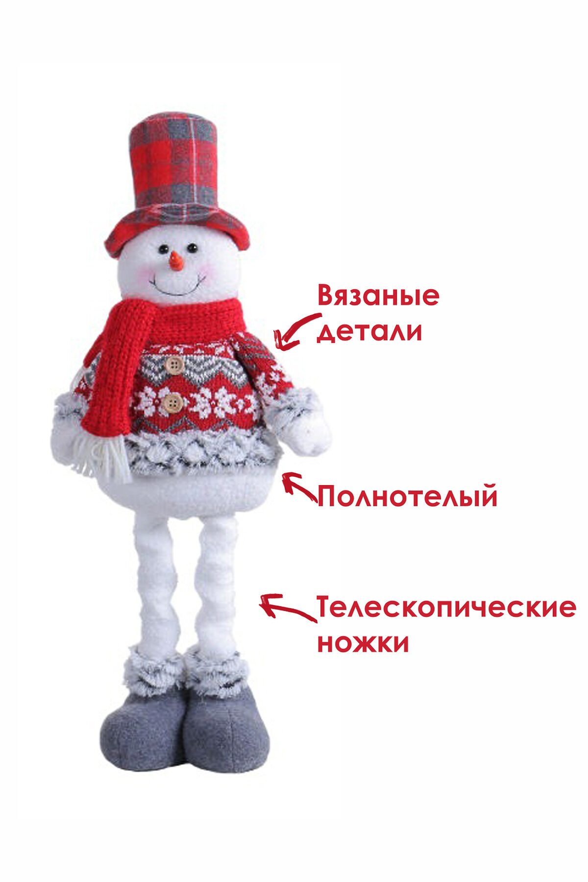 Новогодняя игрушка мягкий снеговик с выдвижными ножками эффектная и практичная праздничная игрушка, которая в сложенном виде занимает всего 3423 см, а при раздвинутых ножках превращается в высокий декоративный элемент высотой 48 см. Выполнен из мягкого текстиля с аккуратной отделкой и плотным наполнителем, он легко держит форму, при этом остаётся лёгким и удобным для транспортировки и размещения под ёлкой или в праздничной фотозоне. Выдвижные ножки дают два варианта использования компактное хранение вне сезона и выразительная высота для декора, что делает игрушку отличным подарком, который приятно будет дарить и получать. Универсальный дизайн впишется в классические и современные новогодние интерьеры, игрушка подойдёт для украшения гостиной, детской комнаты, прихожей или коммерческих витрин. Уход простой достаточно протирать мягкой сухой или слегка влажной тканью и хранить в сухом прохладном месте вдали от прямых источников тепла. При размещении рядом с детьми рекомендуем следить за мелкими декоративными деталями и устанавливать снеговика на устойчивой поверхности. Идеальная идея для тех, кто ищет красивый, компактный в хранении и в то же время эффектный подарок под ёлку, который создаёт праздничное настроение и добавляет уюта в дом.