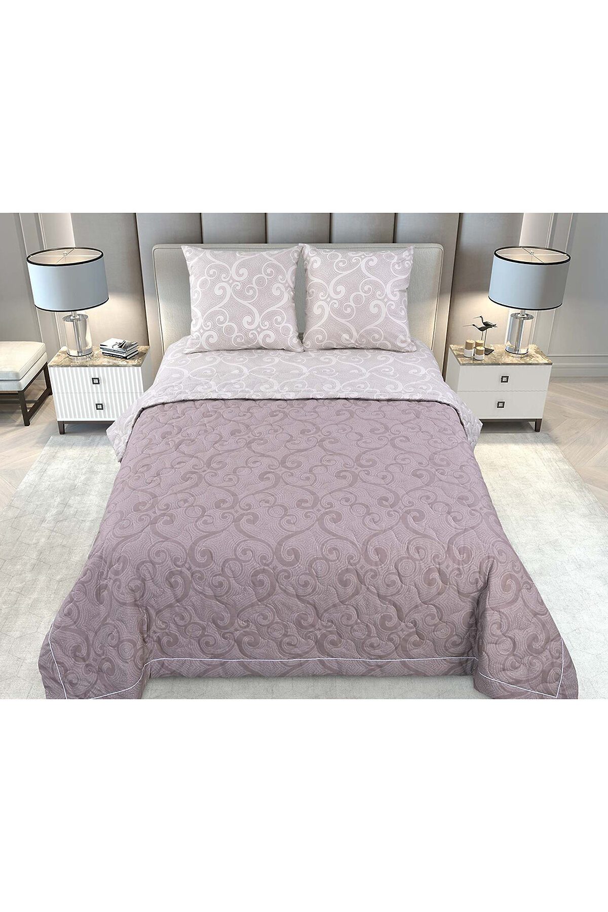 Комплект для сна изготовлен из перкаля. Ткань отличается плотной и тонкой фактурой, высокими эстетическими и практическими качествами, приятна на ощупь и очень комфортна. По прочности перкаль превосходит многие материалы, выполненные из более толстых волокон. Уникальность комплекта для сна заключается в том, что вместо традиционного пододеяльника и наволочек в комплект входит тонкое стеганое одеяло, выполненное из ткани того же дизайна, что и основной комплект. Преимущества данного комплекта в том, что стёганые изделия практичны в использовании. Заправленные подушки в стеганые наволочки можно использовать как декоративные. А одеяло одновременно полностью справиться с функцией покрывала. Цвет ткани может незначительно отличаться от фото. Характеристики размера 1,5 спальный: Размер наволочек 70х70 (2 шт) (молния) Размер простыни 180х220 (1шт) (без резинки) Размер одеяла 140х205 (1 шт) Характеристики размера 2 спальный с европростыней: Размер наволочек 70х70 (2 шт) (молния) Размер простыни 220х240 (1шт) (без резинки) Размер одеяла 172х205 (1 шт) Характеристики размера Евро: Размер наволочек 70х70 (2 шт) (молния) Размер простыни 220х240 (1шт) (без резинки) Размер одеяла 200х220 (1 шт)