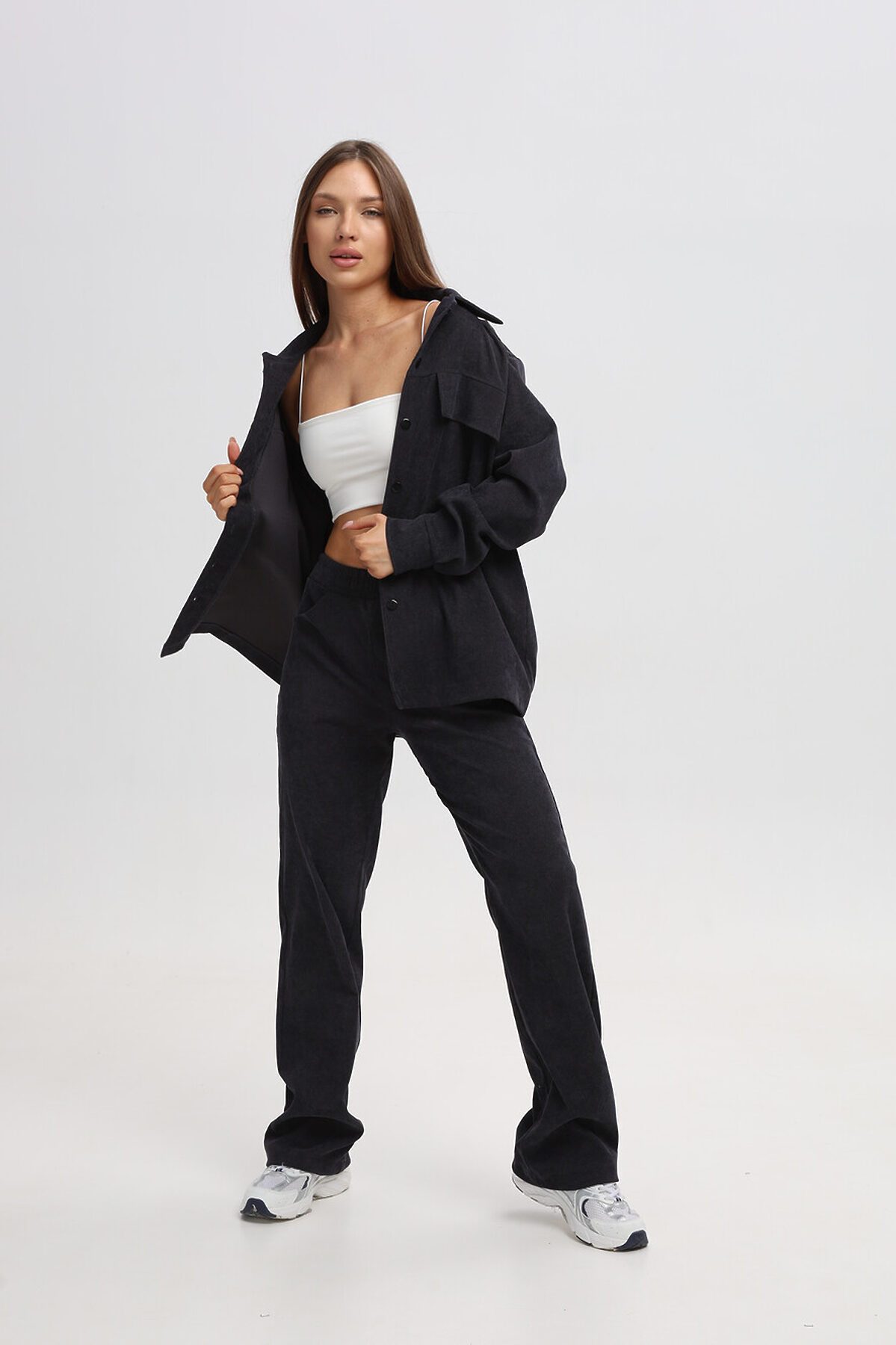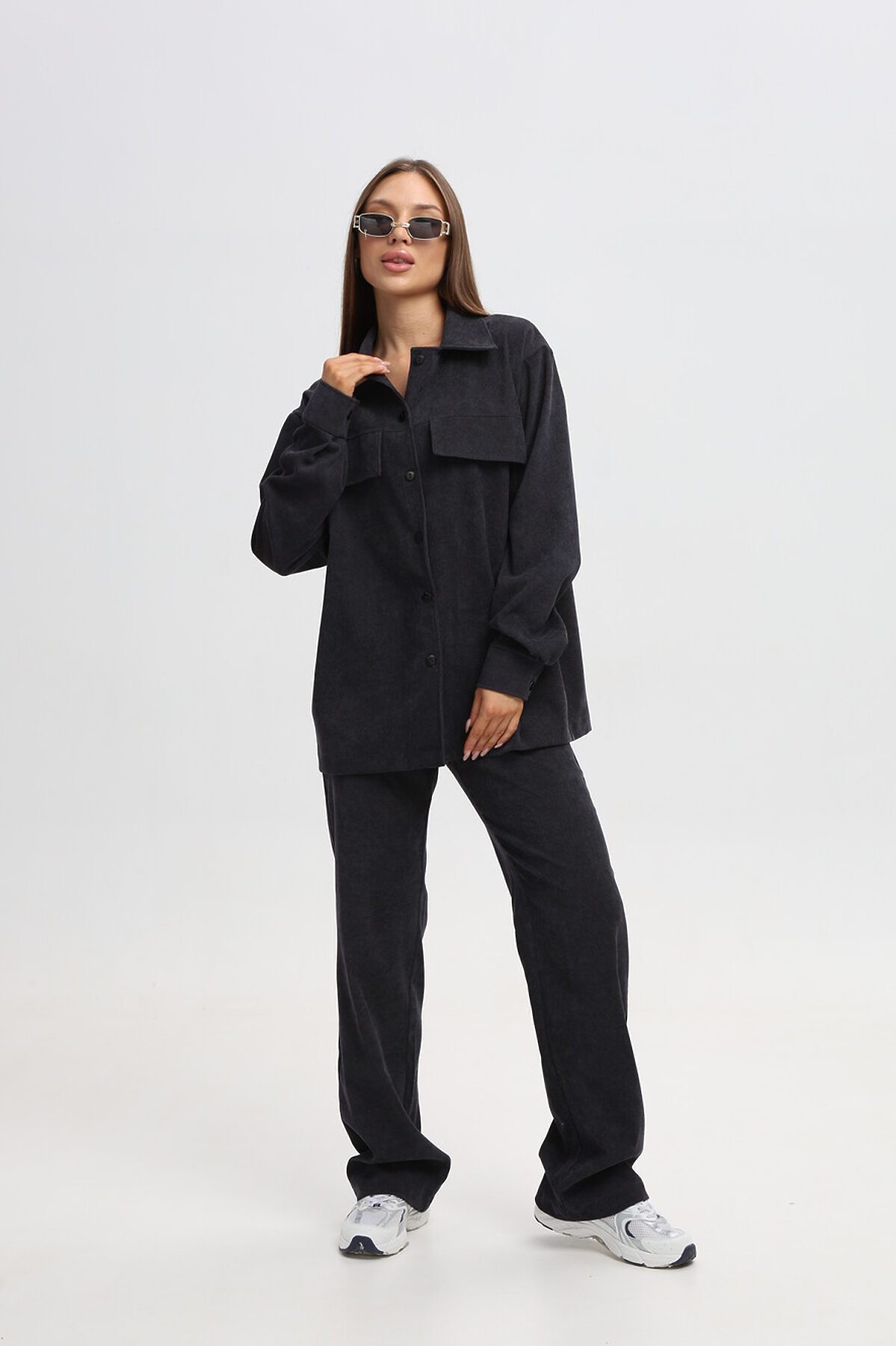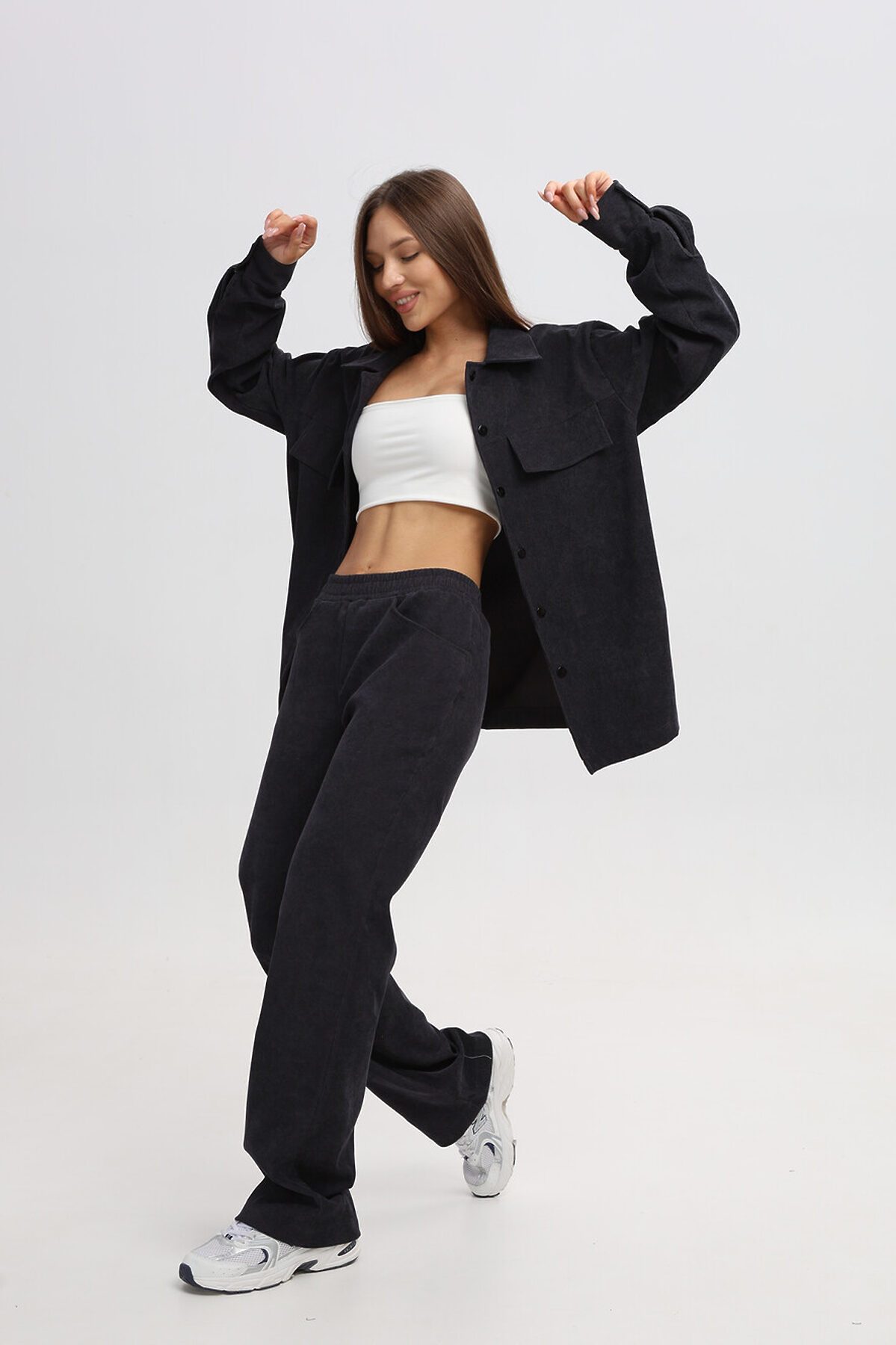 Спортивный женский костюм выполнен из мягкого вельветового материала, который придает ему модный и элегантный вид. Костюм для женщин состоит из рубашки оверсайз и брюк прямого кроя, создающих гармоничный и современный образ. Однотонный оттенок делает его универсальным для разных случаев от повседневных прогулок до офисного или делового стиля. Рубашка свободного фасона с длинными рукавами украшена классическим воротником и застегивается на пуговицы. Вельвет обладает приятной текстурой, которая сохраняет комфорт даже при длительном ношении. Брюки имеют удобные карманы, прямой силуэт, что делает их подходящими для девушек и женщин разных возрастов. Эластичный пояс обеспечивает удобную посадку, а продуманная длина визуально вытягивает силуэт. Удобная и трендовая одежда в современном стиле, которая дополнит базовые и спортивные образы или молодежный лук в стиле casual (кэжуал). Нарядный костюм отлично подойдет как для осенних прохладных дней, так и для создания стильных летних образов. Женский костюм-двойка отличается универсальностью благодаря сочетанию комфорта и модного дизайна. Он может использоваться как спортивный наряд для активного отдыха или домашний вариант для уюта в холодное время года. Актуальный oversize крой подчеркивает современные тенденции в мире моды.