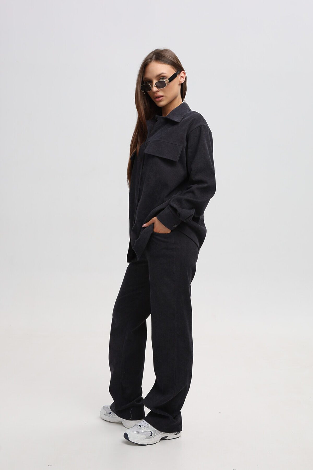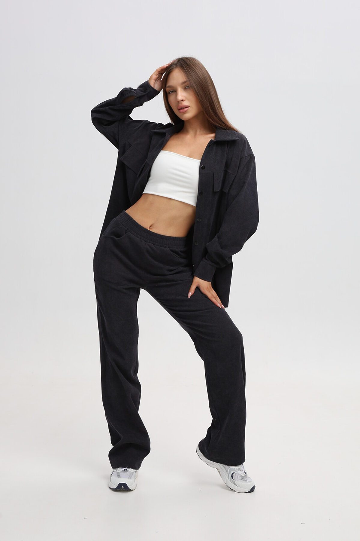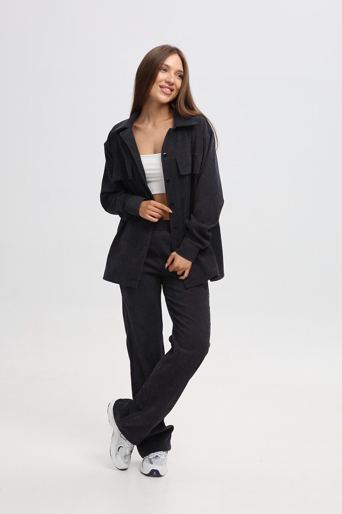 Спортивный женский костюм выполнен из мягкого вельветового материала, который придает ему модный и элегантный вид. Костюм для женщин состоит из рубашки оверсайз и брюк прямого кроя, создающих гармоничный и современный образ. Однотонный оттенок делает его универсальным для разных случаев от повседневных прогулок до офисного или делового стиля. Рубашка свободного фасона с длинными рукавами украшена классическим воротником и застегивается на пуговицы. Вельвет обладает приятной текстурой, которая сохраняет комфорт даже при длительном ношении. Брюки имеют удобные карманы, прямой силуэт, что делает их подходящими для девушек и женщин разных возрастов. Эластичный пояс обеспечивает удобную посадку, а продуманная длина визуально вытягивает силуэт. Удобная и трендовая одежда в современном стиле, которая дополнит базовые и спортивные образы или молодежный лук в стиле casual (кэжуал). Нарядный костюм отлично подойдет как для осенних прохладных дней, так и для создания стильных летних образов. Женский костюм-двойка отличается универсальностью благодаря сочетанию комфорта и модного дизайна. Он может использоваться как спортивный наряд для активного отдыха или домашний вариант для уюта в холодное время года. Актуальный oversize крой подчеркивает современные тенденции в мире моды.
