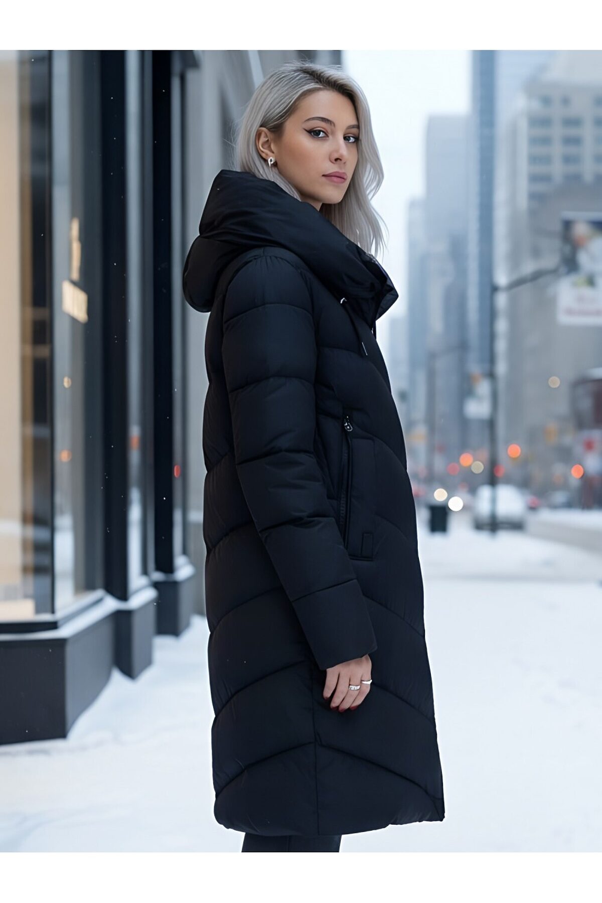 Представляем зимнее утепленное пальто-куртку для женщин с капюшоном, идеально подходящее для холодного времени года. Доступно в размерах от 42 до 50, это пальто выполнено из высококачественных мембранных материалов, полиэстера и плащевки, что обеспечивает отличную защиту от влаги и холода. Состав 100% полиэстер гарантирует долговечность и комфорт при носке. Утеплитель из синтепона с плотностью 200 г/кв.м обеспечивает тепло в условиях температуры от +5° до -20°. Водонепроницаемость 7 000 мм делает модель идеальной для дождливой погоды. Пальто имеет удлиненный подол, длина которого достигает колена, и прямой/свободный покрой, что обеспечивает свободу движений. Капюшон не съемный и оснащен фиксатором, а внутренние карманы добавляют удобства. Двойная молния служит надежной застежкой, а проклеенные и прошитые внутренние швы усиливают защиту от ветра. Модель отличается элегантным офисным и повседневным стилем, а гладкая стеганая фактура материала придает ей современный вид. Доступные цвета: черный, хаки, бежевый и темно-коричневый. Пальто-куртка является быстросохнущей, водоотталкивающей и гипоаллергенной, что делает его идеальным выбором для активных женщин. Подходит для осенне-зимнего сезона 2025. Не упустите возможность приобрести это стильное и функциональное утепленное пальто для комфортного зимнего образа!