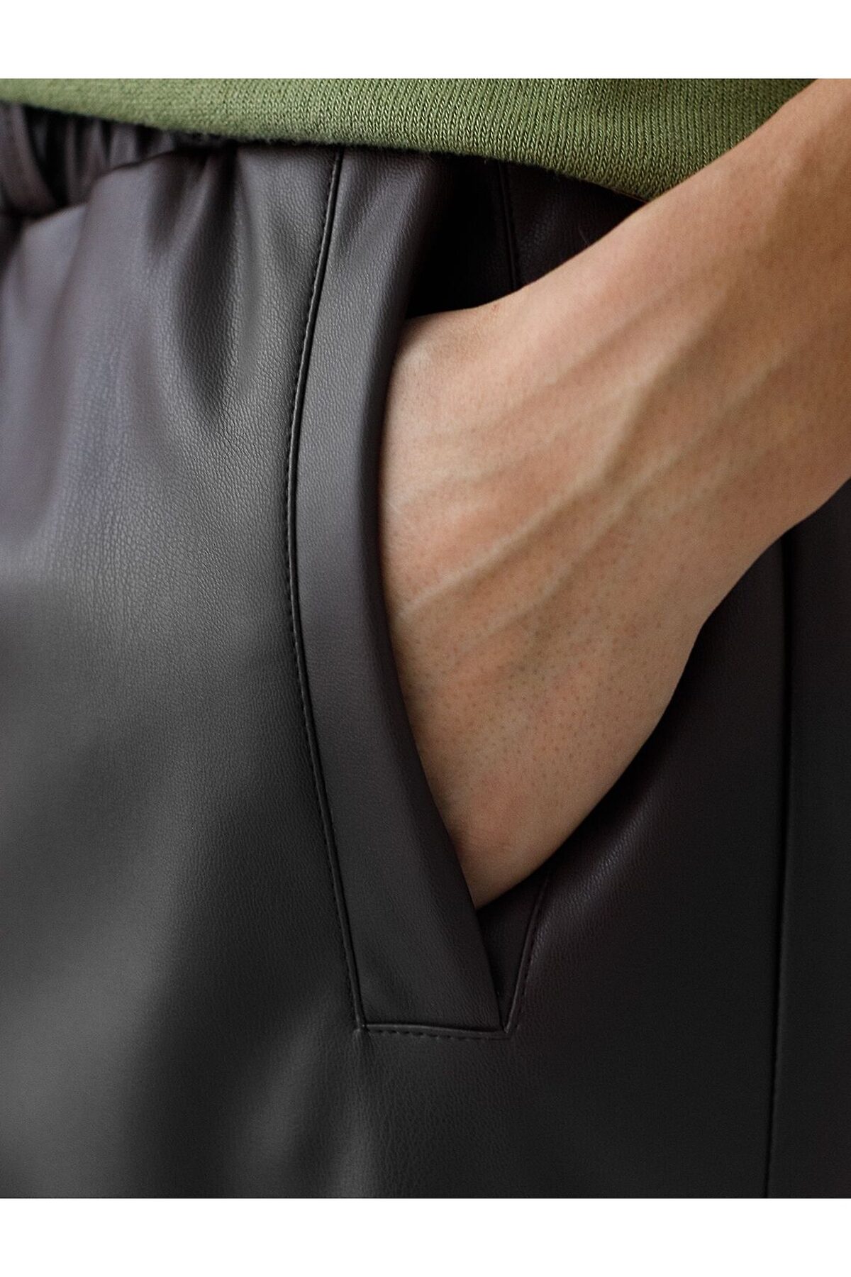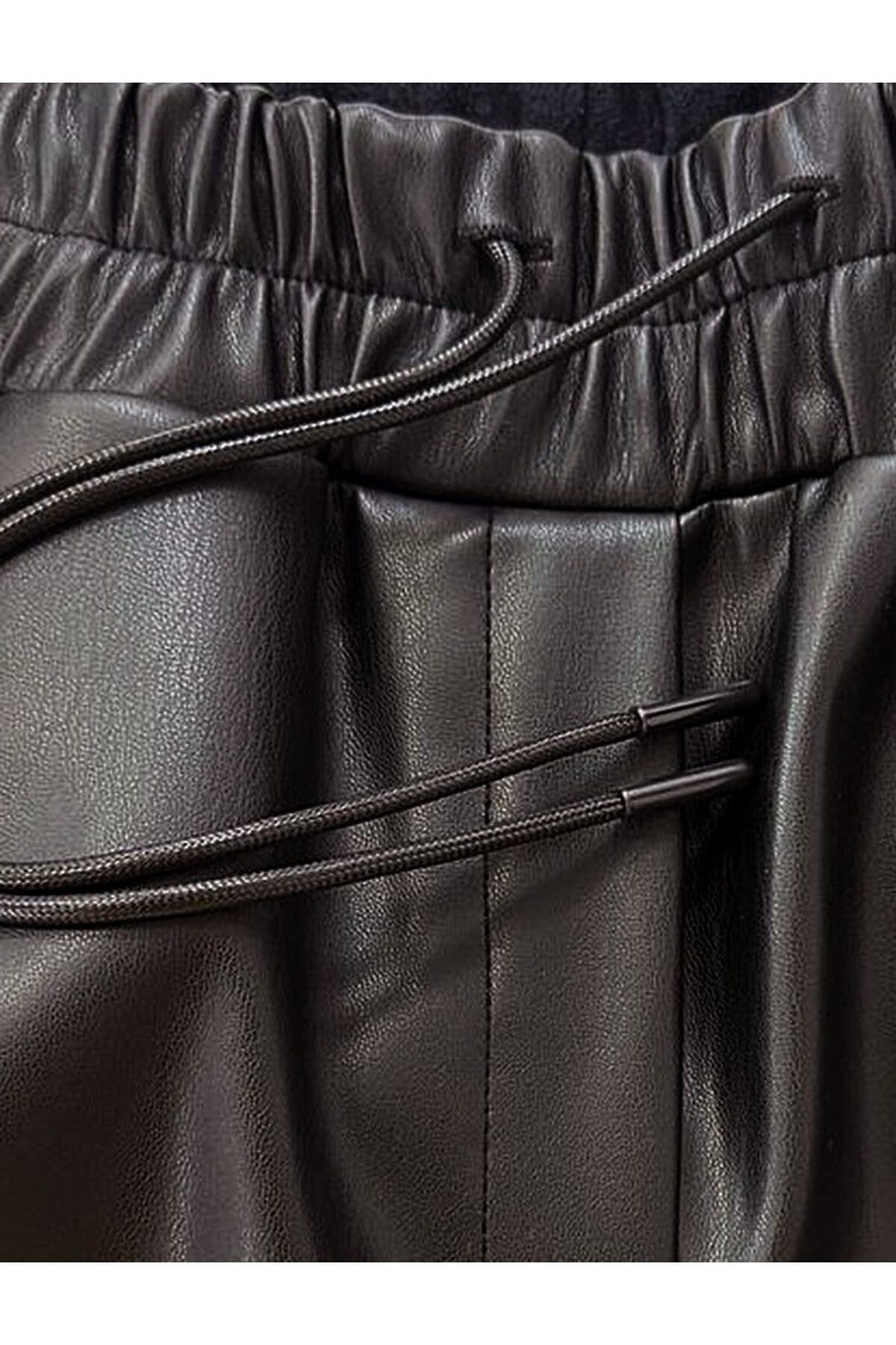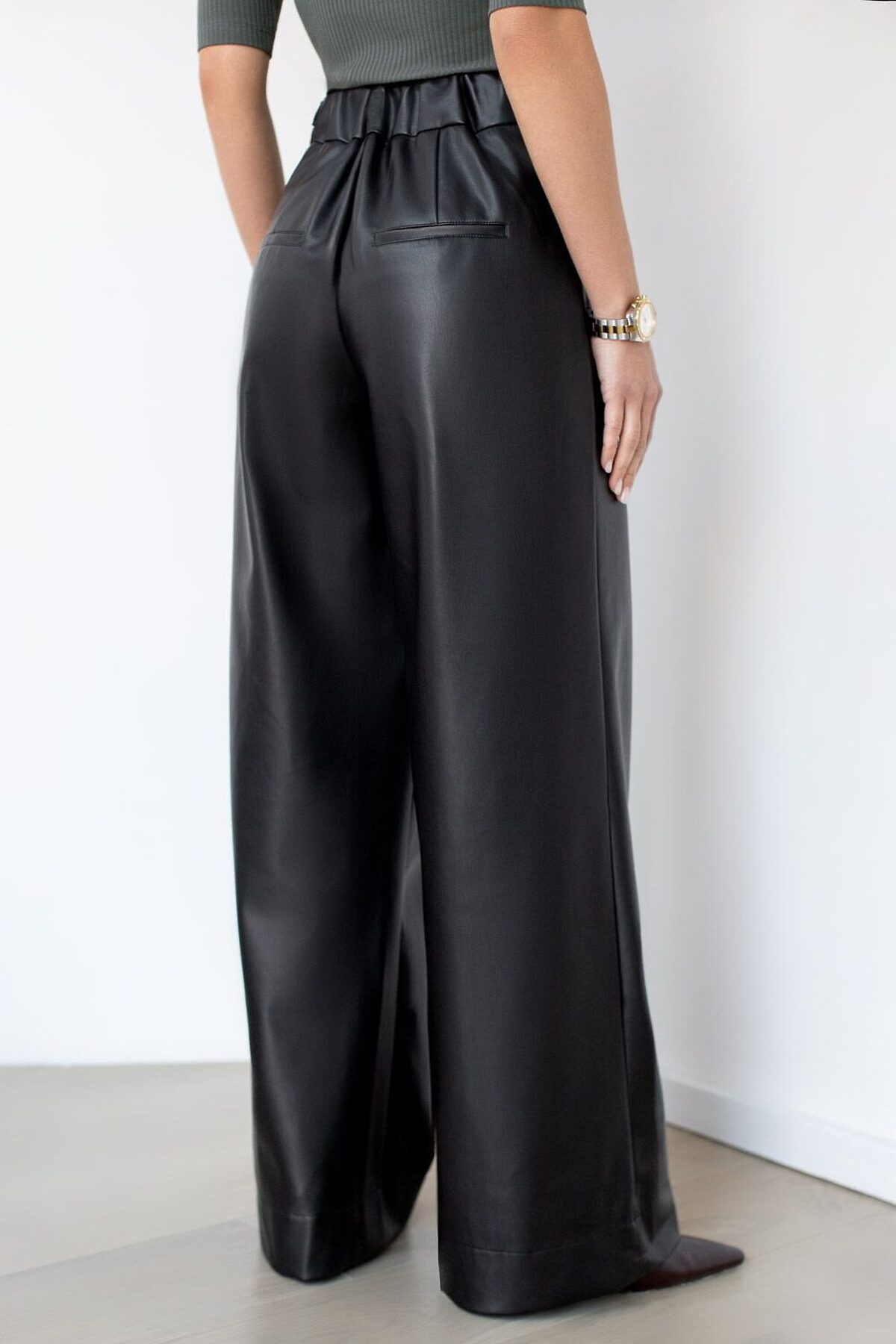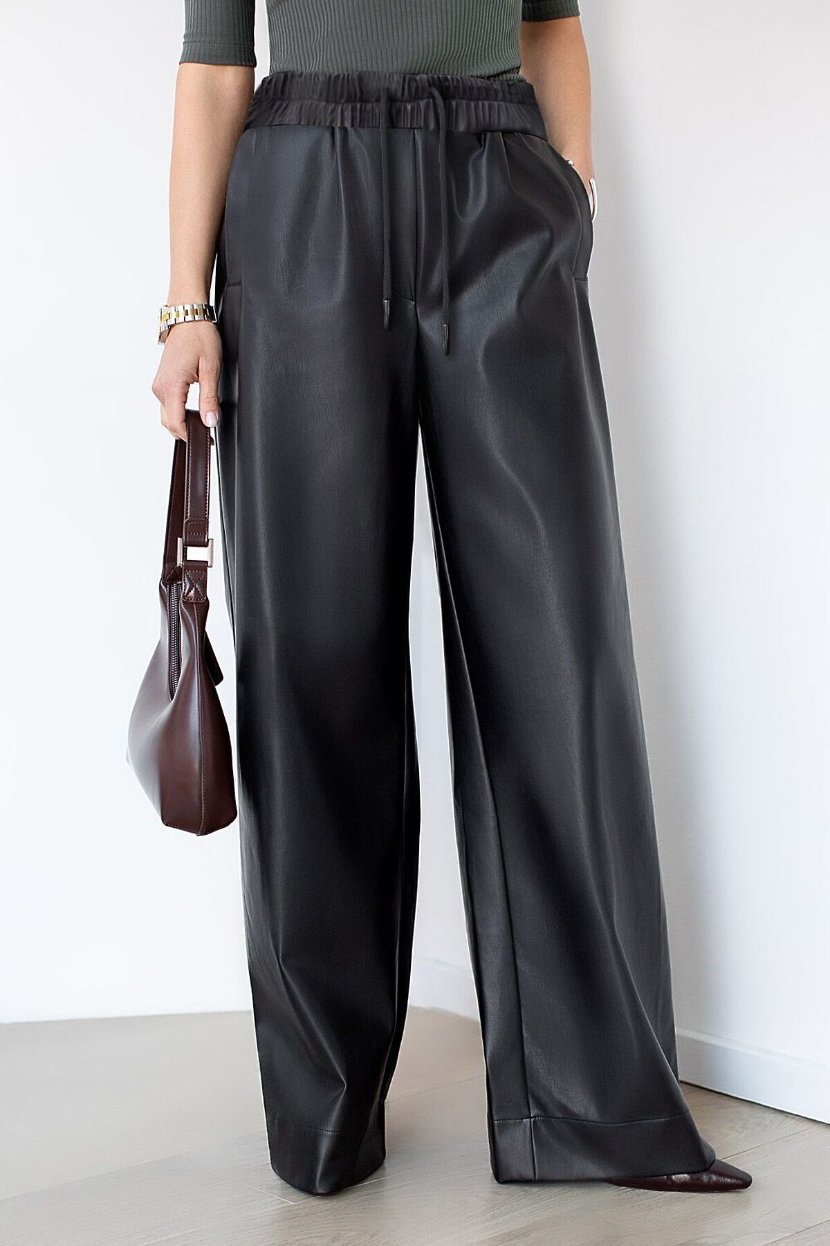 Трендовая модель для смелых fashion-образов. Эти брюки из качественной искусственной кожи создают бунтарский урбанистический лук. Модель с высокой посадкой на поясе и равномерно широким клешёным силуэтом от бедра до низа визуально вытягивает фигуру. Мягкая подкладка пояса обеспечивает комфорт, не сдавливая талию. Универсальный черный цвет легко комбинируется с объемными худи, кроп-топами или лаконичными рубашками. Идеальны для создания образов в стиле гранж, streetwear или modern rock-chic.