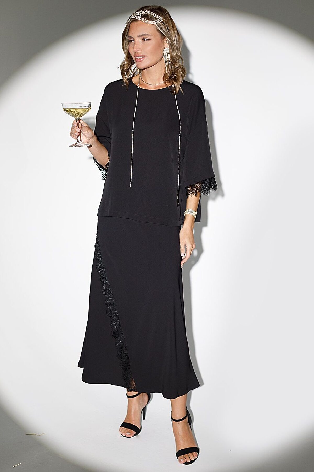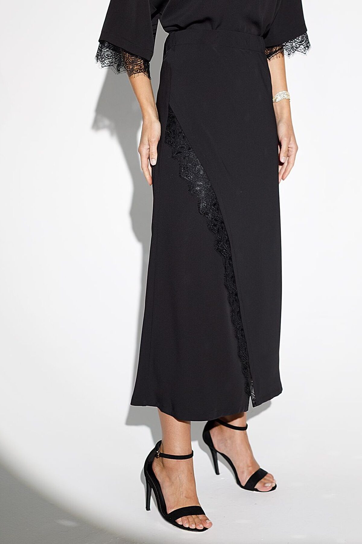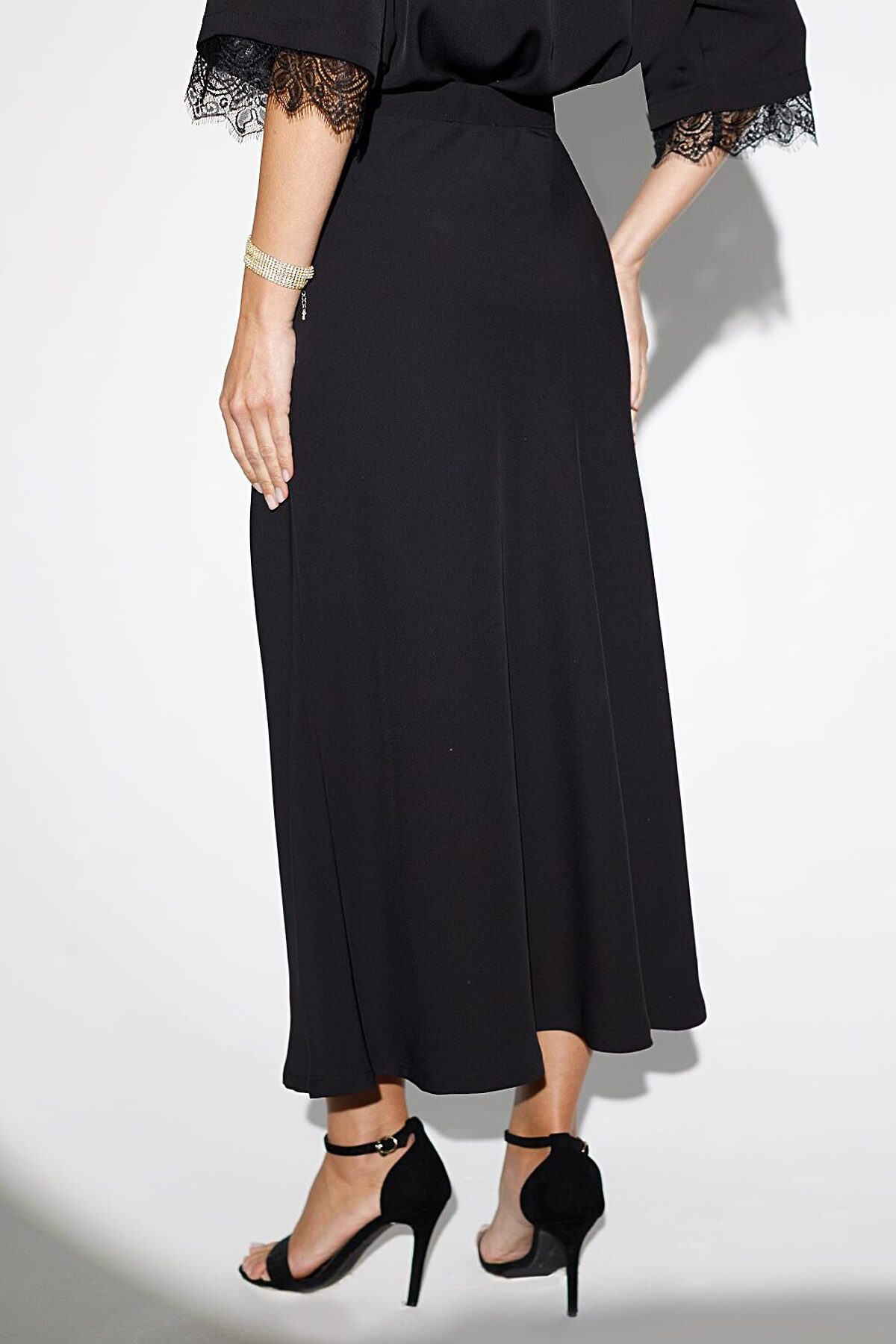 Юбка миди на запАх черного цвета выполнена из креп-шифона, который придает изделию легкость и воздушность. Эффектная модель украшена изящным кружевом, добавляющим женственности и элегантности образу, ткань отличается мягкостью, приятна к телу. Шикарное сочетание премиальных материалов делает юбку универсальной как для повседневной носки, так и для особых случаев. Благодаря продуманному крою и удобной посадке, она подходит и для больших размеров, обеспечивая комфорт в течение всего времени носки. Фасон юбки на запАх выгодно подчеркивает талию, создавая стильный акцент, визуально корректирует объем бедер и вытягивает силуэт. Выбирая такую стильную юбку, вы получаете сочетание качества и утонченного дизайна, что делает ее универсальной в гардеробе. Модель отлично впишется в атмосферу любого праздника, подчеркнув индивидуальность и хороший вкус. Такая юбка идеально подойдет для нового года и других важных мероприятий, где требуется стильный и элегантный образ. Расклешенная юбка легко комбинируется с разными ве