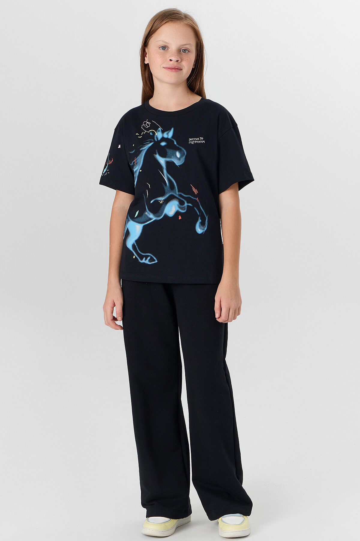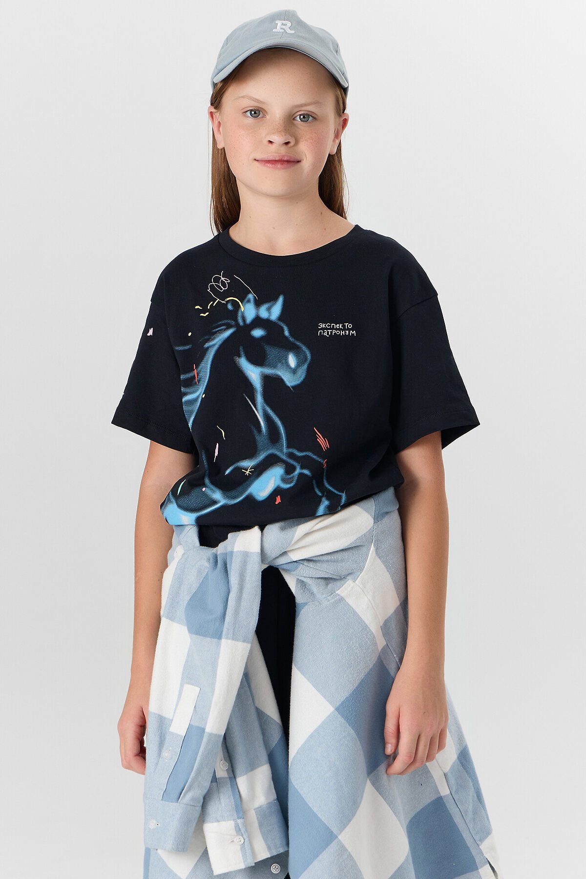 Эта стильная футболка для девочек идеально подходит для создания многослойных образов. Модель прямого кроя с короткими рукавами, спущенной линией плеча и круглой горловиной обеспечивает свободу движений и комфорт. Изделие выполнено из кулирки — мягкого трикотажного материала, который обладает гладкой поверхностью и природной воздухопроницаемостью. Этот материал прекрасно пропускает воздух, позволяя коже дышать, и обеспечивает высокий уровень комфорта, не стесняя движений. Кулирка также хорошо держит форму и сохраняет цвет даже после многочисленных стирок, что делает изделие долговечным. Такая футболка станет универсальным элементом гардероба, подходящим для любого сезона.