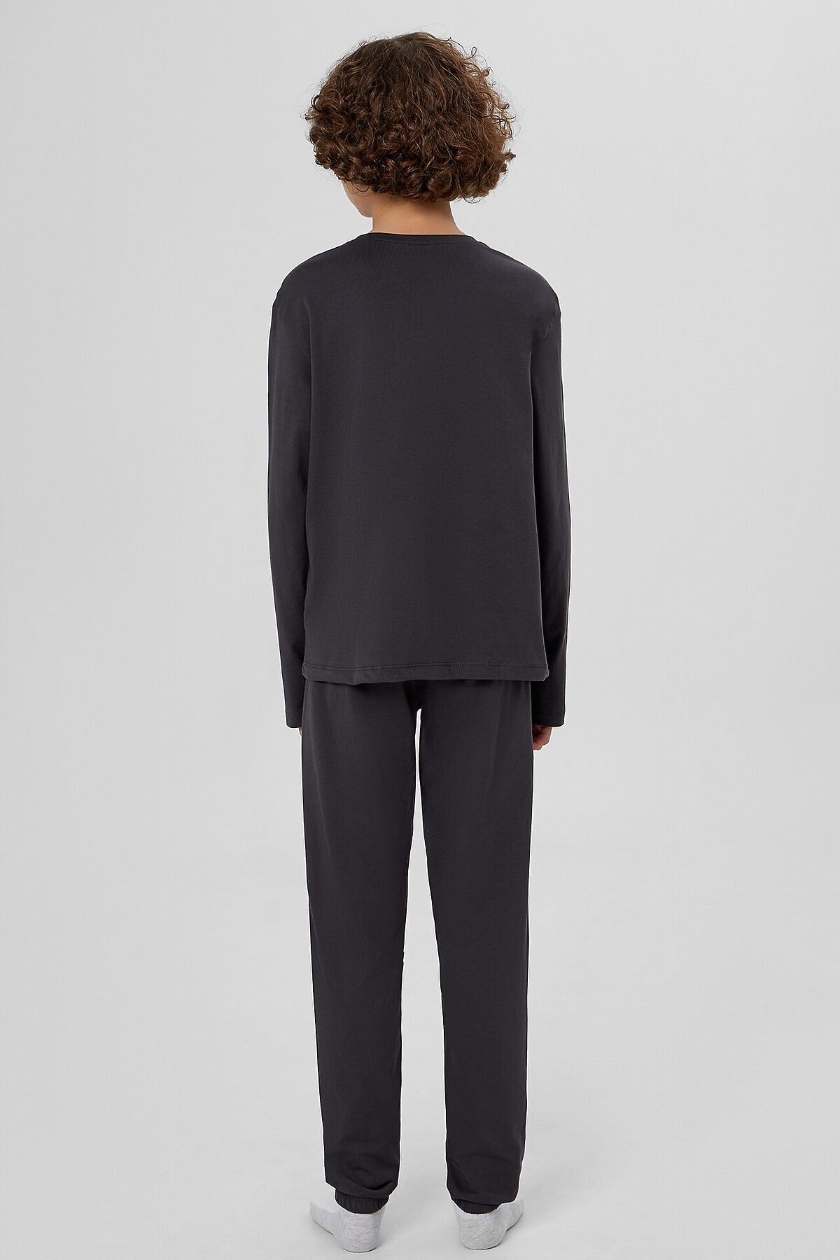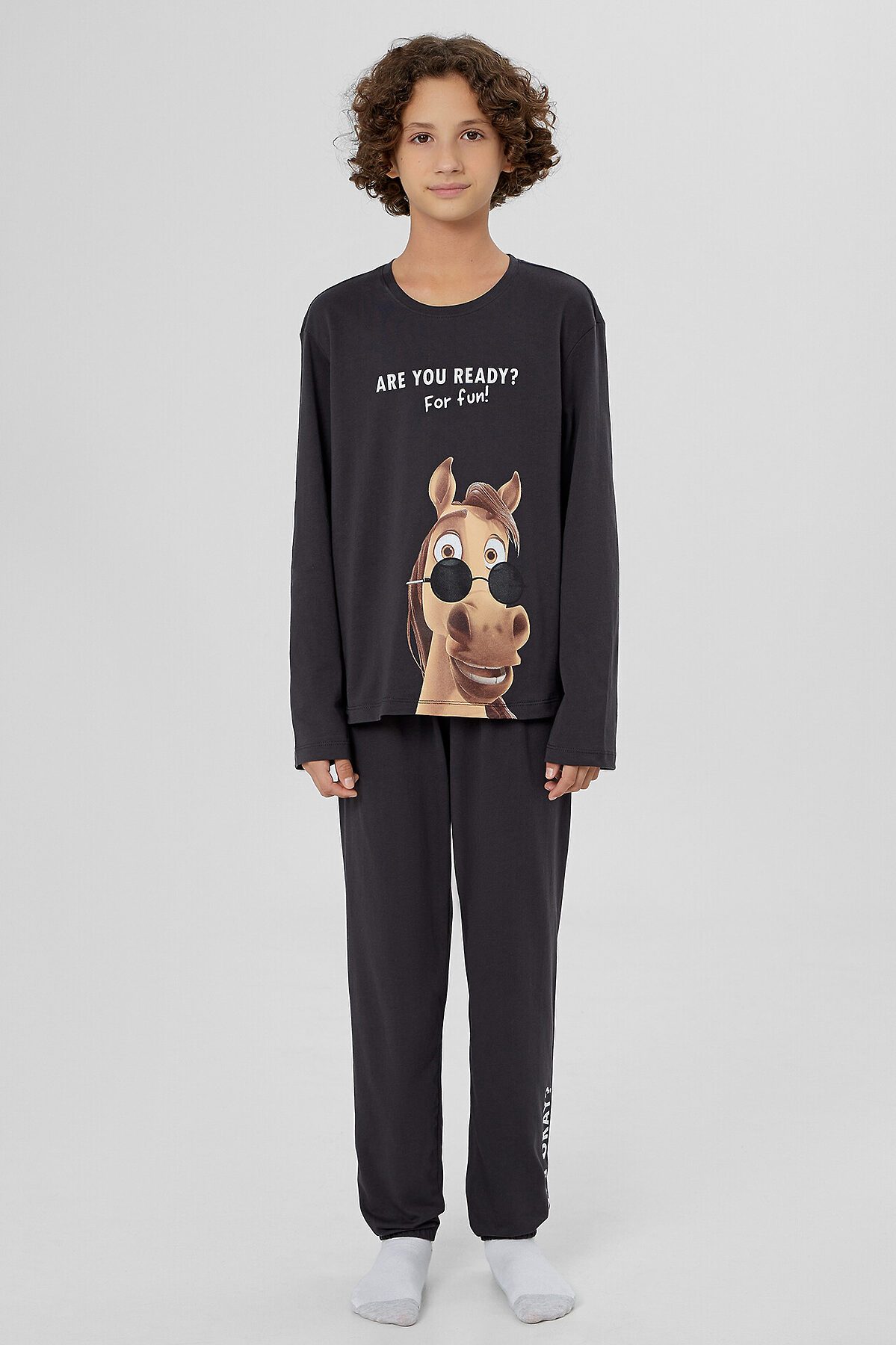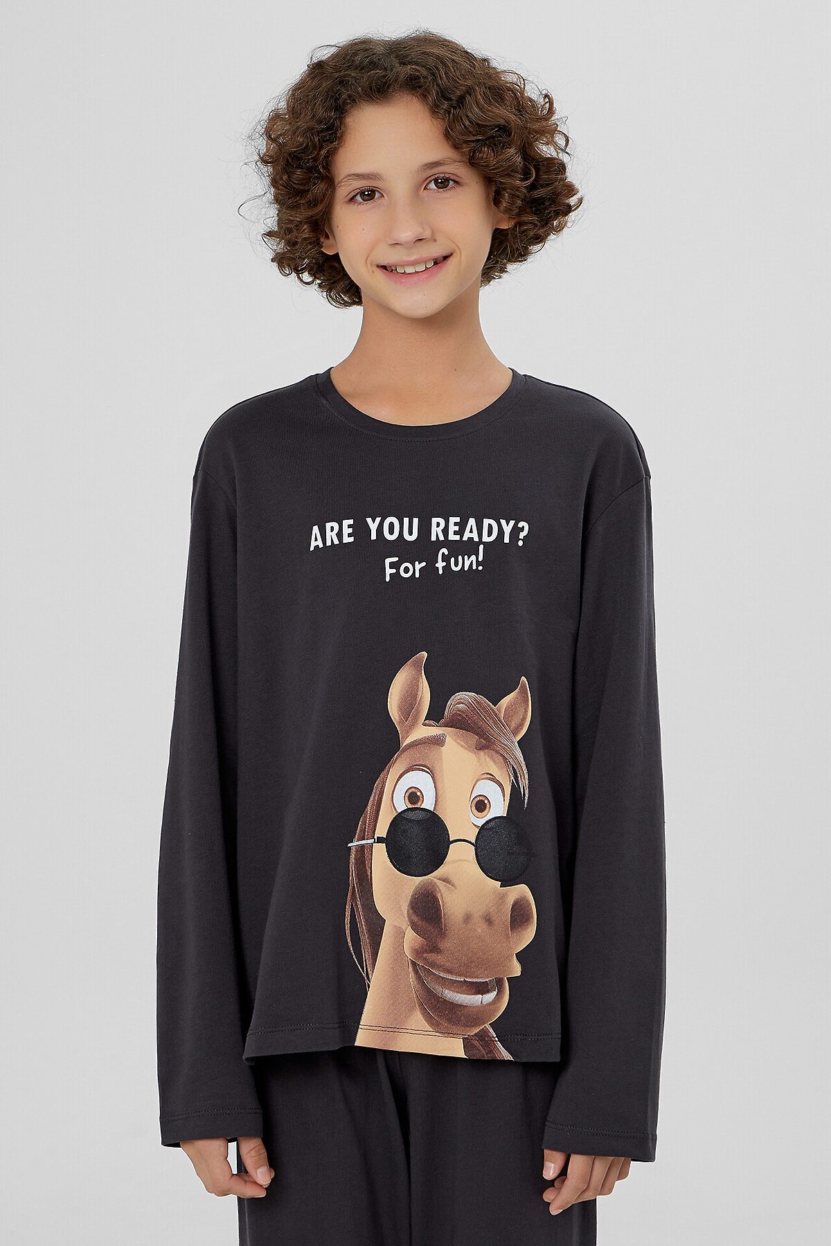Серая пижама для мальчиков с зажигательной надписью "Are you ready? For fun!" («Готов к веселью?») создана для комфортного отдыха и активного времяпрепровождения дома. Комплект включает джемпер с длинными рукавами и удобные брюки на резинке. Пижама выполнена из высококачественного натурального хлопка, который обеспечивает комфорт как летом, так и зимой. Мягкий материал обладает хорошей эластичностью, не стесняет движений и позволяет коже дышать, исключая парниковый эффект. Свободный крой не ограничивает подвижность, что делает пижаму идеальным вариантом для ежедневной носки, спокойного сна или веселых игр в помещении. Практичный комплект станет надежным спутником вашего ребенка.