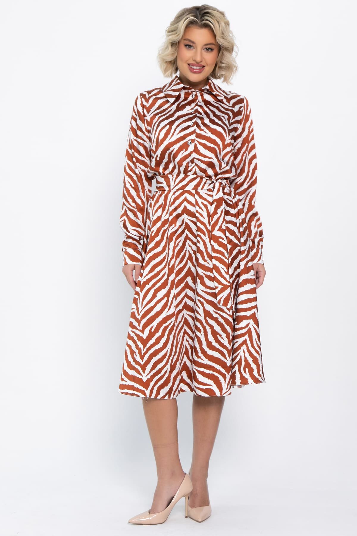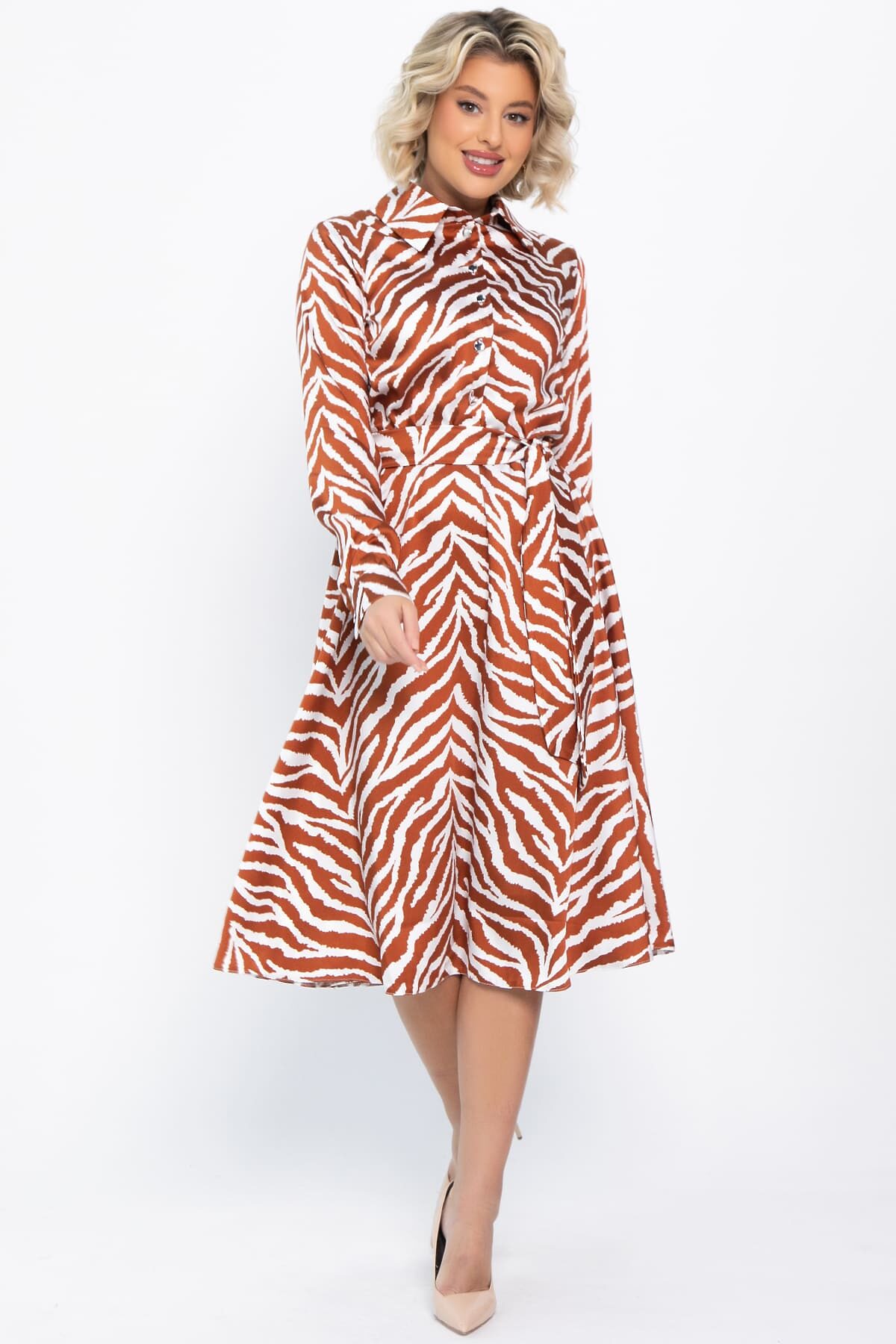 Это элегантное красивое платье создано из высококачественного текстильного полотна, которое подчеркивает изящество линий и добавляет изысканности любому образу. Особенностью данного платья является его шикарный дизайн в стиле зебры, где контрастные полосы создают эффект визуального сокращения фигуры и придают образу неповторимую оригинальность. По талии есть резинка. Модный акцент делает эту вещь идеальным выбором для вечерних мероприятий или просто для того, чтобы выделиться среди толпы.