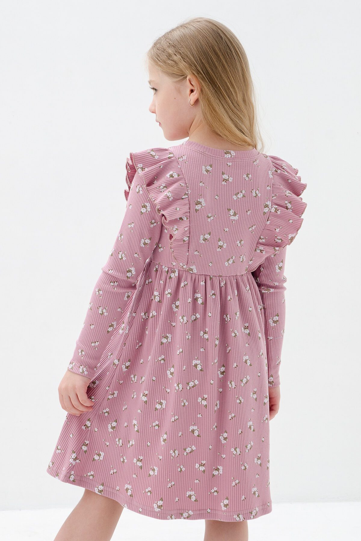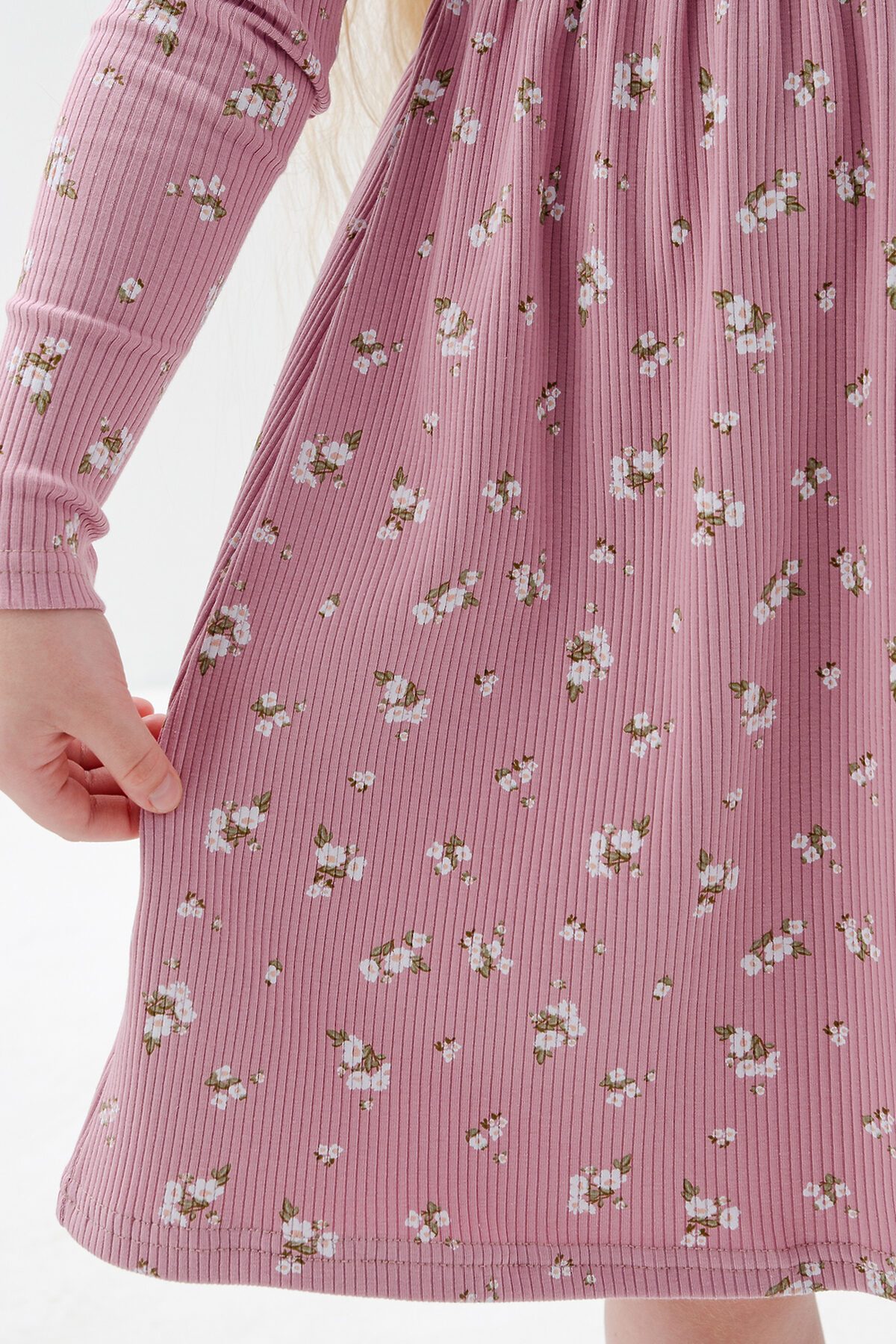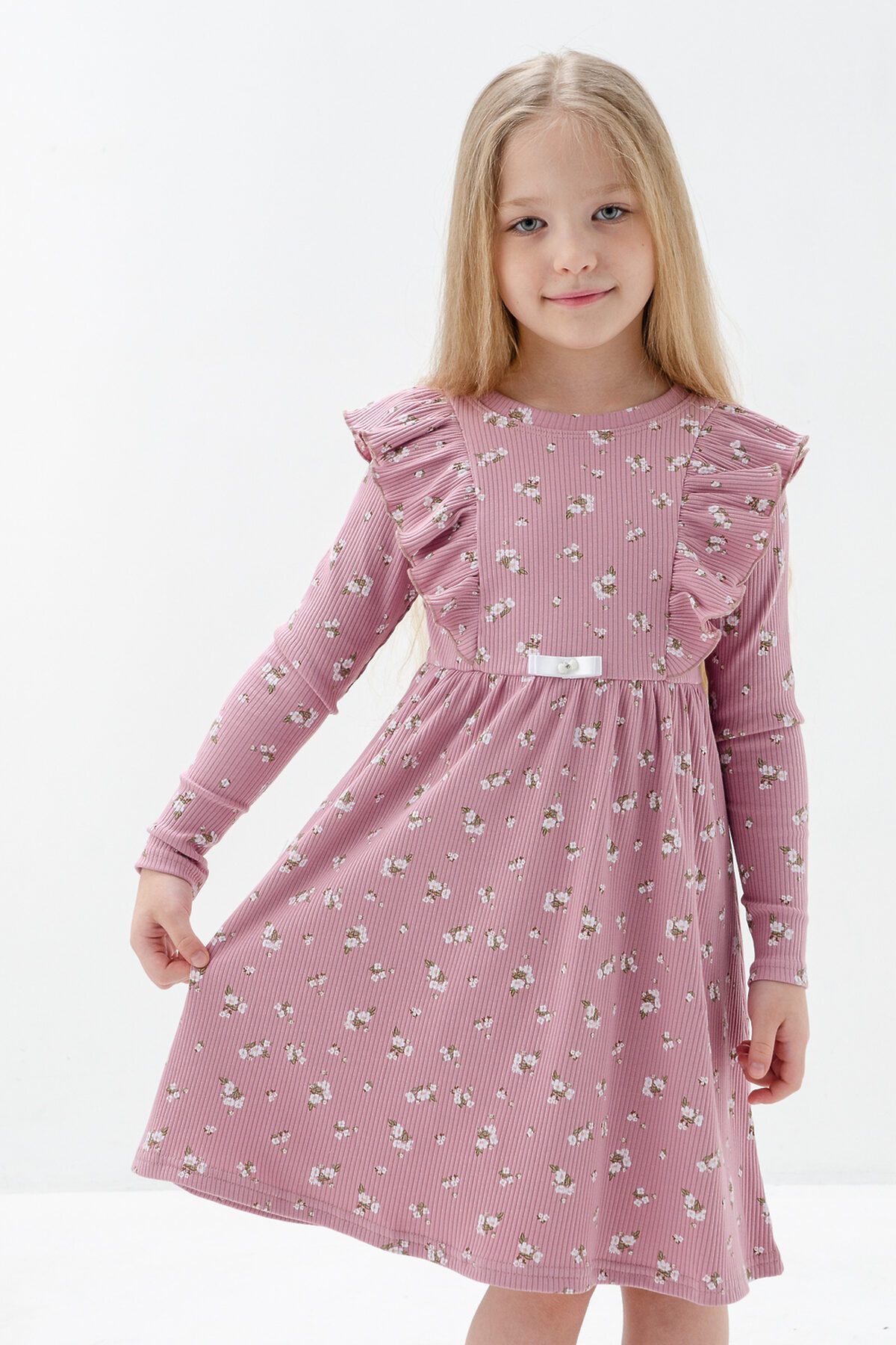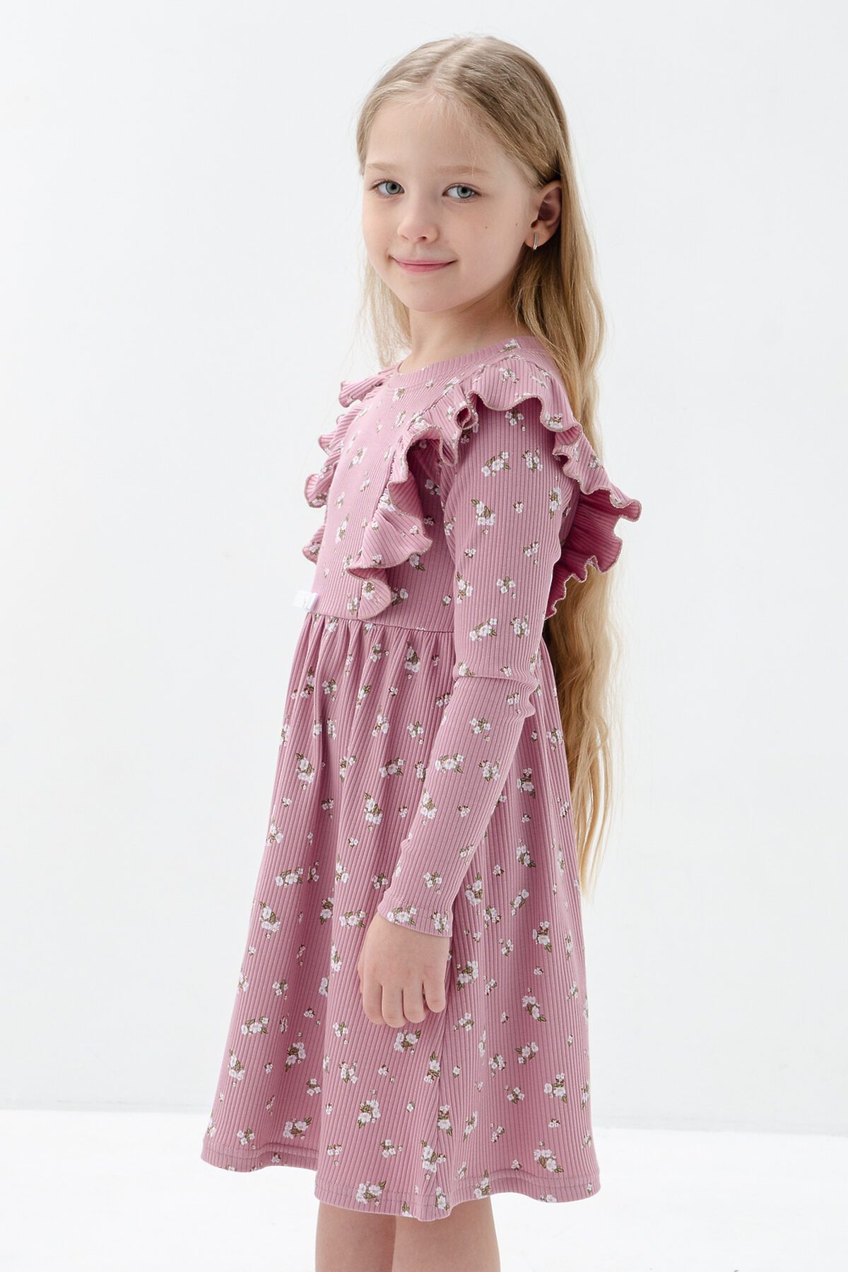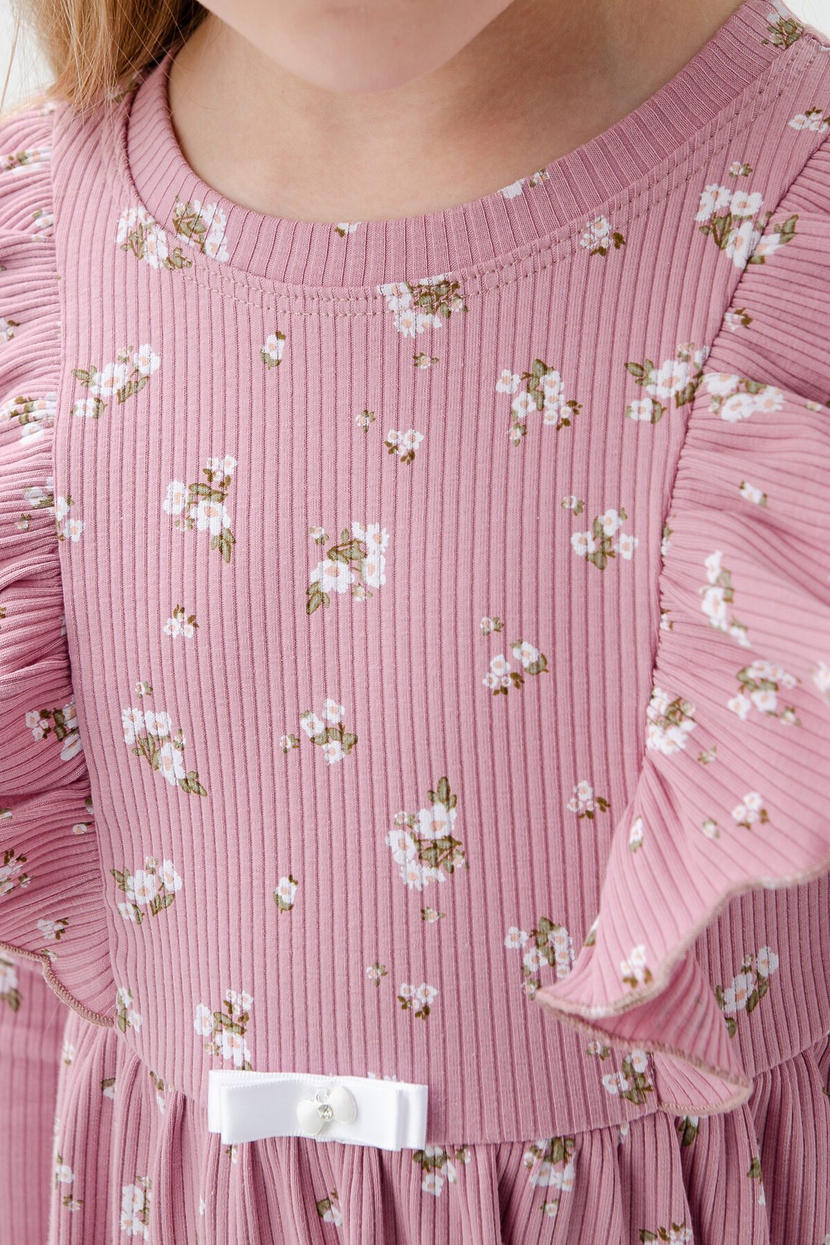 Платье Бетти длинный рукав детское НАТАЛИ, цветочки на розовом