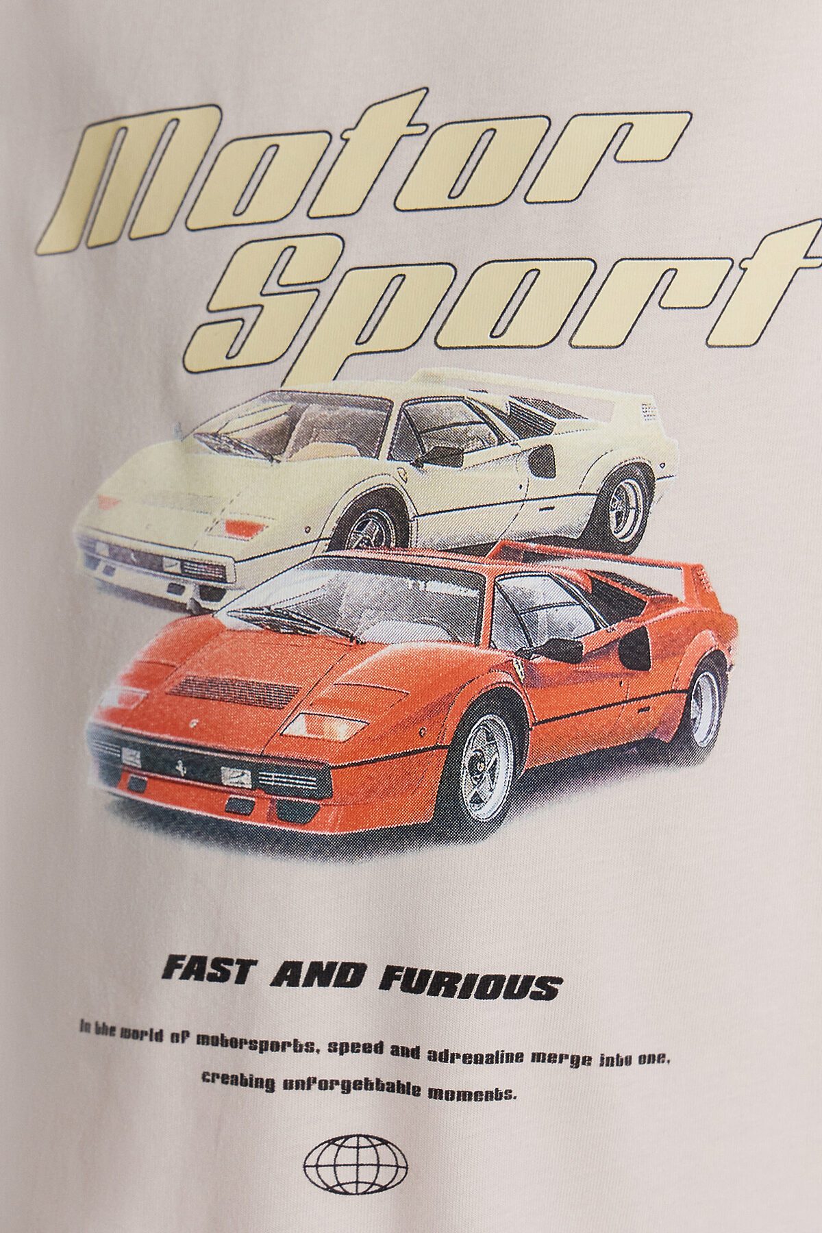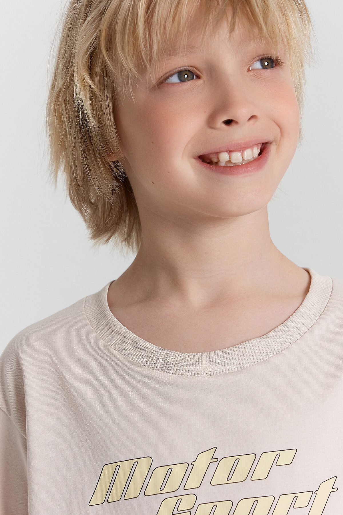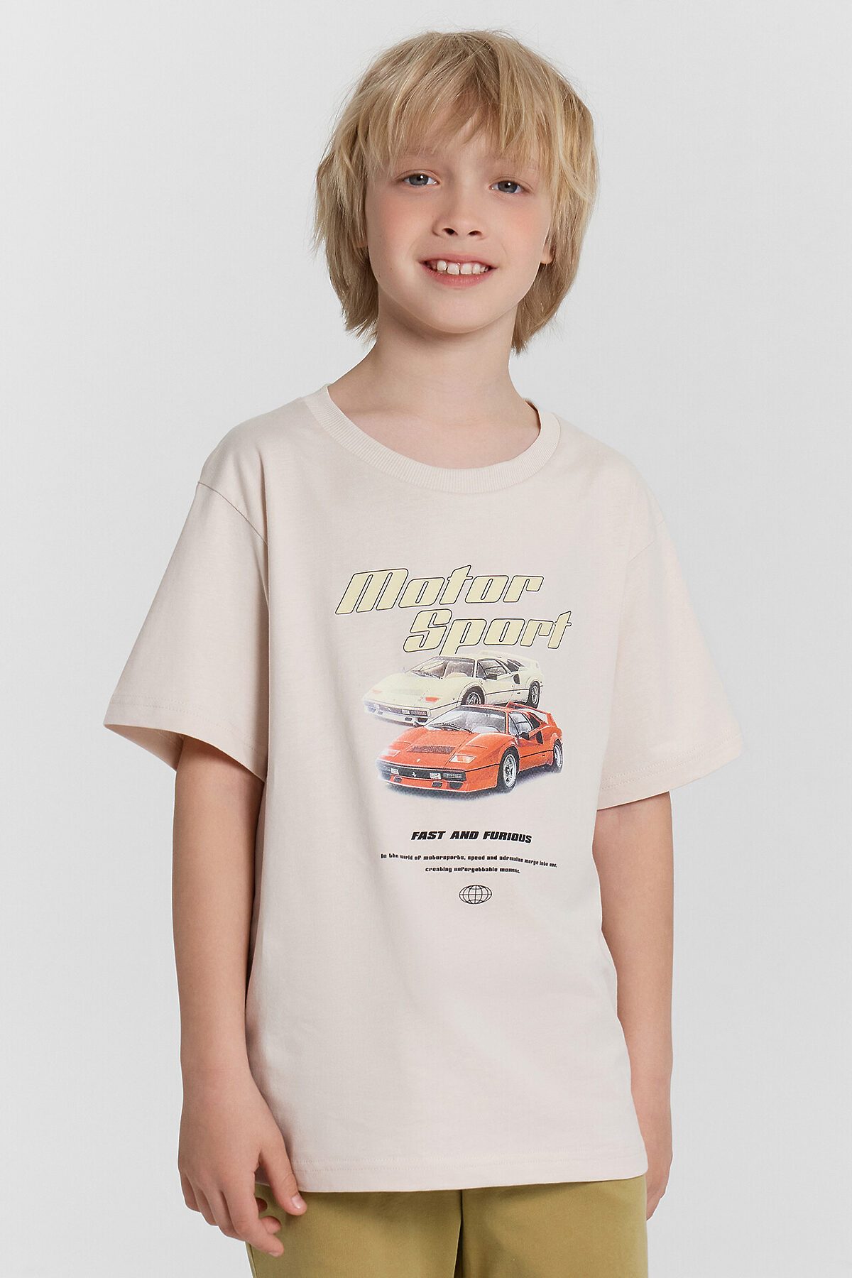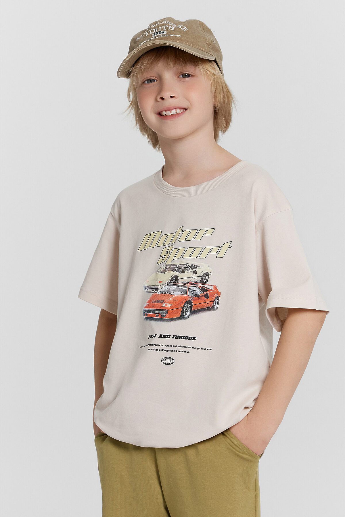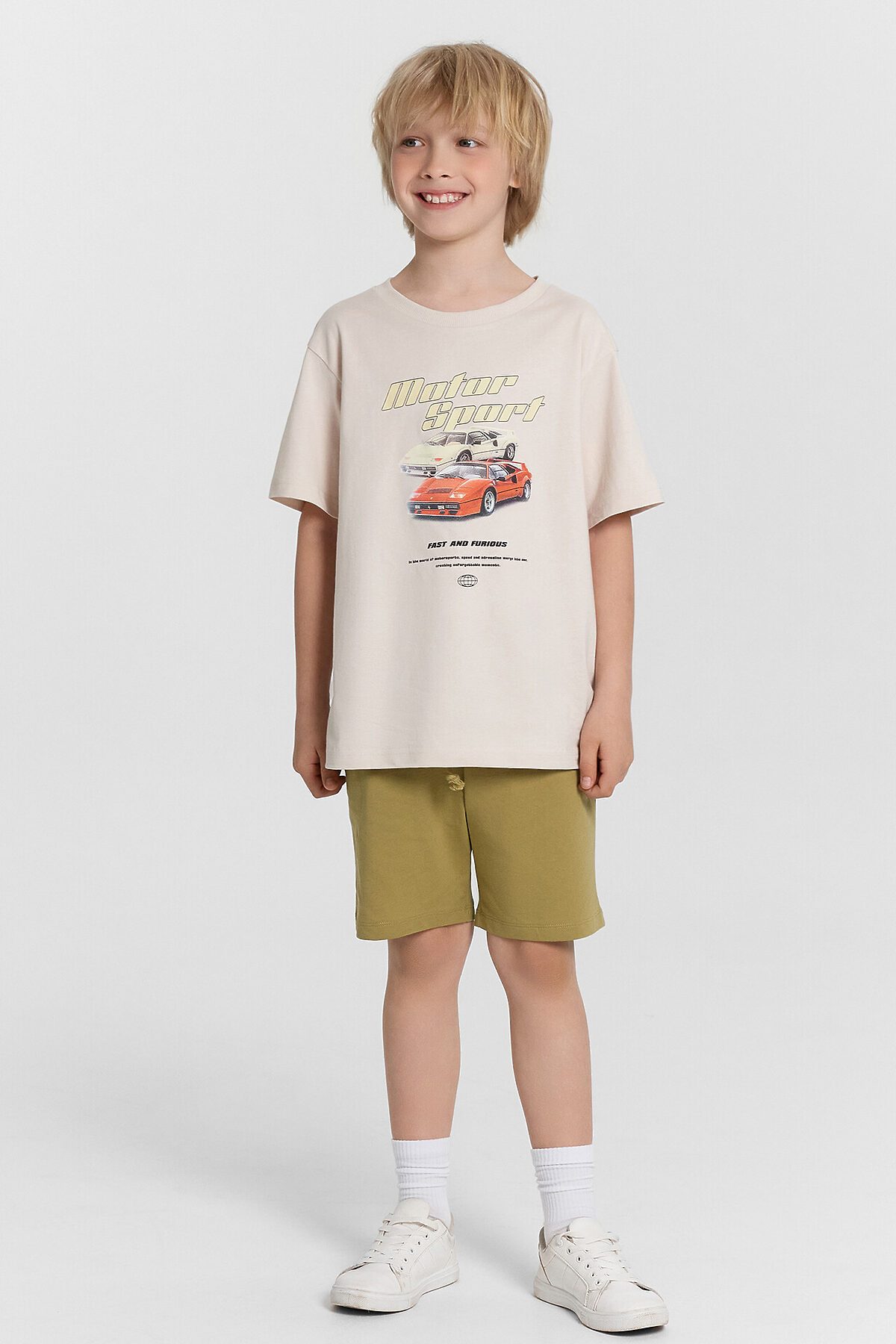 Футболка верхняя изготовлена из трикотажного кулирного полотна и трикотажного полотна рибаны.. Футболка верхняя прямого силуэта. Перед и спинка цельнокроенные. Рукава втачные короткие. Линия плеча спущена. Горловина круглой формы, обтачка из трикотажного полотна рибаны 1*1. Шов втачивания рибаны по спинке закрыт бейкой из основного полотна. Низ футболки и рукавов обработан на 2-х игольной плоскошовной машине швом в подгибку.