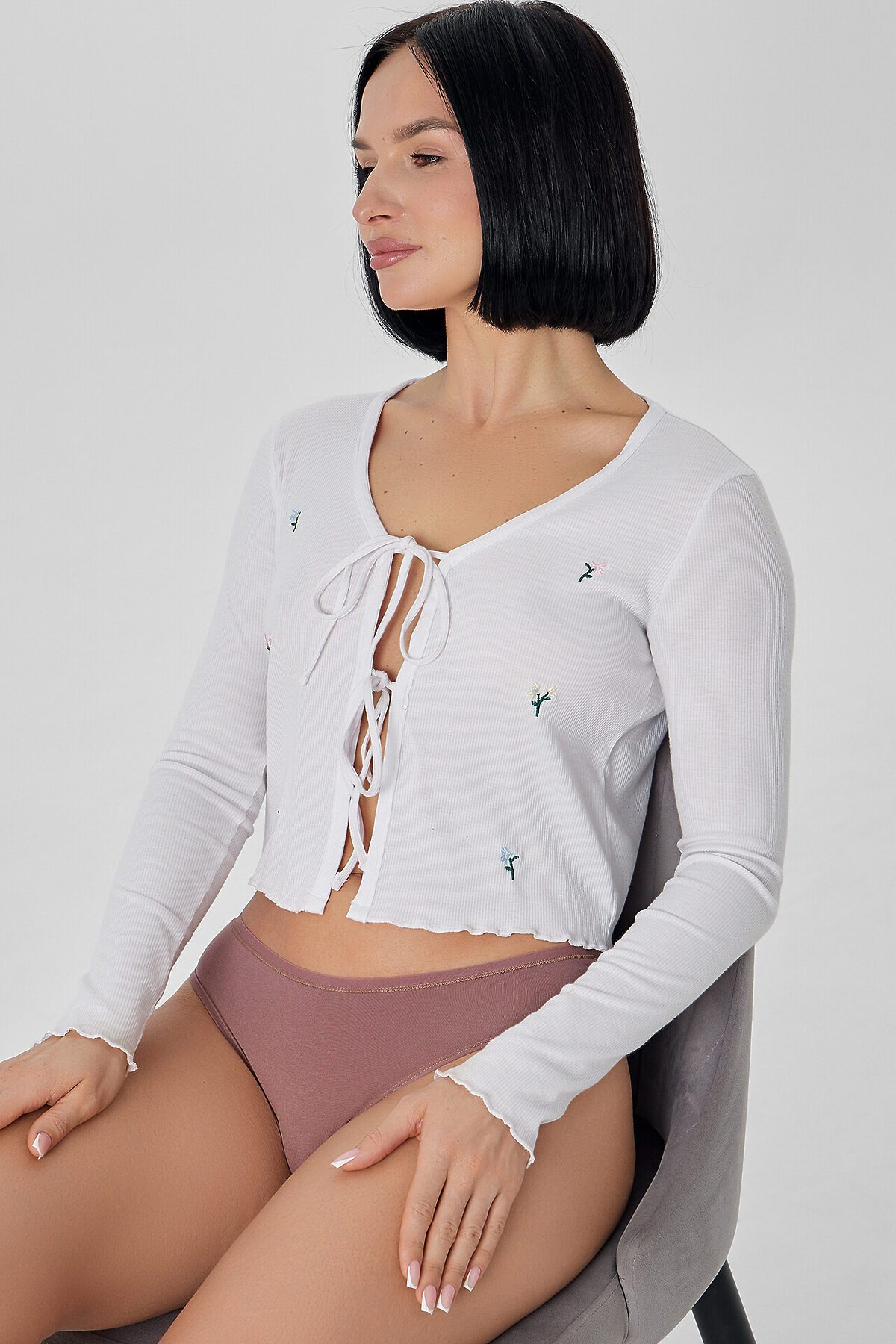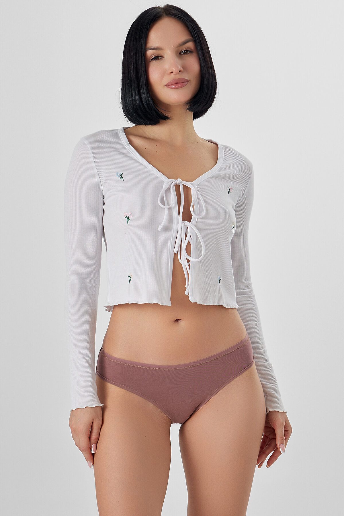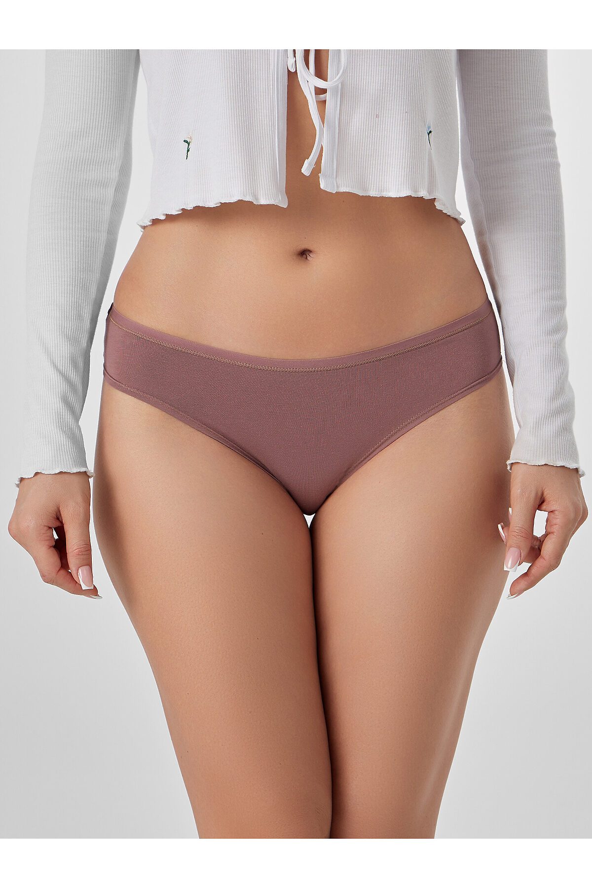 Трусы женские, силуэт - слипы, выполнены из трикотажного кулирного полотна+кружево. Передняя, задние верхние детали и подкладка ластовицы выполнены из кулирного полотна. Срезы по ножкам на детали переда обработаны на плоскошовной машине. Задние детали декорированы широким кружевом, по центру шов. Верхний срез трусов обработан эл. тесьмой 6мм (жилко й WT4, Девсел арт 13460W) на плоскошовной машине с верхним застилом.
