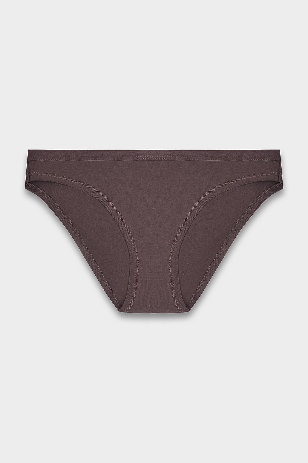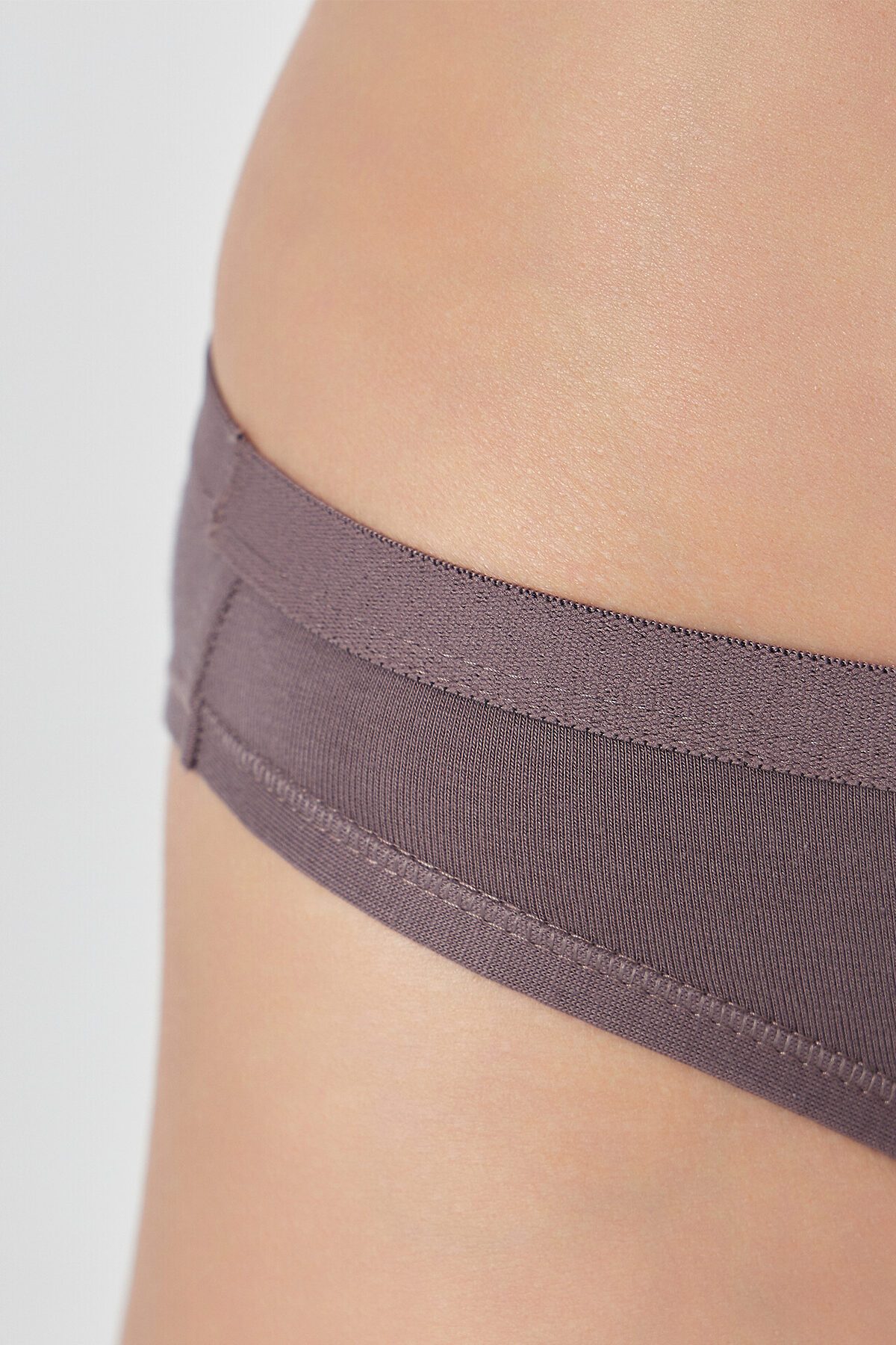 Трусы женские со средней посадкой силуэта «слип» из трикотажного кулирного полотна. Узкий бочок. Передняя и задняя детали цельные. Подкладка ластовицы из кулирного полотна отлетная по переднему краю. По верхнему срезу настрочена жаккардовая эл тесьма 15 мм (тесьма жаккард MF D-4, код JT22-15). Нижние срезы окантованы узкой бейкой (20 мм) из основного полотна в 2 сложения с узким верхним застилом (нить текстура №90).