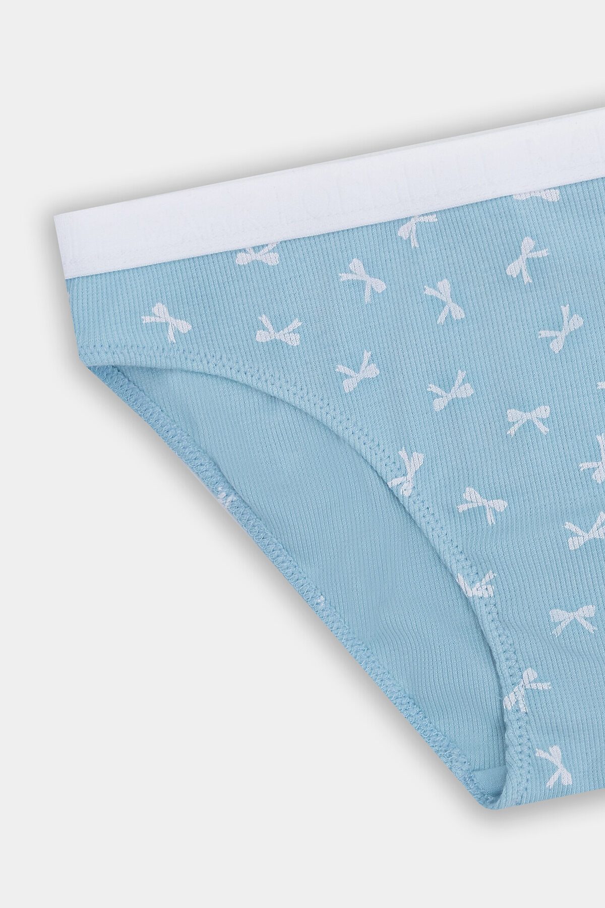 Трусы для девочек выполнены из полотна трикотажного рибана 2*2, R-67(R22-049.01.200), 97% хлопок; 3% эластан , 93 см, 200 гр/м?. Деталь переда и сидения соединены боковым швом. По нижнему срезу трусов обработка 55, внутри эластичная тесьма (жилка тканая, WT4-6), ширина 6 мм. Ластовица из кулирного полотна SJ-6 (SJ-009.01.170),95% хлопок; 5% эластан , 180 см, 170 гр/м?. По верхнему срезу трусов эластичная тесьма (тесьма жаккард JT1-20), ширина - 20 мм.