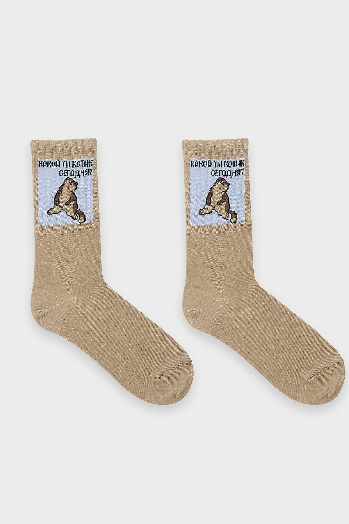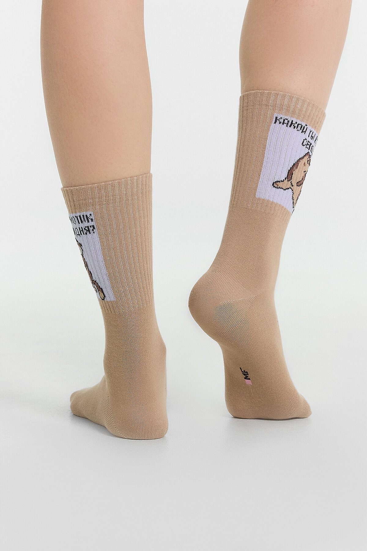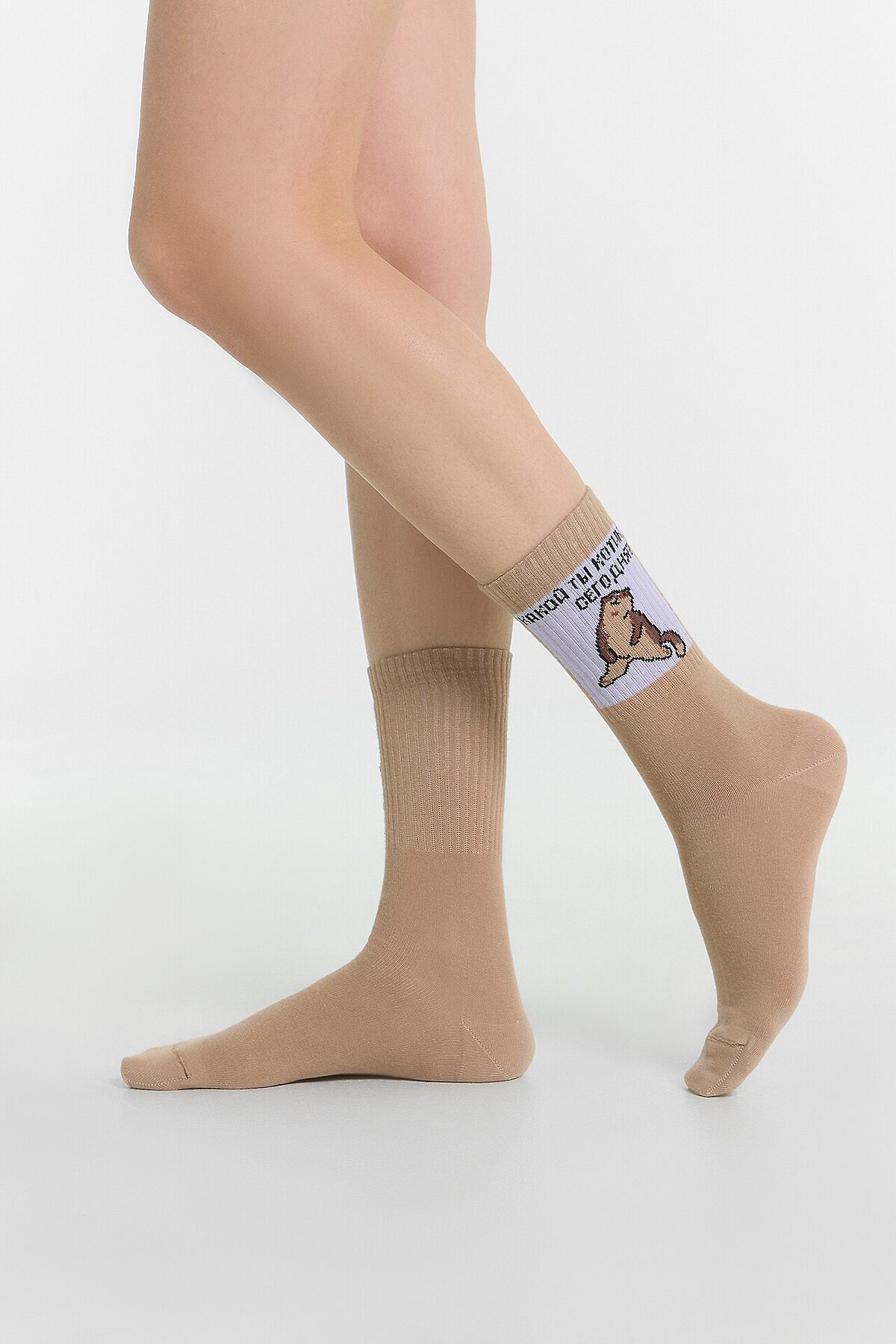 рис.2868 Женский носок с высоким плотным бортом, а также с рисунком в виде надписи и кота.