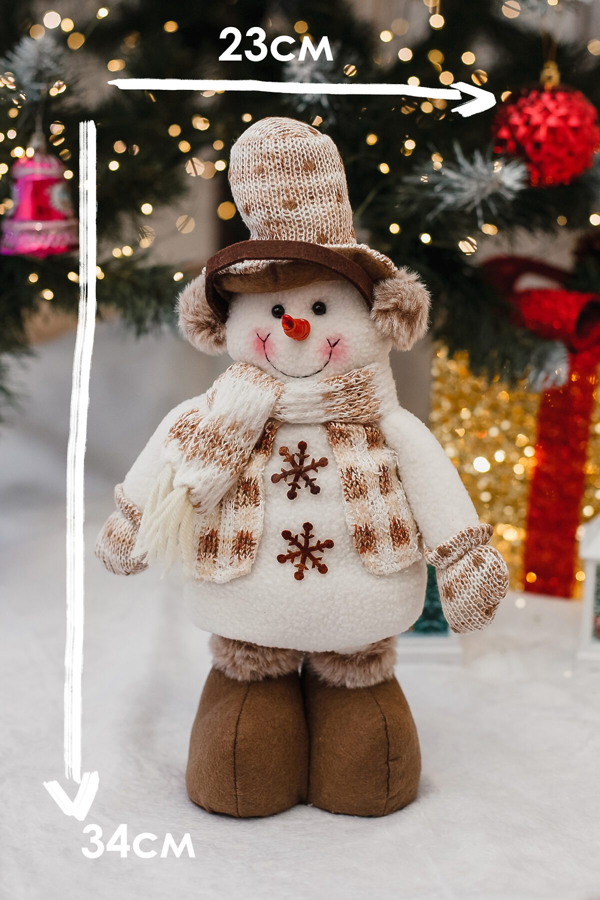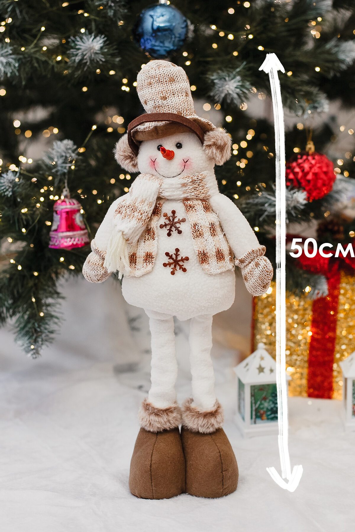 Новогодняя игрушка мягкий снеговик с выдвижными ножками эффектная и практичная праздничная игрушка, которая в сложенном виде занимает всего 3423 см, а при раздвинутых ножках превращается в высокий декоративный элемент высотой 48 см. Выполнен из мягкого текстиля с аккуратной отделкой и плотным наполнителем, он легко держит форму, при этом остаётся лёгким и удобным для транспортировки и размещения под ёлкой или в праздничной фотозоне. Выдвижные ножки дают два варианта использования компактное хранение вне сезона и выразительная высота для декора, что делает игрушку отличным подарком, который приятно будет дарить и получать. Универсальный дизайн впишется в классические и современные новогодние интерьеры, игрушка подойдёт для украшения гостиной, детской комнаты, прихожей или коммерческих витрин. Уход простой достаточно протирать мягкой сухой или слегка влажной тканью и хранить в сухом прохладном месте вдали от прямых источников тепла. При размещении рядом с детьми рекомендуем следить за мелкими декоративными деталями и устанавливать снеговика на устойчивой поверхности. Идеальная идея для тех, кто ищет красивый, компактный в хранении и в то же время эффектный подарок под ёлку, который создаёт праздничное настроение и добавляет уюта в дом.