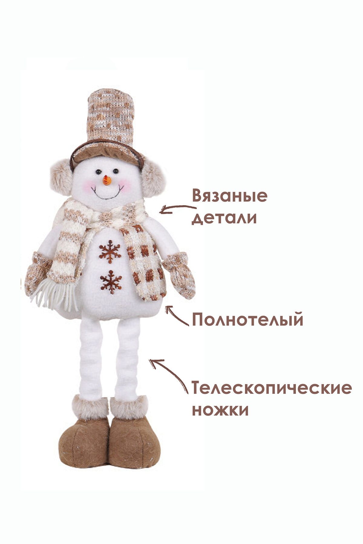 Игрушка новогодняя с выдвижными ногами Снеговик в наушниках в шляпе НАТАЛИ, бежевый