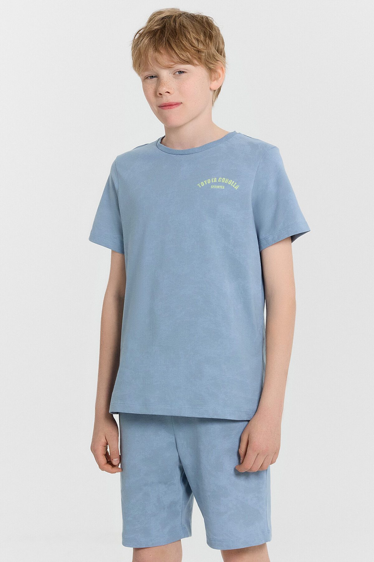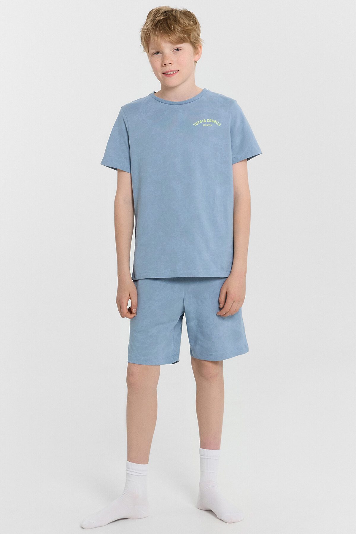 Костюм (Футболка+Шорты) MARK FORMELLE, серо -синий acid wash +печать