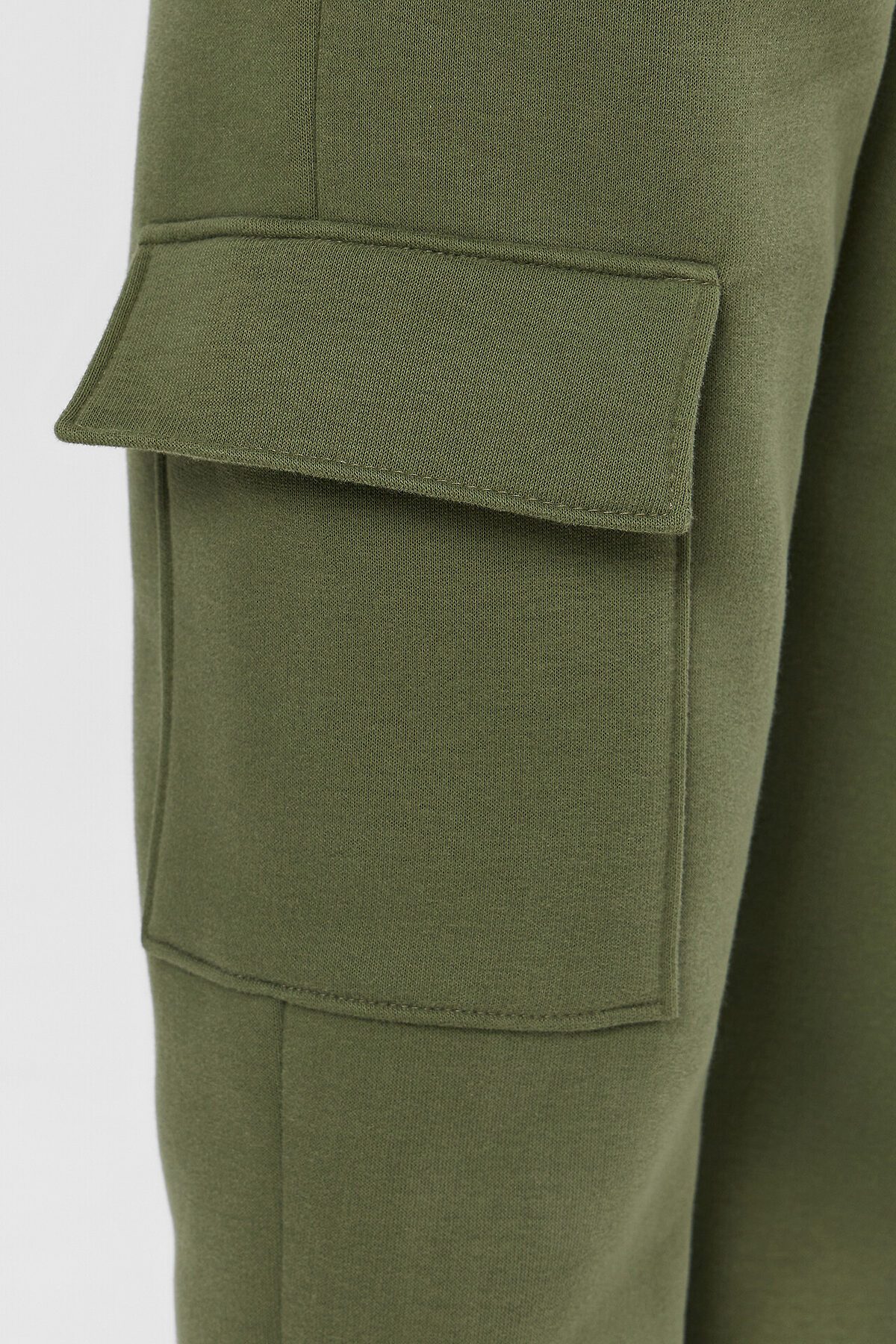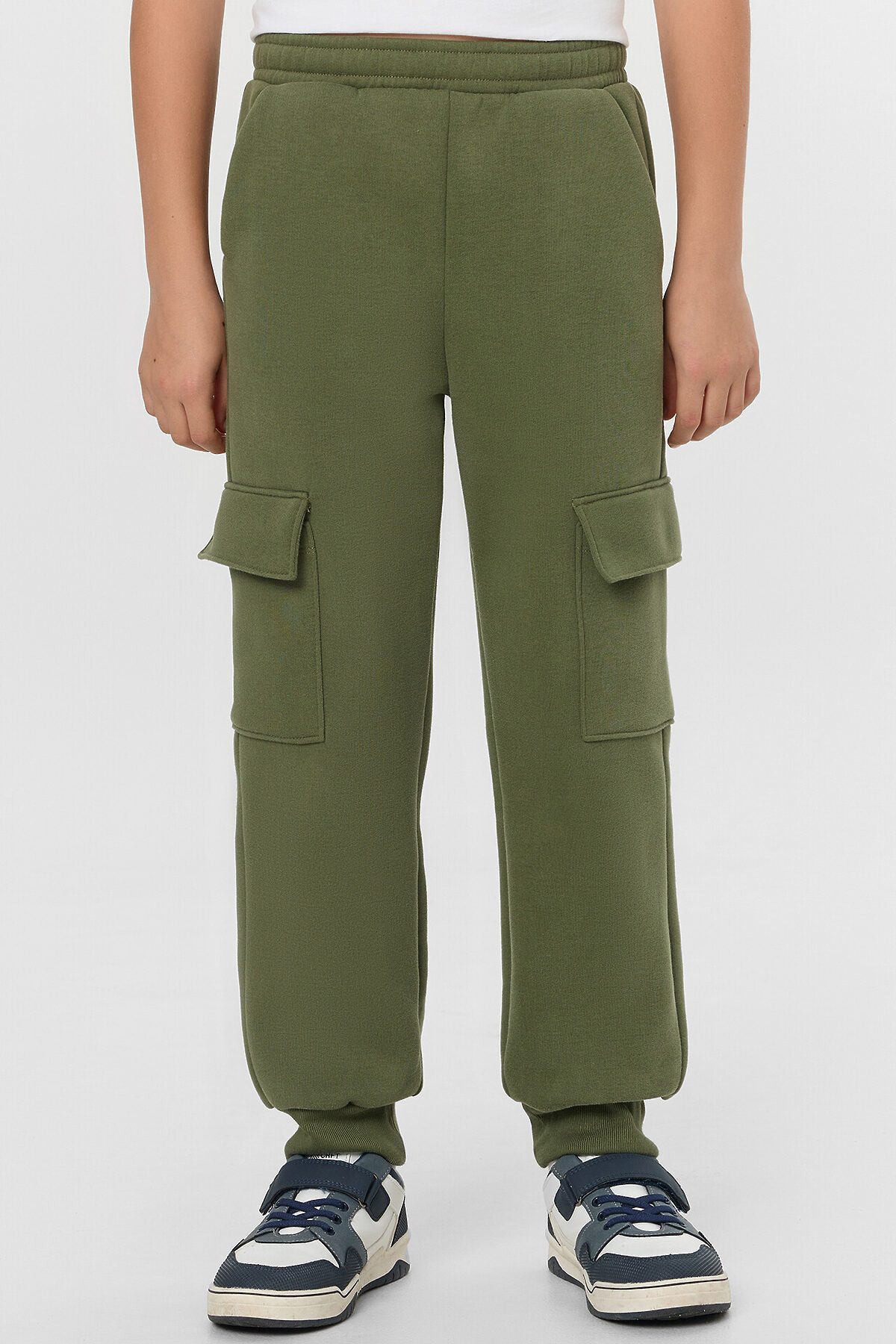 Брюки джогеры. Посадка средняя. На передних деталях карманы "хулиганы". Подкладка карманов из основного полотна. Пояс отрезной с эластичной тесьмой 40RV, отстрочен. Внутри в поясе пробиты петли и протянут шнур 10-PXC2. На боковых деталях накладные карманы с клапанами. Низ брюк обработан рибаной.