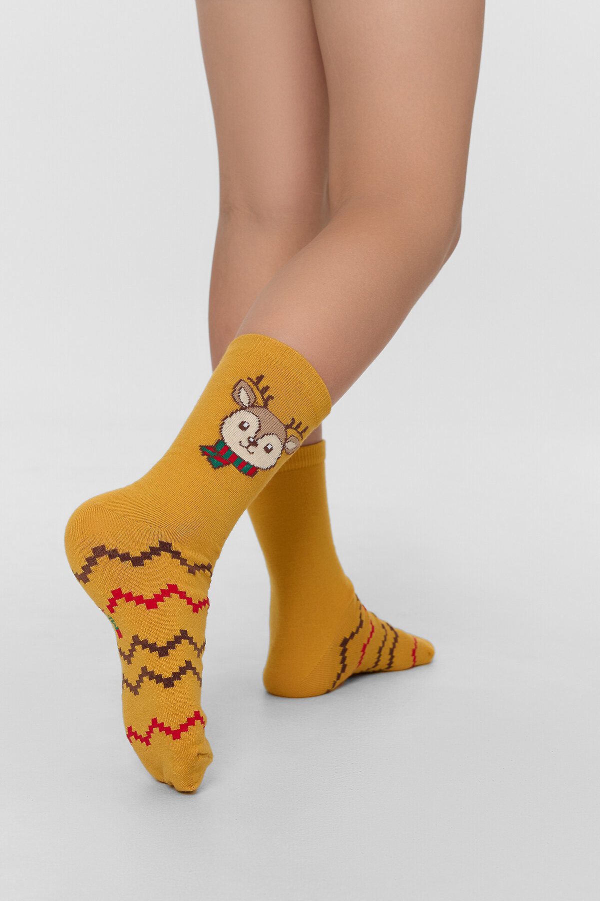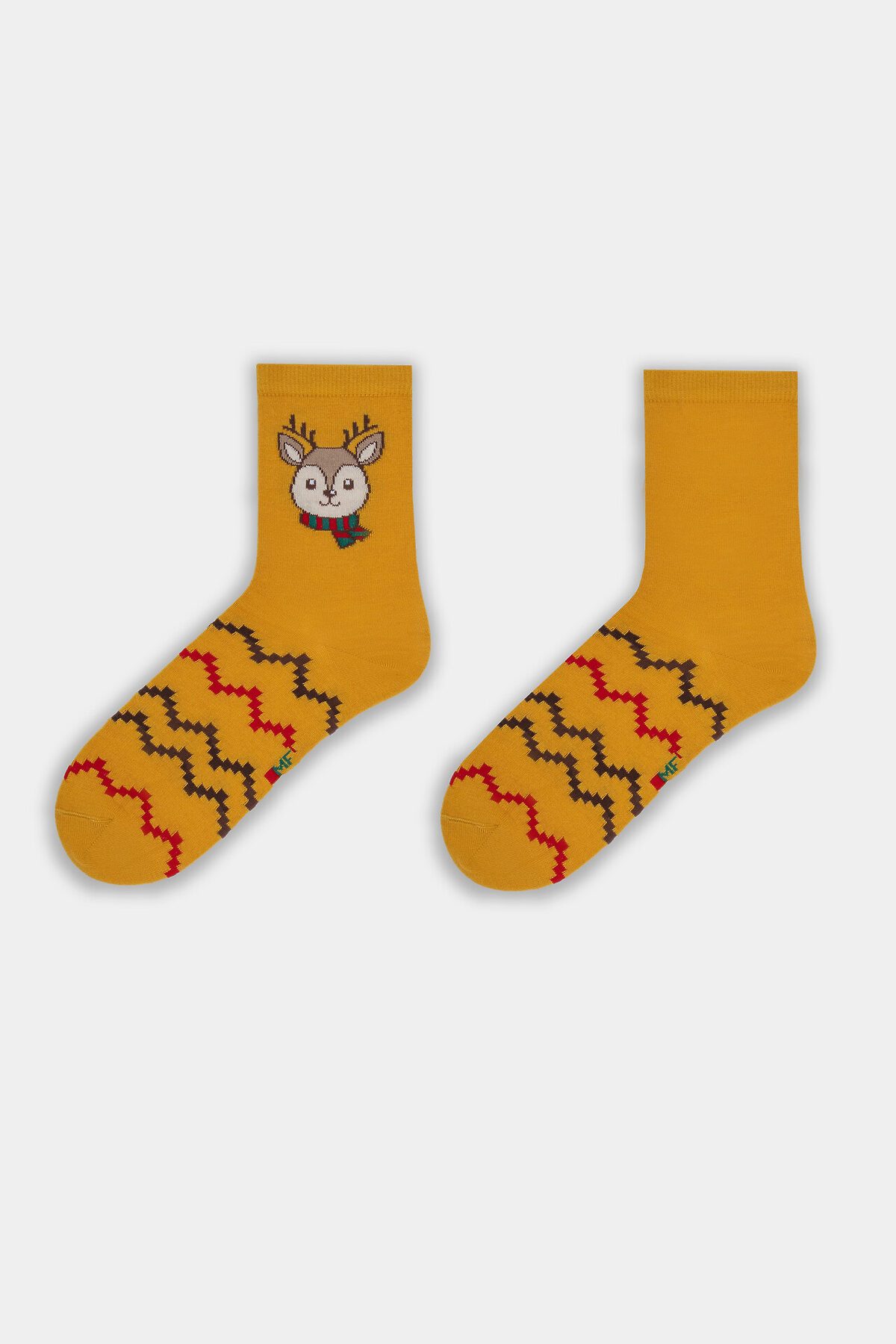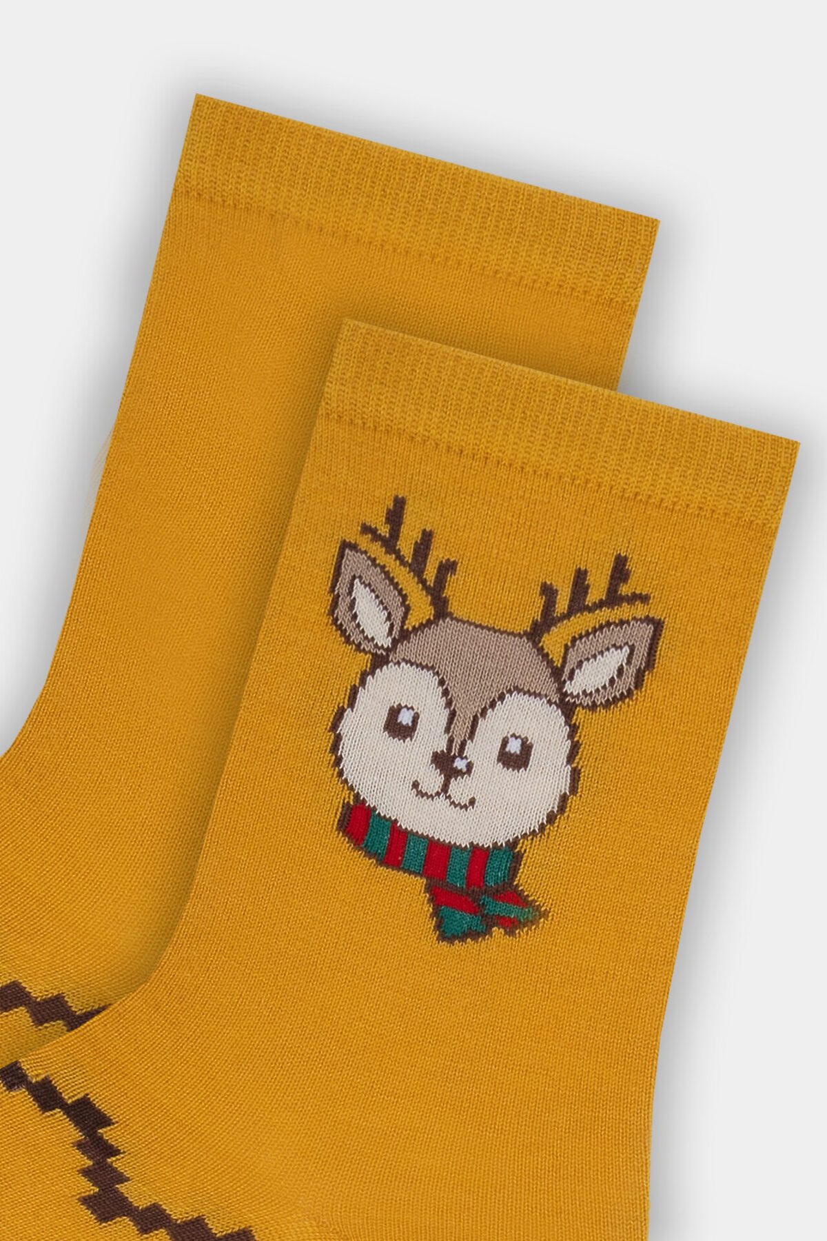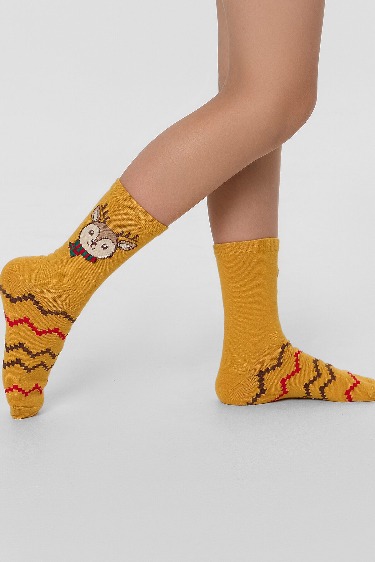Рис. 3380 Детские классические носки, выполненные из смешанной пряжи с содержанием шерсти и рисунком в виде олененка.