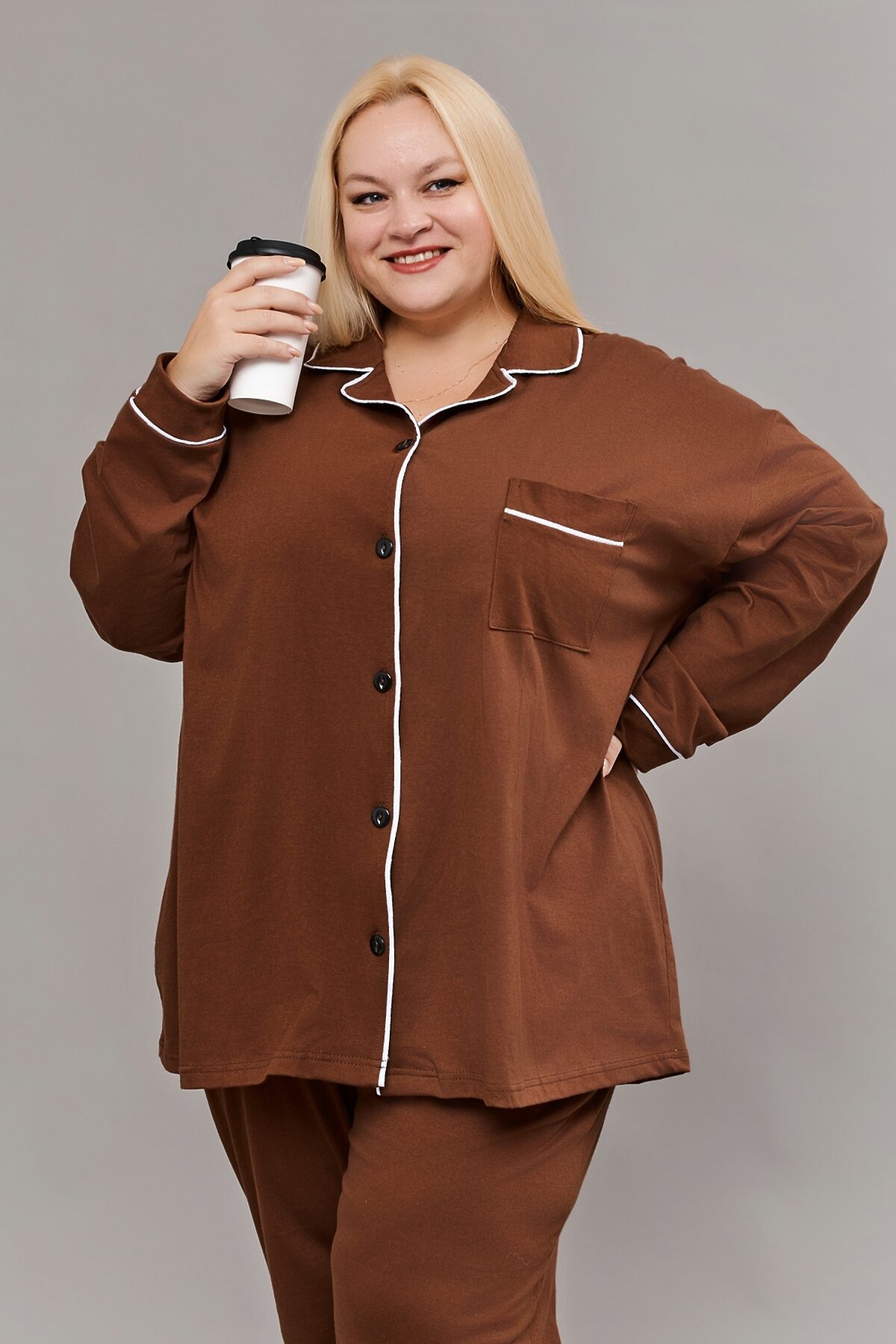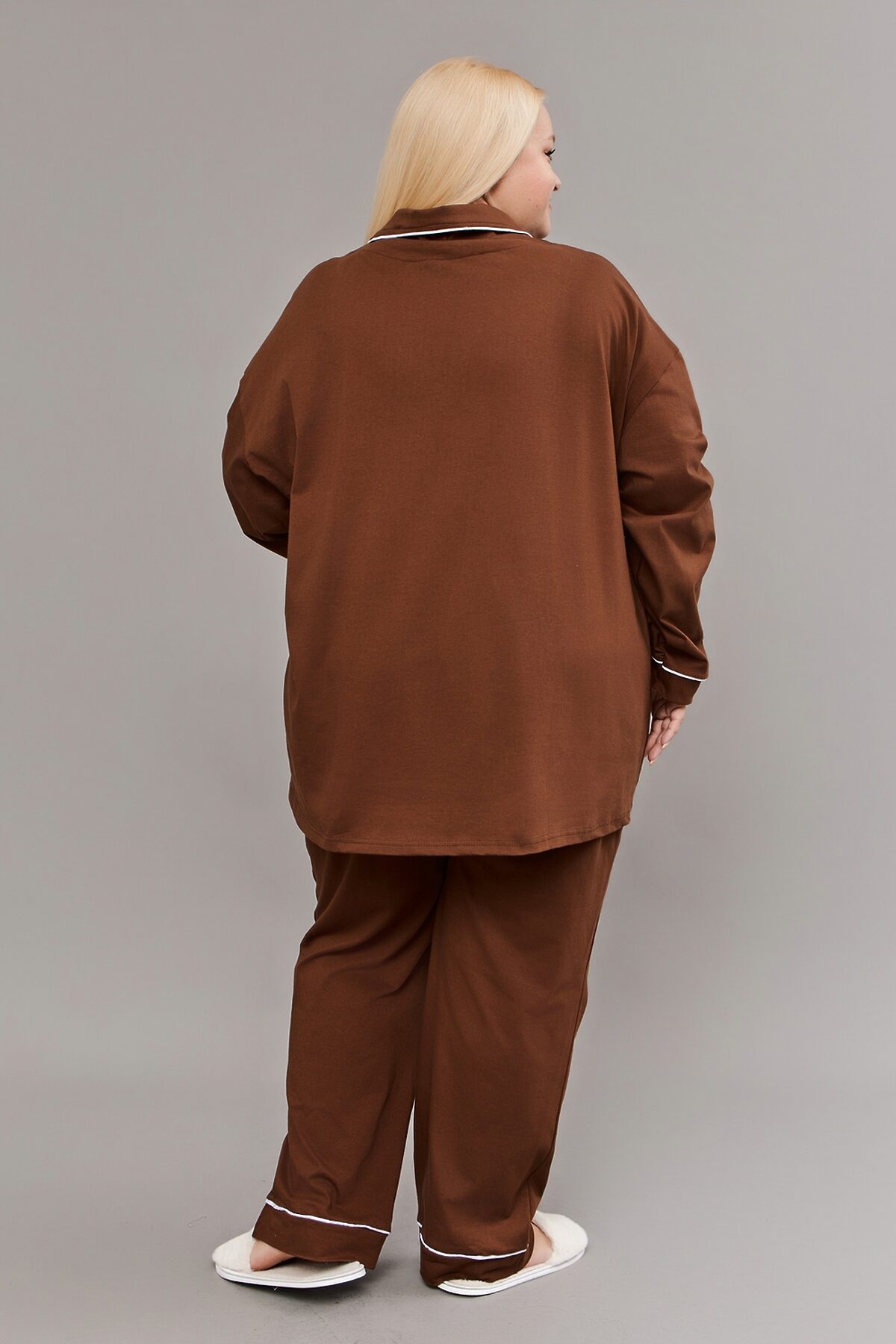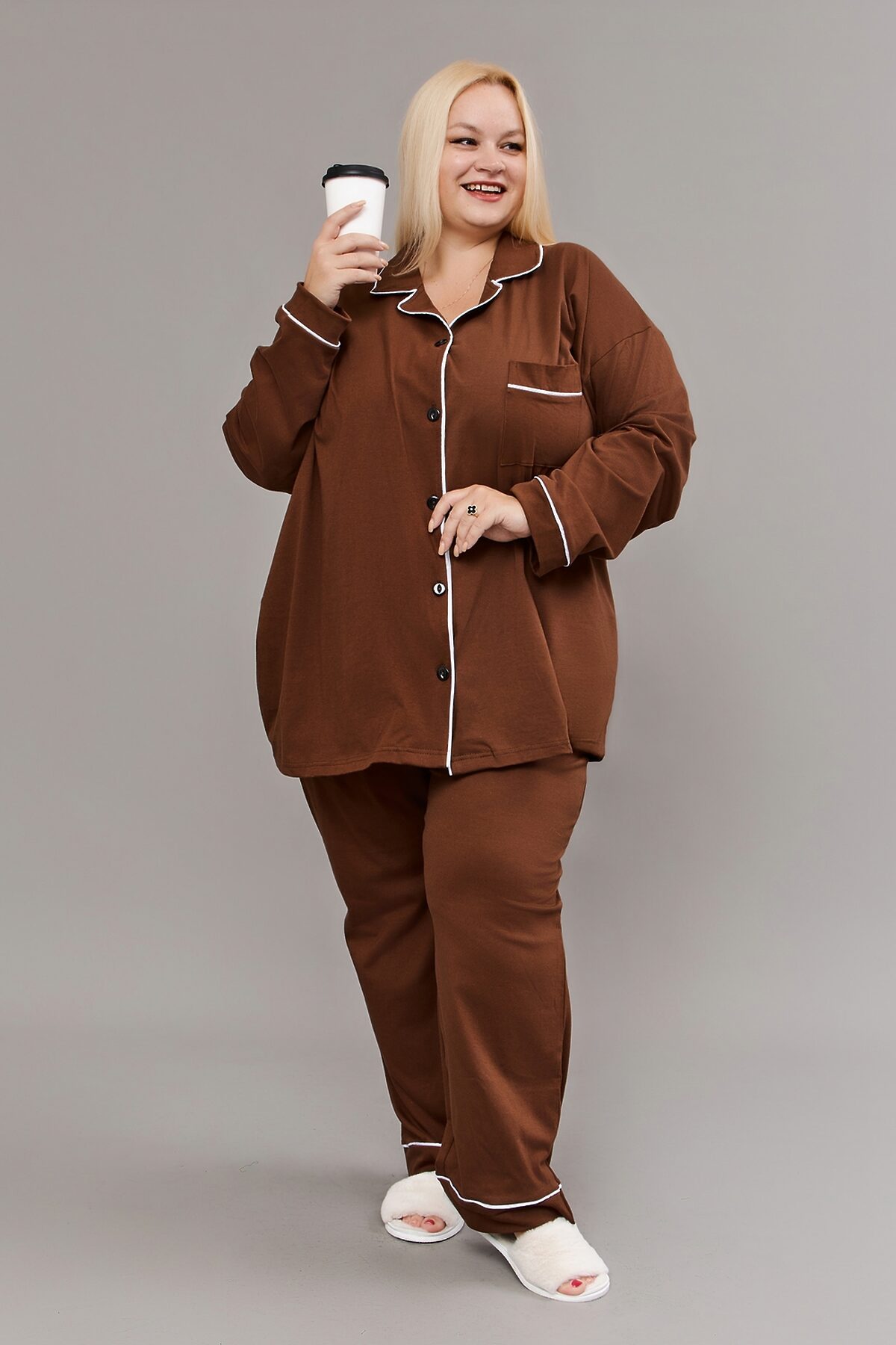Пижама с брюками на пуговицах больших размеров Однотоннная НАТАЛИ, коричневый