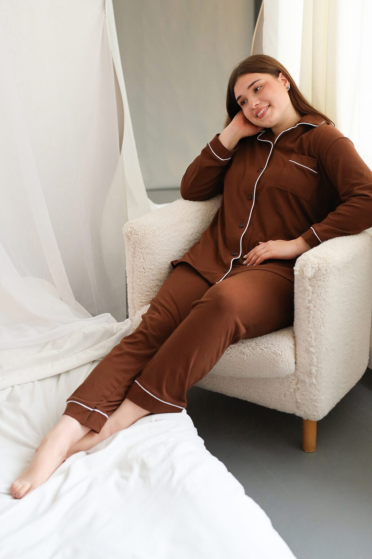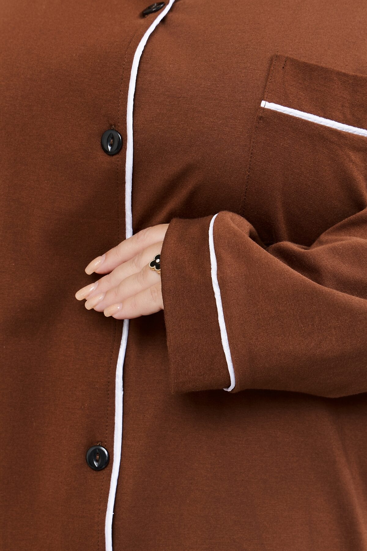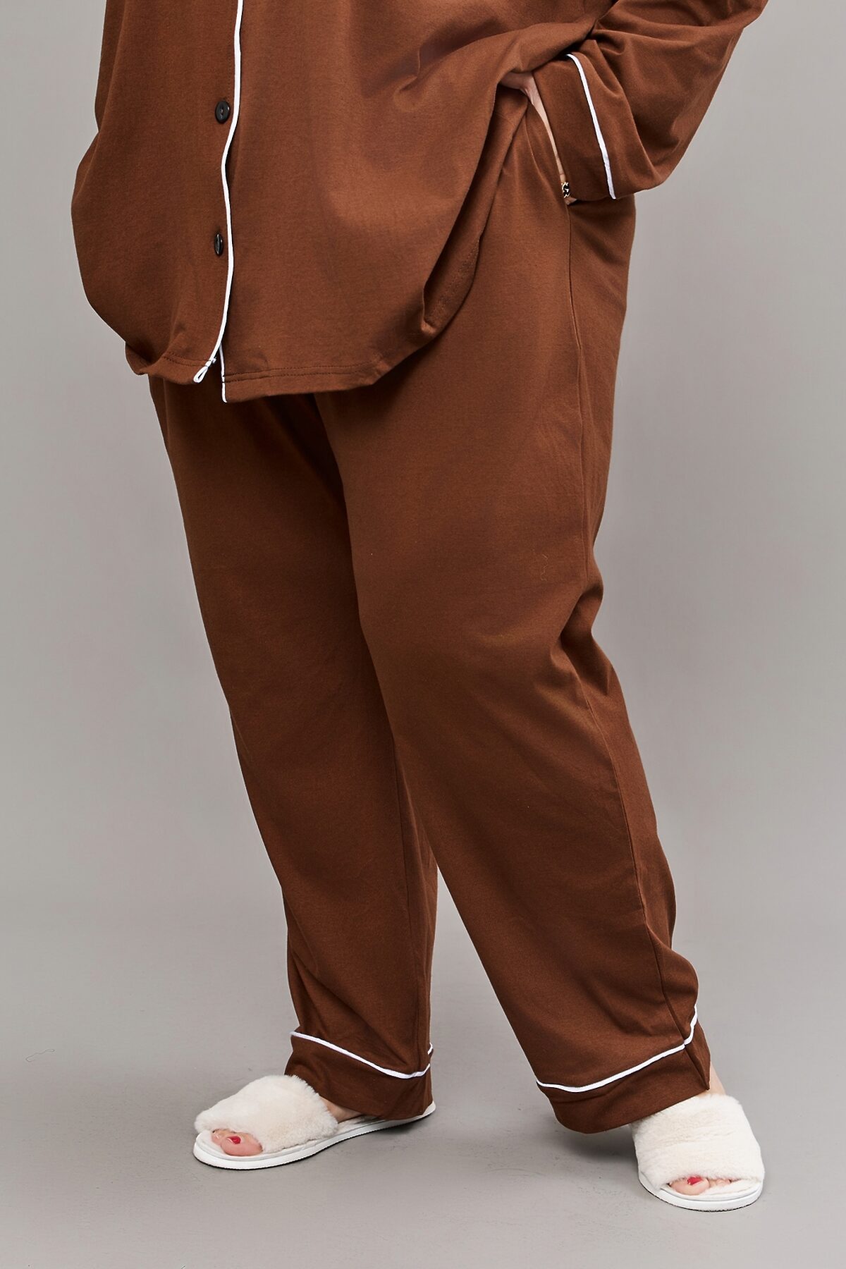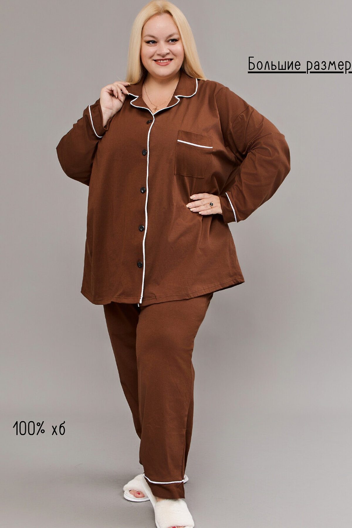 Пижама с брюками на пуговицах больших размеров Однотоннная НАТАЛИ, коричневый