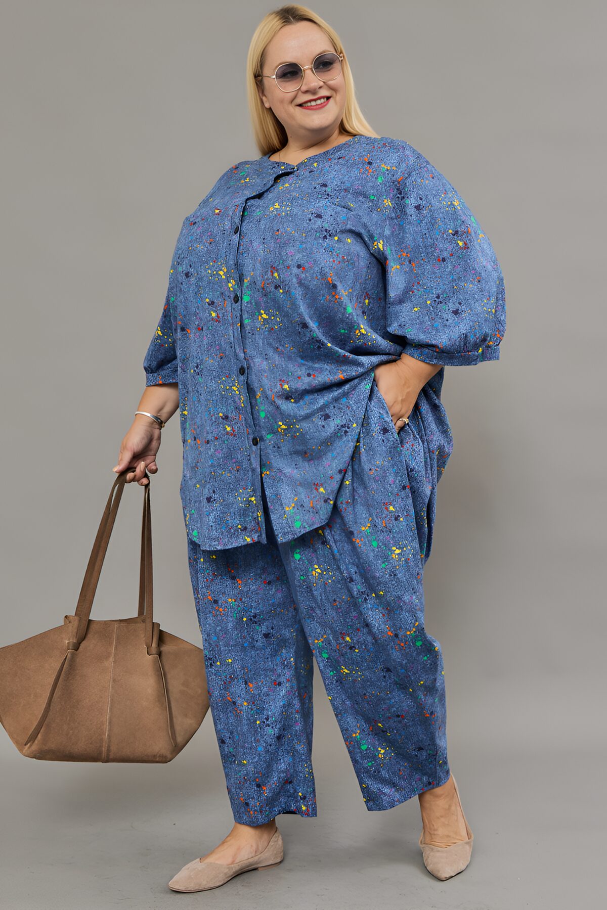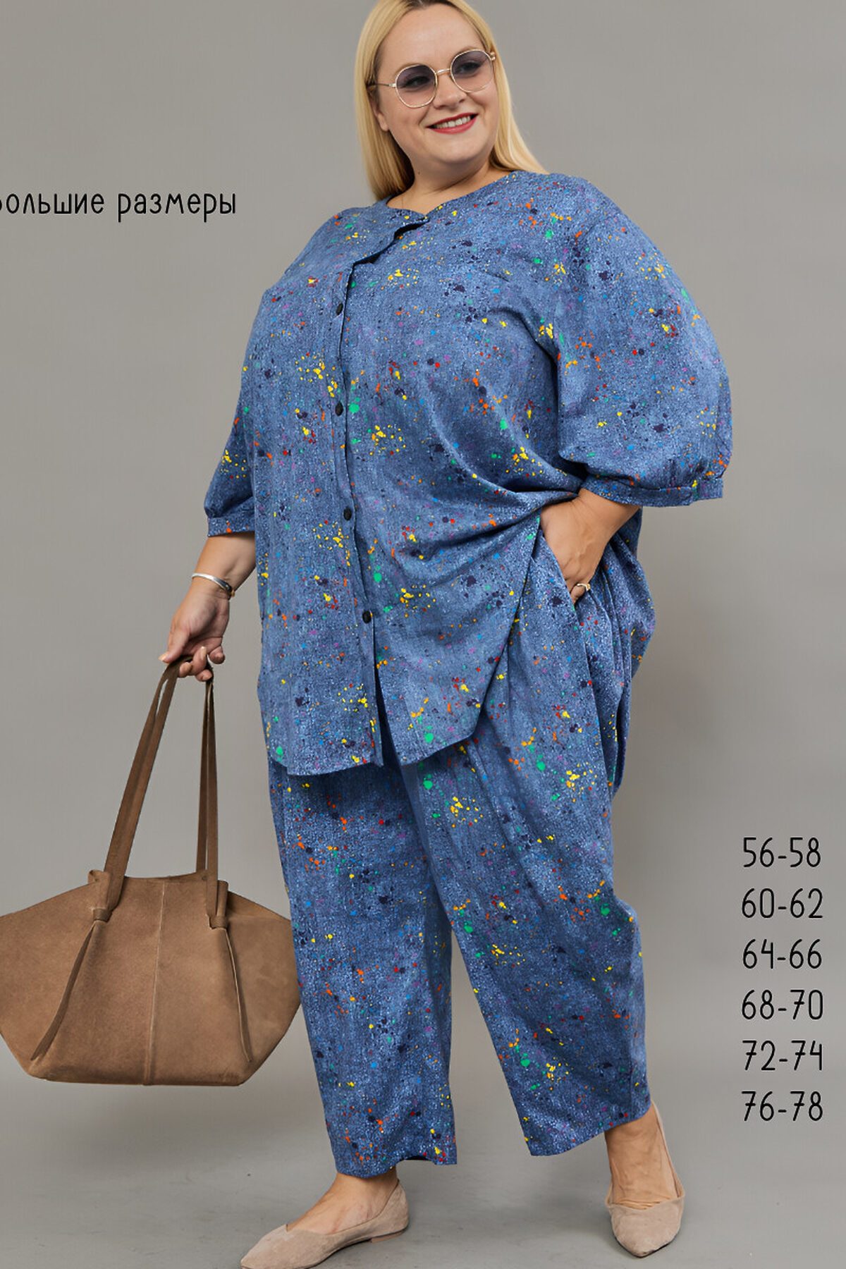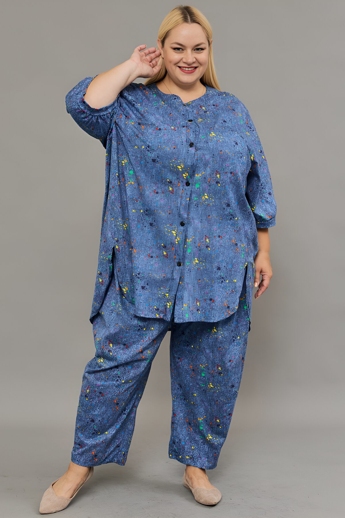 Костюм с брюками К-01 больших размеров НАТАЛИ, голубой