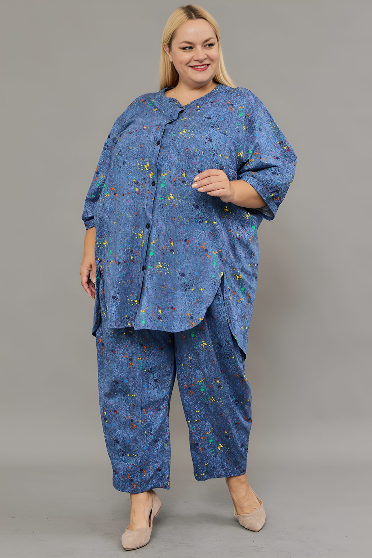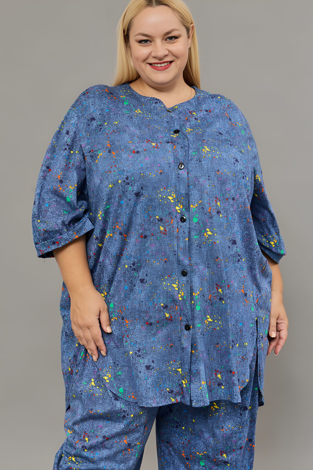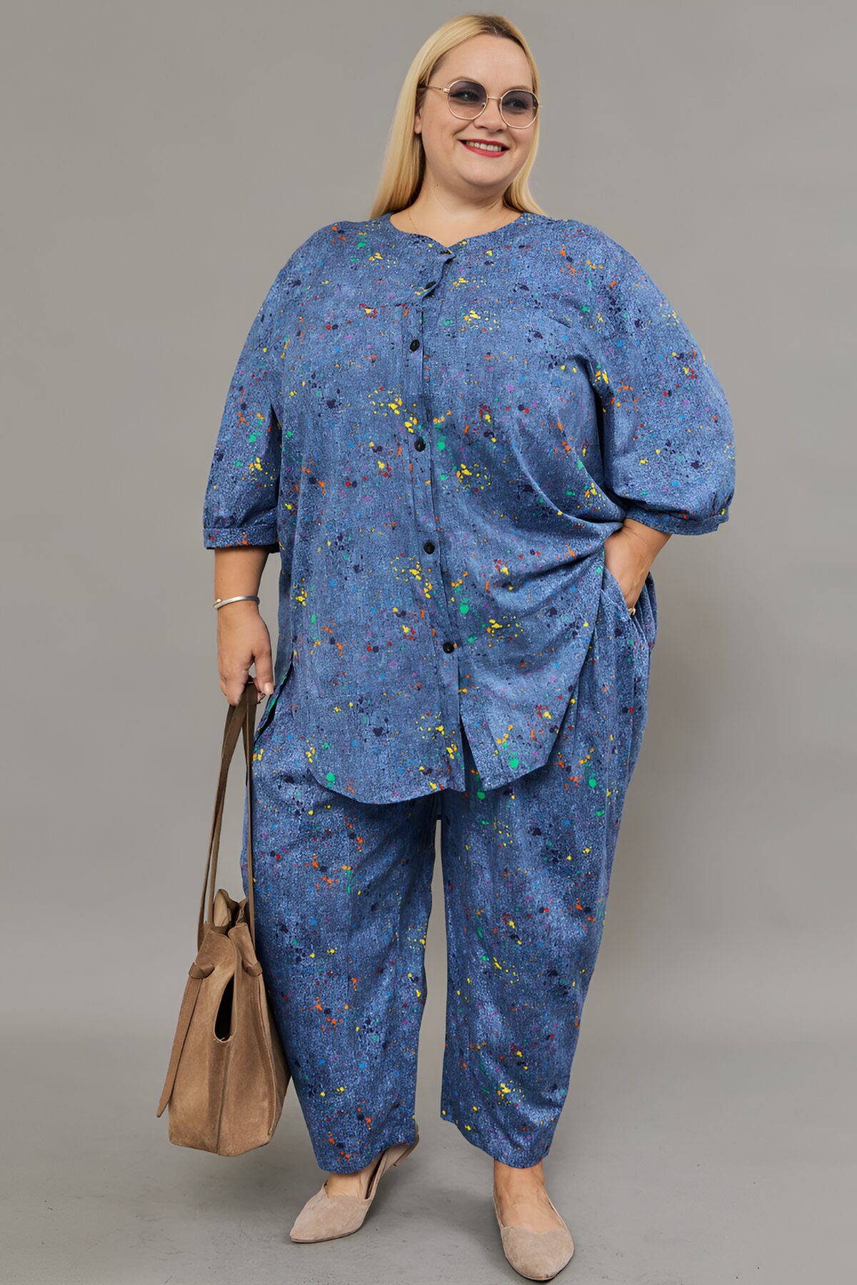 Костюм с брюками К-01 больших размеров НАТАЛИ, голубой