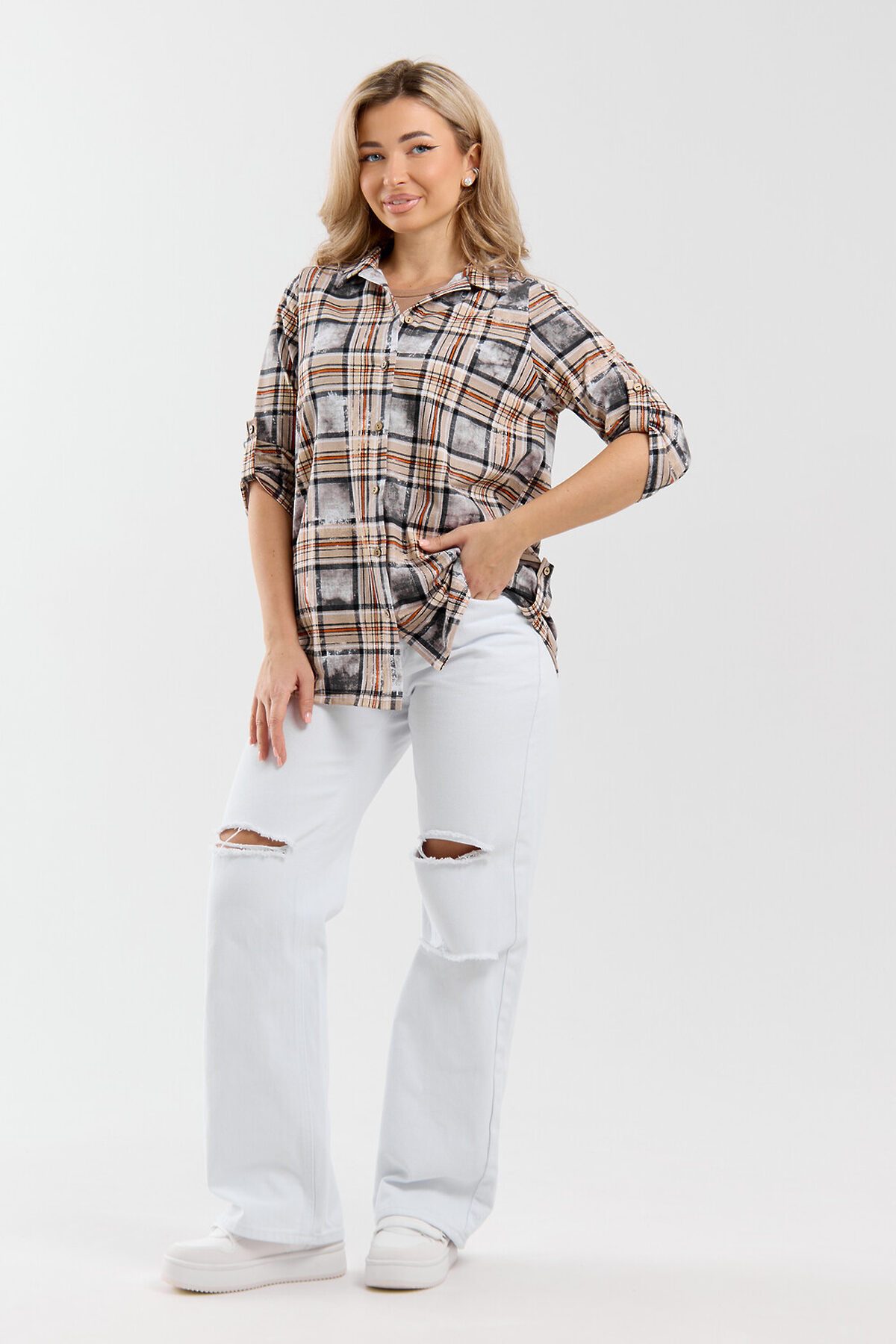 Женская стильная туника - рубашка выполнена из 100% хлопчатобумажного полотна. Новый дизайн и отличное качество делает изделие модным, легким и приятным на ощупь, не сковывает движения, поэтому отлично подойдет как для школы, дома и работы, так и для повседневной носки. Модель дополняет рубашечный воротник, паты и планка с расстёгивающимися пуговицами, делая её более комфортной. Женская свободная рубашка не сковывает движения, поэтому отлично подойдет будущим мамам, беременным женщинам и кормящим. Расстёгивающаяся планка сделает кормление малыша удобным и комфортным, а за счет качественного хлопкового трикотажа еще и безопасным и экологичным. Мы специально разработали рубашку для женщин большого размера. Большие размеры любят и подростки, которые предпочитают вещи оверсайз (oversize). Рубашка женская - это базовая вещь в гардеробе девушки или женщины, является идеальным вариантом для офиса, работы, школы и путешествий. Удлиненную рубашку можно носить дома и в качестве повседневной одежды. Внимание! Замеры длины рукава проводились в застёгнутом виде. В расстёгнутом виде длина рукава добавится на 10 см.