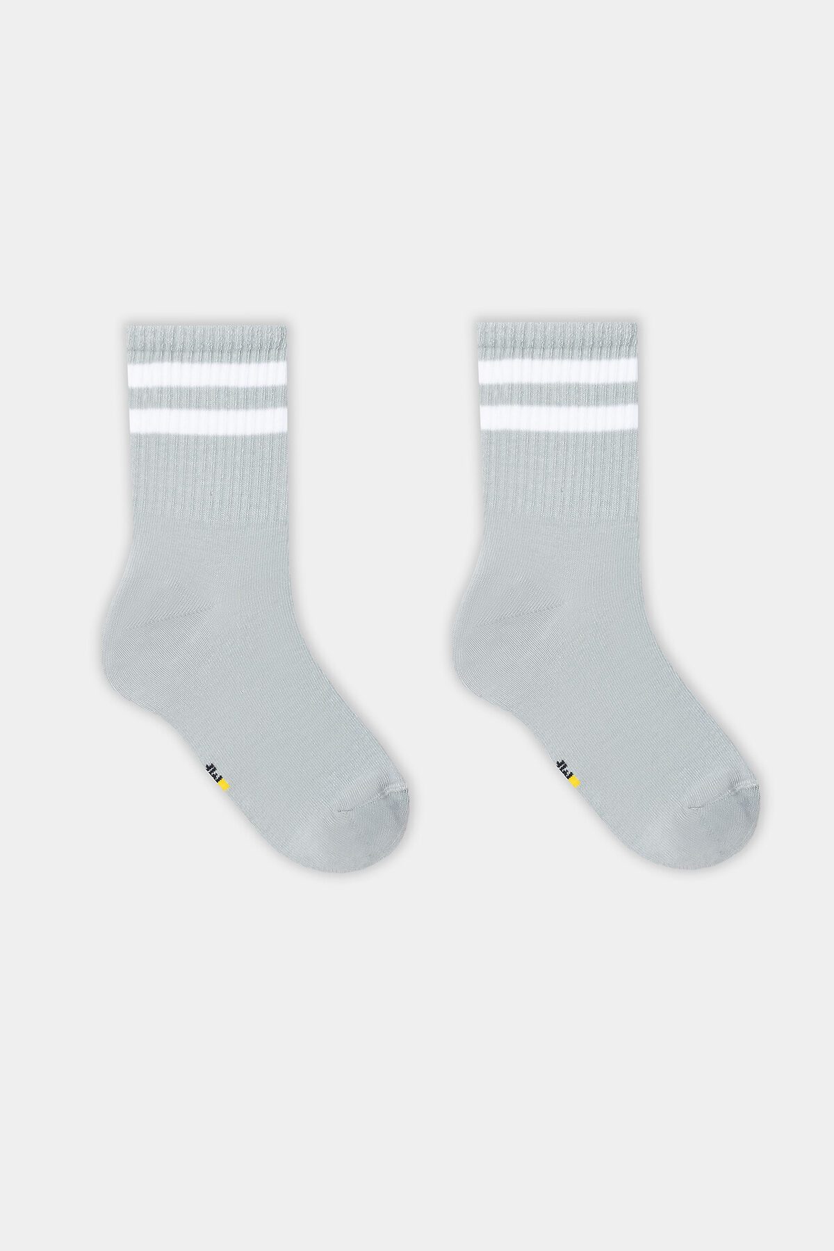рис.2458 Детский носок гладкий с высокой резинкой и рисунком в виде поперечных полосок