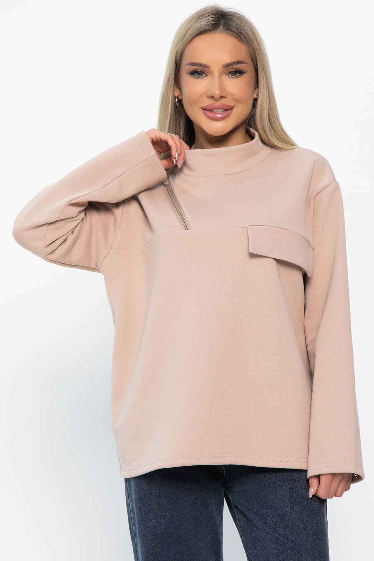 Сочетание стиля и удобства в одном изделии! Этот свитшот выполнен из мягких и приятных на ощупь материалов, что делает его идеальным выбором для прохладных дней. Декоративная молния на передней части придаёт образу неповторимость и оригинальность. Он станет отличным выбором как для повседневной носки, так и для активного отдыха.