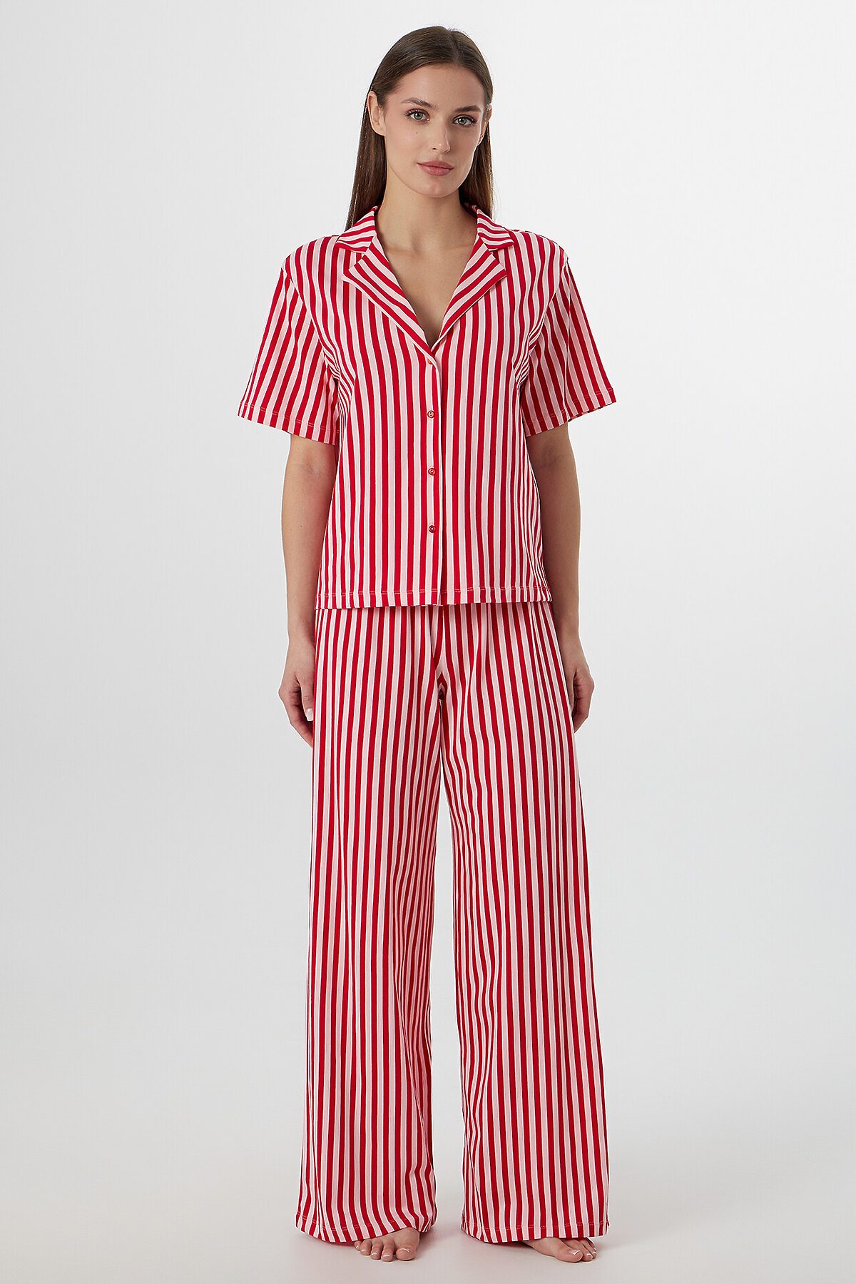 Домашний комплект — нежность и комфорт для вашего отдыха. Набор из свободной рубашки и брюк выполнен из натурального хлопка, который обеспечивает идеальную воздухопроницаемость и мягкость.