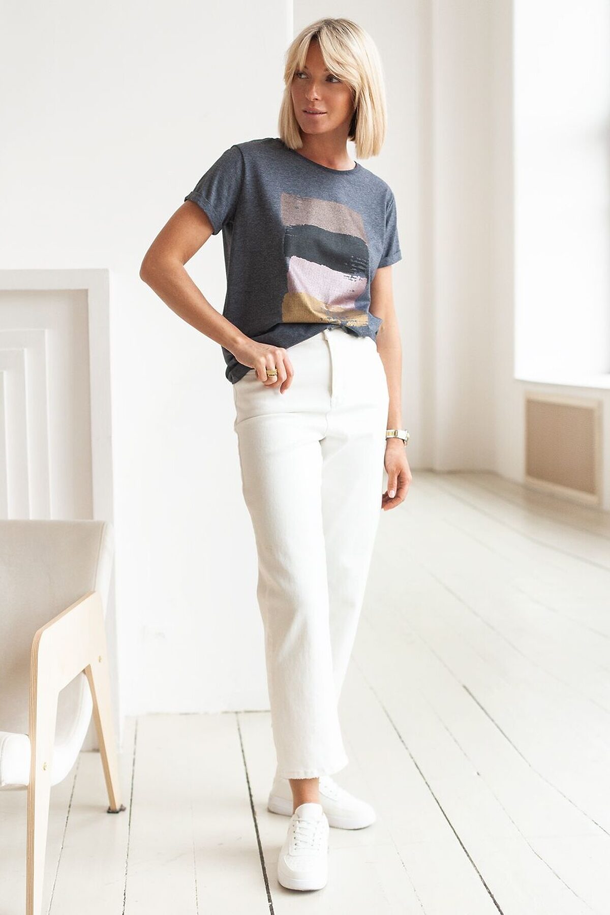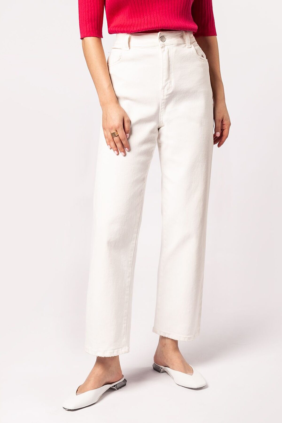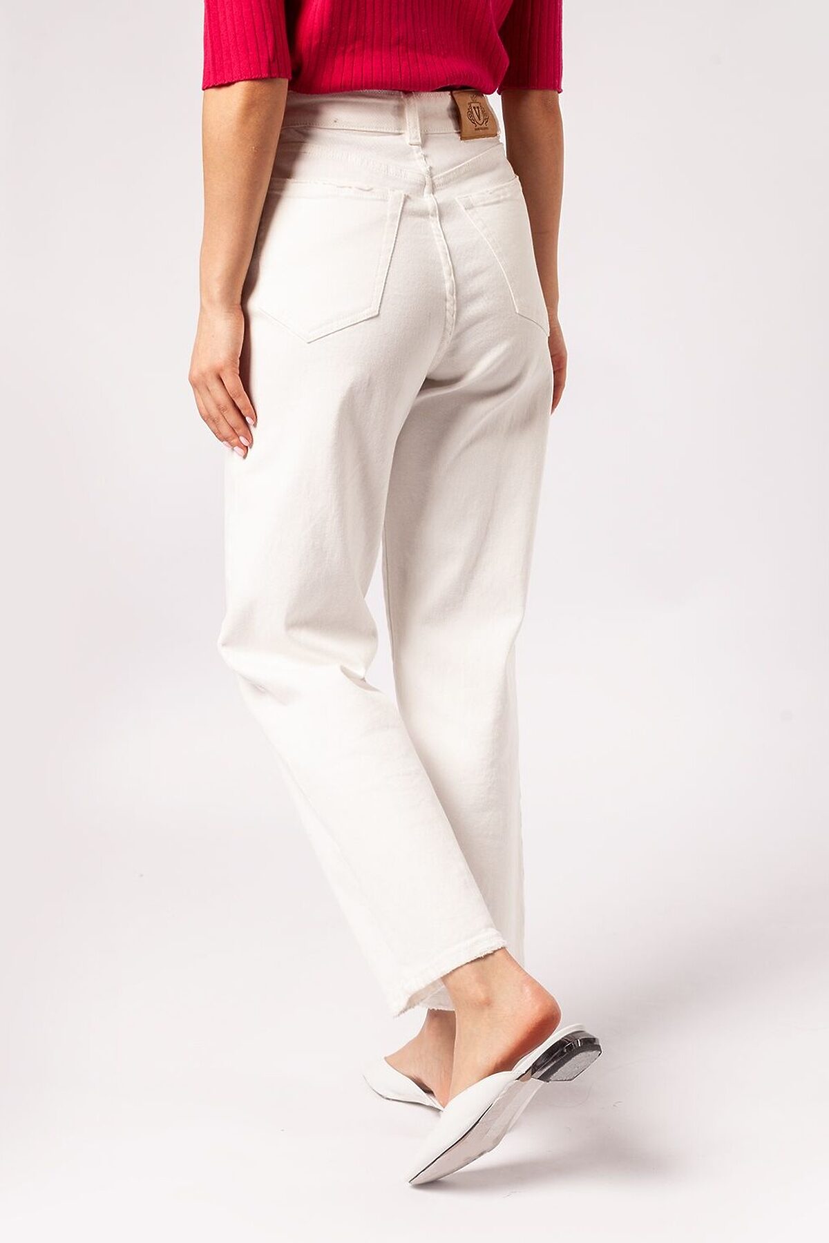 Белые джинсы из плотного прочного хлопка с добавлением нитей эластана. Укороченная модель изящно открывает лодышки. Высокая посадка грамотно подчеркивает силуэт. Данная модель легко и безупречно поможет составить модный образ вместе с трикотажным поло, свободной блузкой взаправку, футболкой или жакетом.