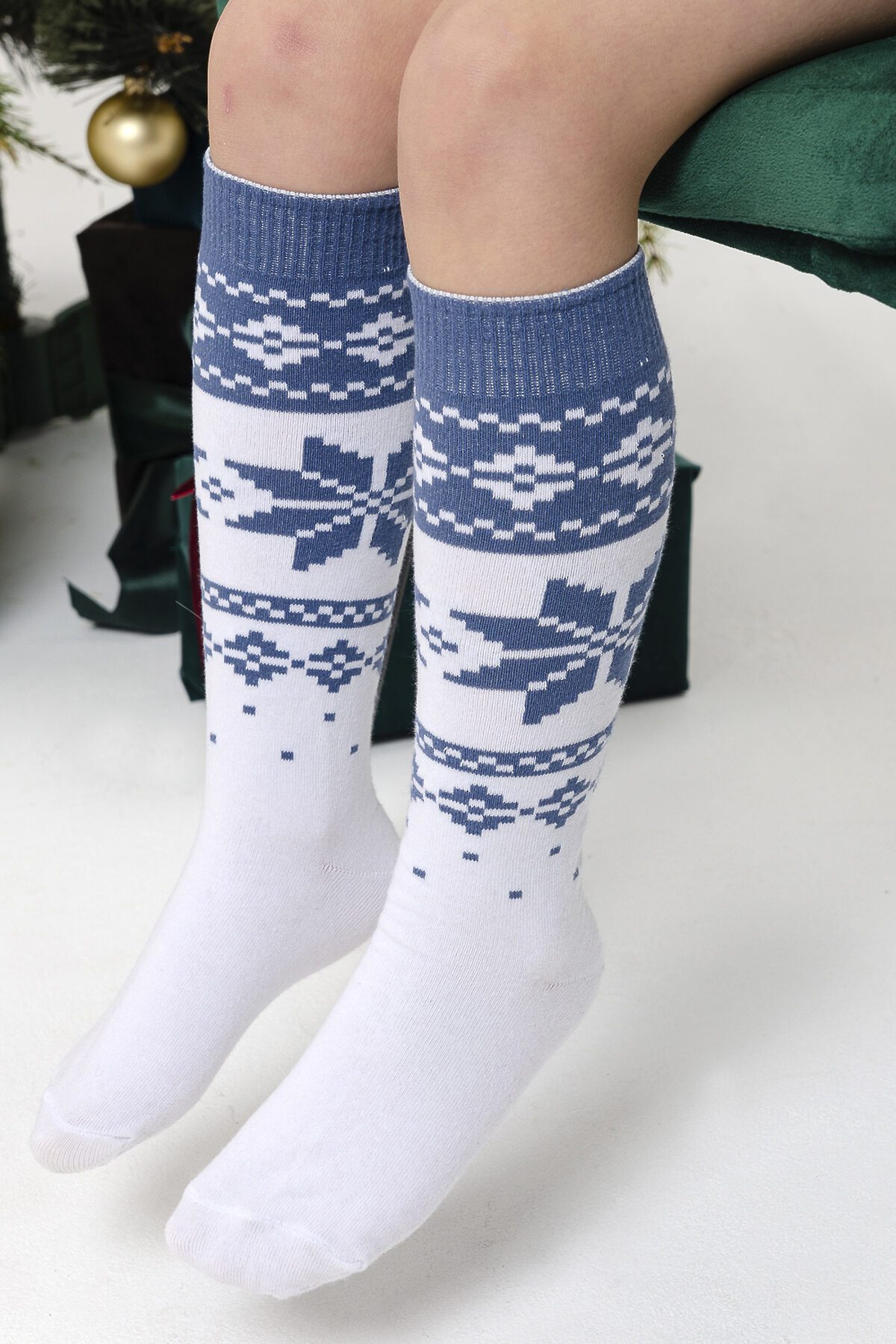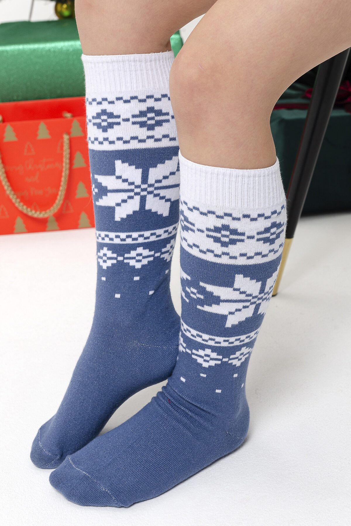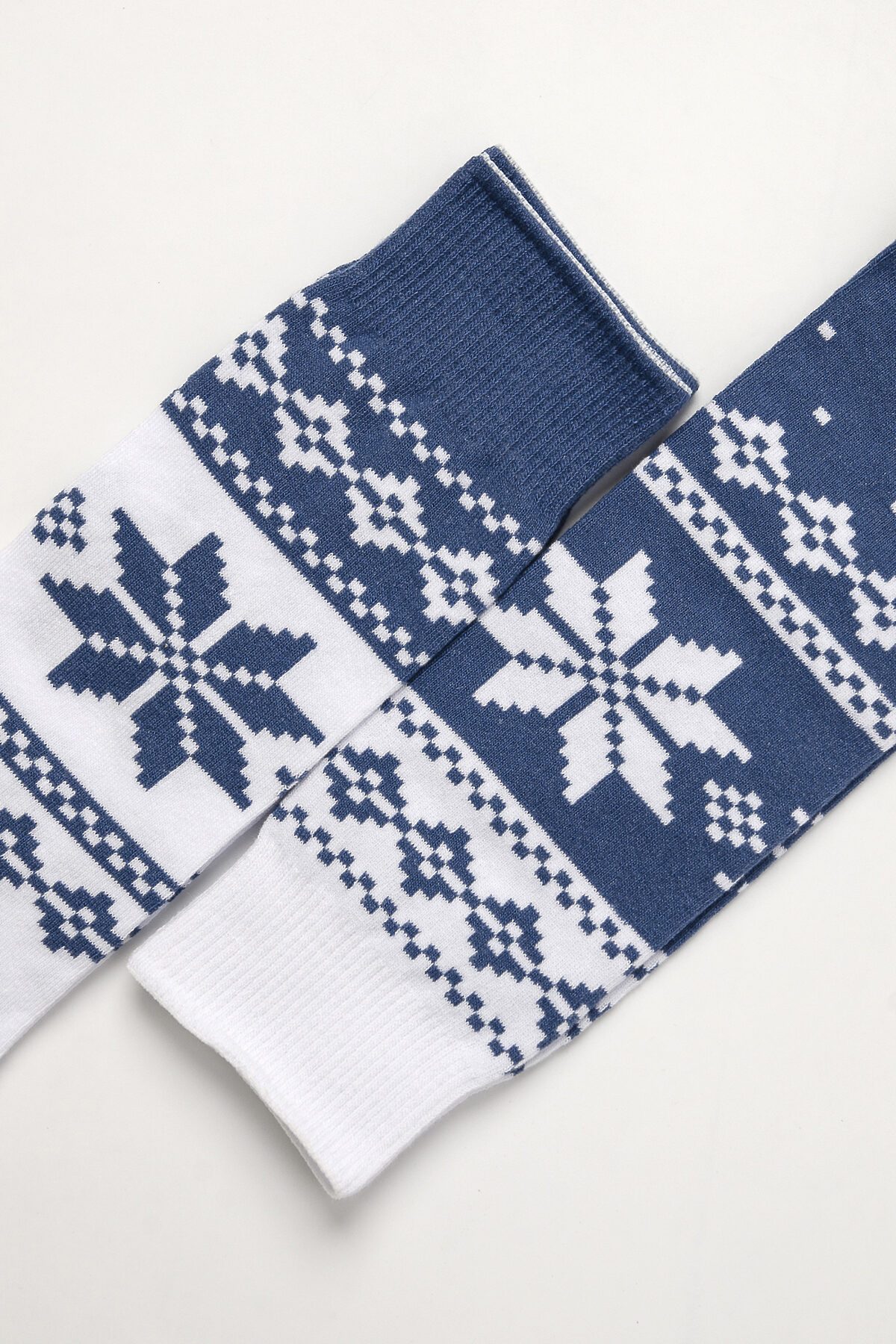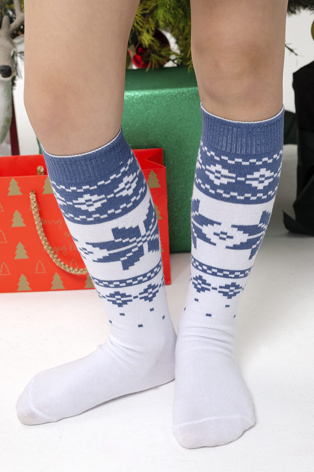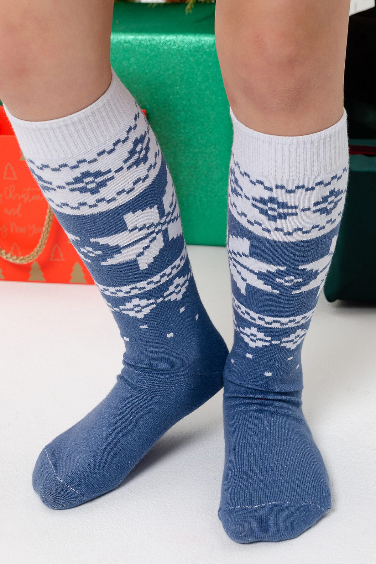Очаровательные хлопковые гольфы отлично подойдут для встречи Нового года в семейном кругу или тематических фотосессий. Носки с новогодним рисунком это отличный сувенир друзьям, детям и коллегам. Благодаря удобной упаковке, можно подарить каждую пару отдельно. Новогодний принт на носках задает веселое настроение и притягивает взгляды окружающих. Высокое качество нитей сохраняет форму и цвет после стирки, а также препятствует образованию катышек. Такой новогодний подарок будет приятно получить и подарить! В набор входят 2 пары разных гольфов определенной расцветки на выбор - синей или серой.