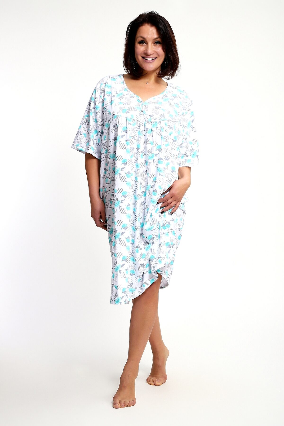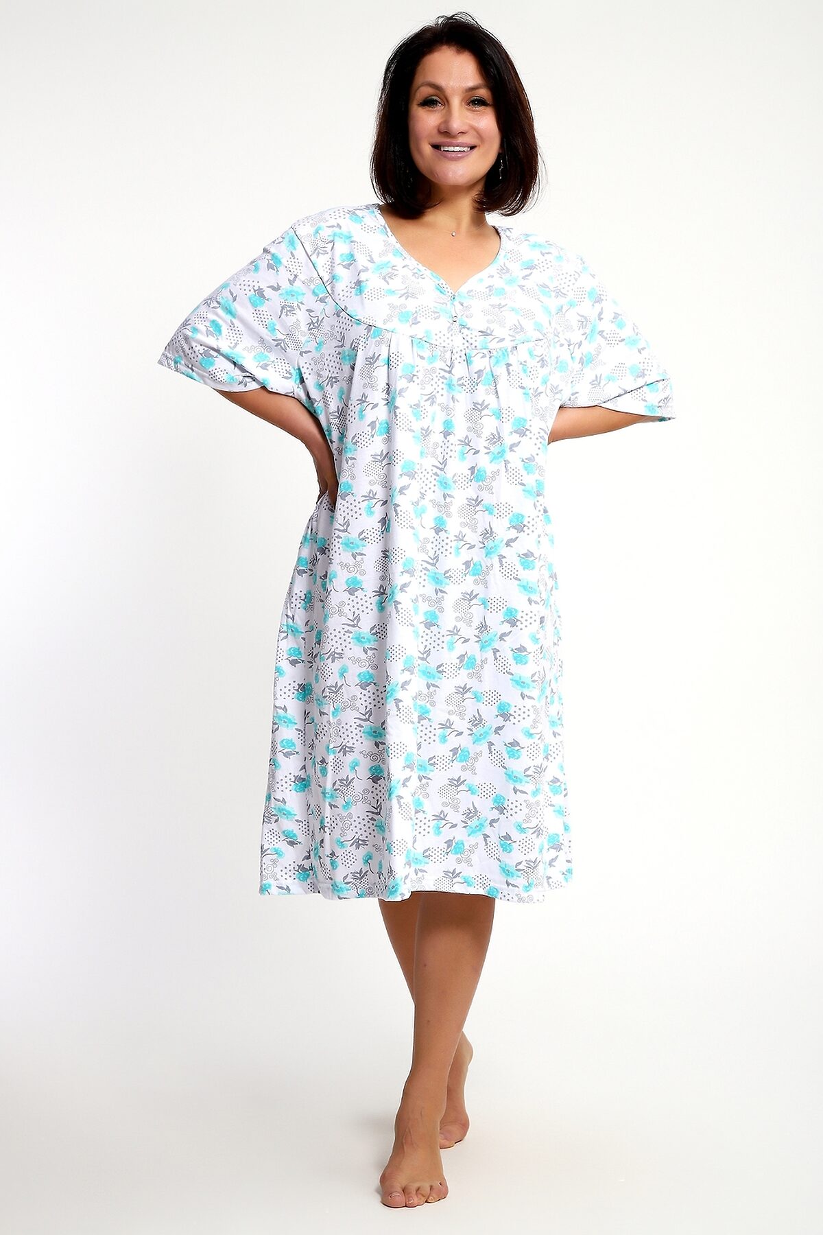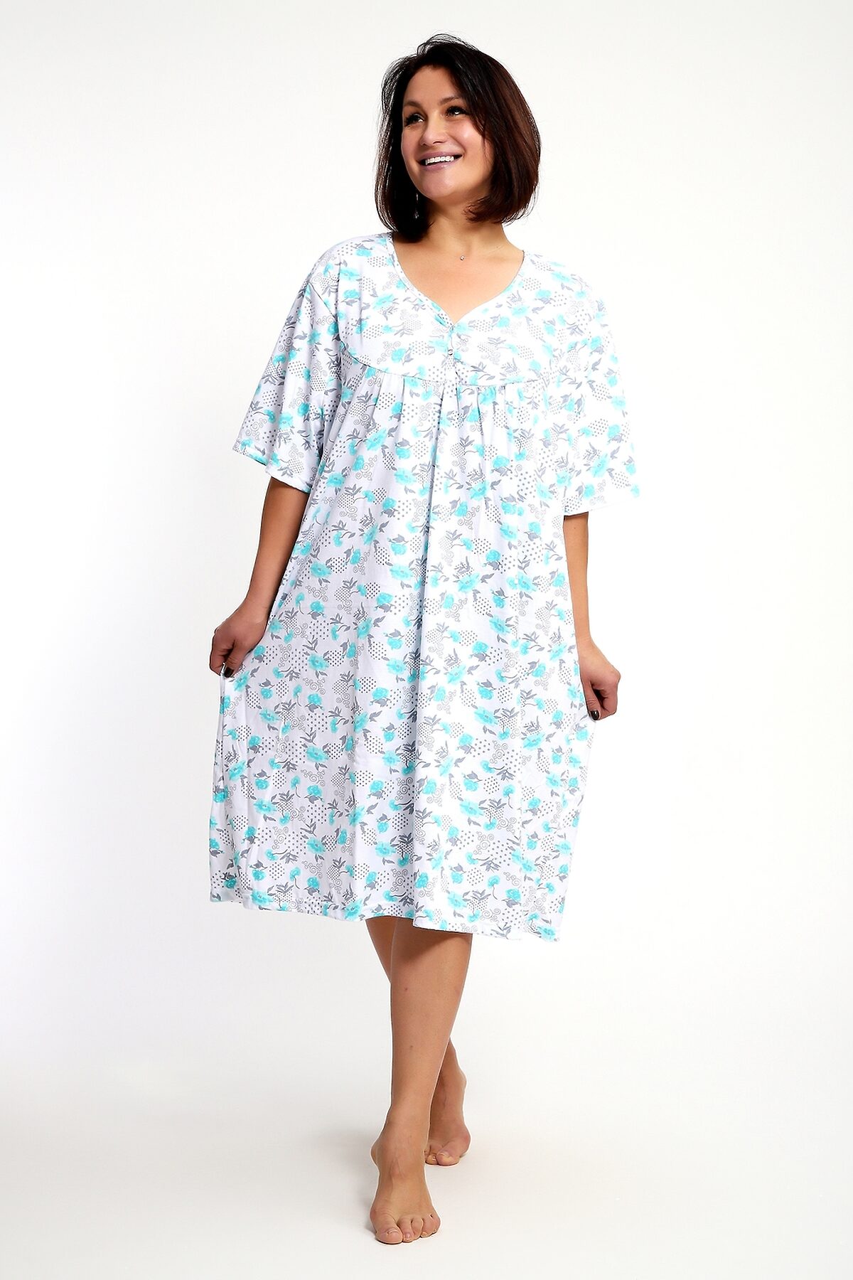 Сорочка женская с рукавом и кнопками. Данная модель выполнена из трикотажного полотна кулирка ( хлопок 100%). У данной модели полоска и спинка отрезная . Свободного покроя, не стесняет движения.