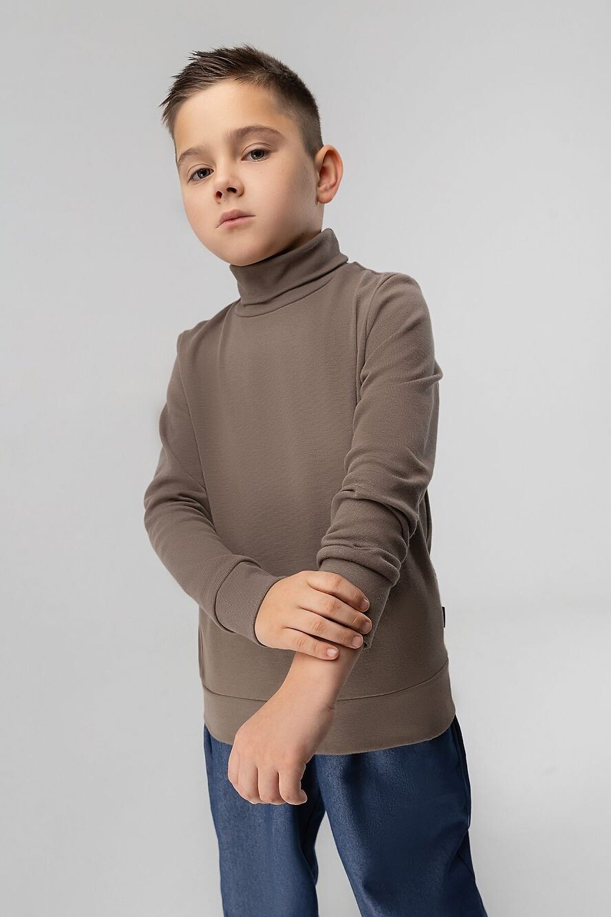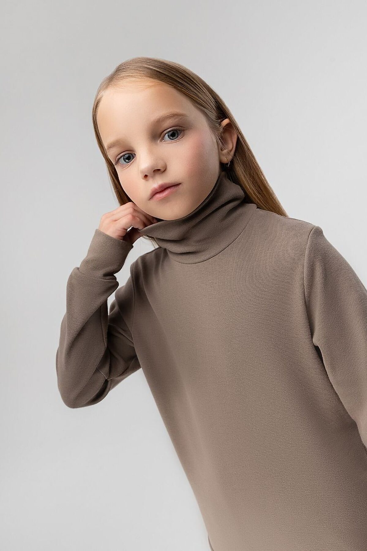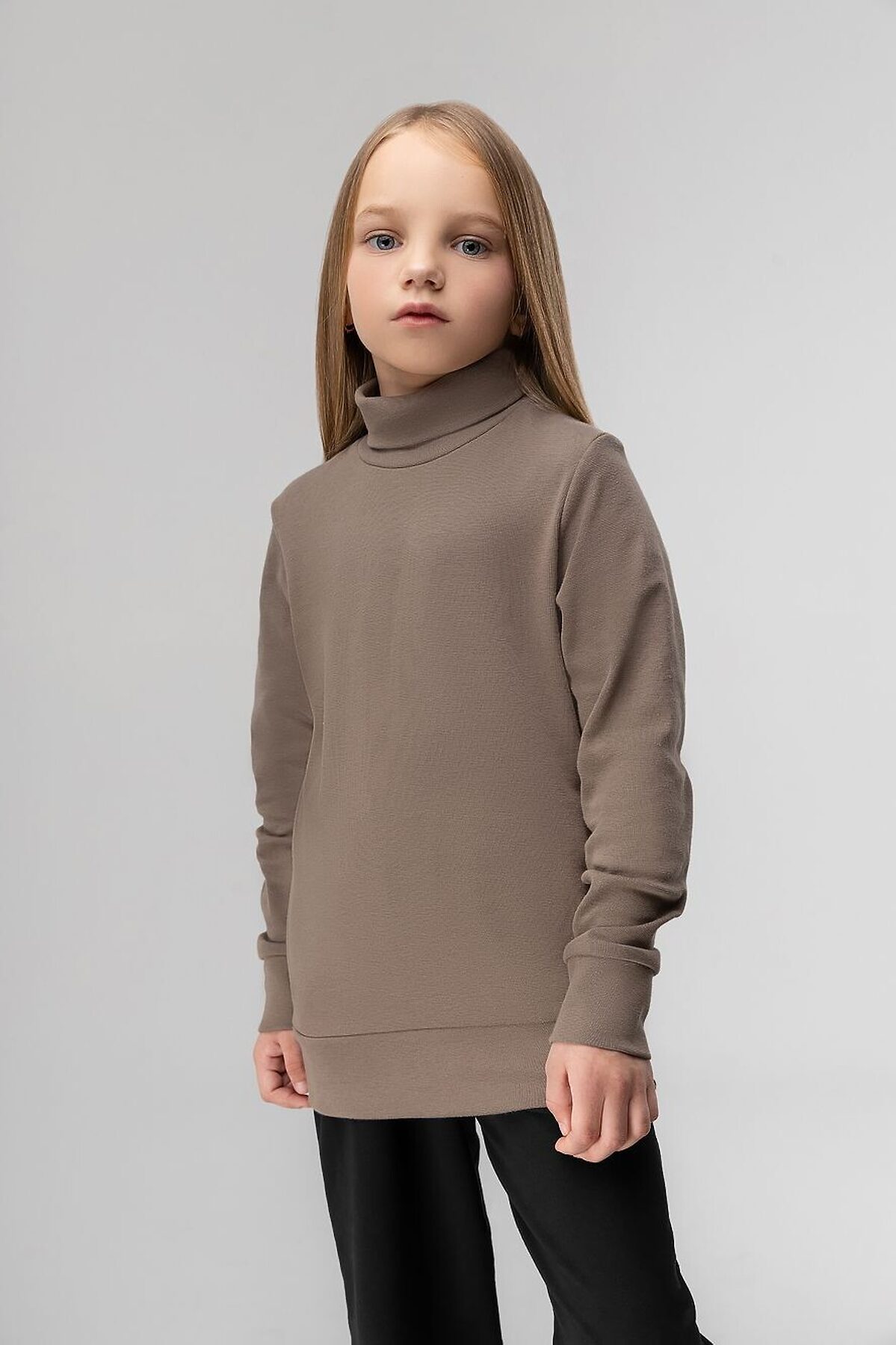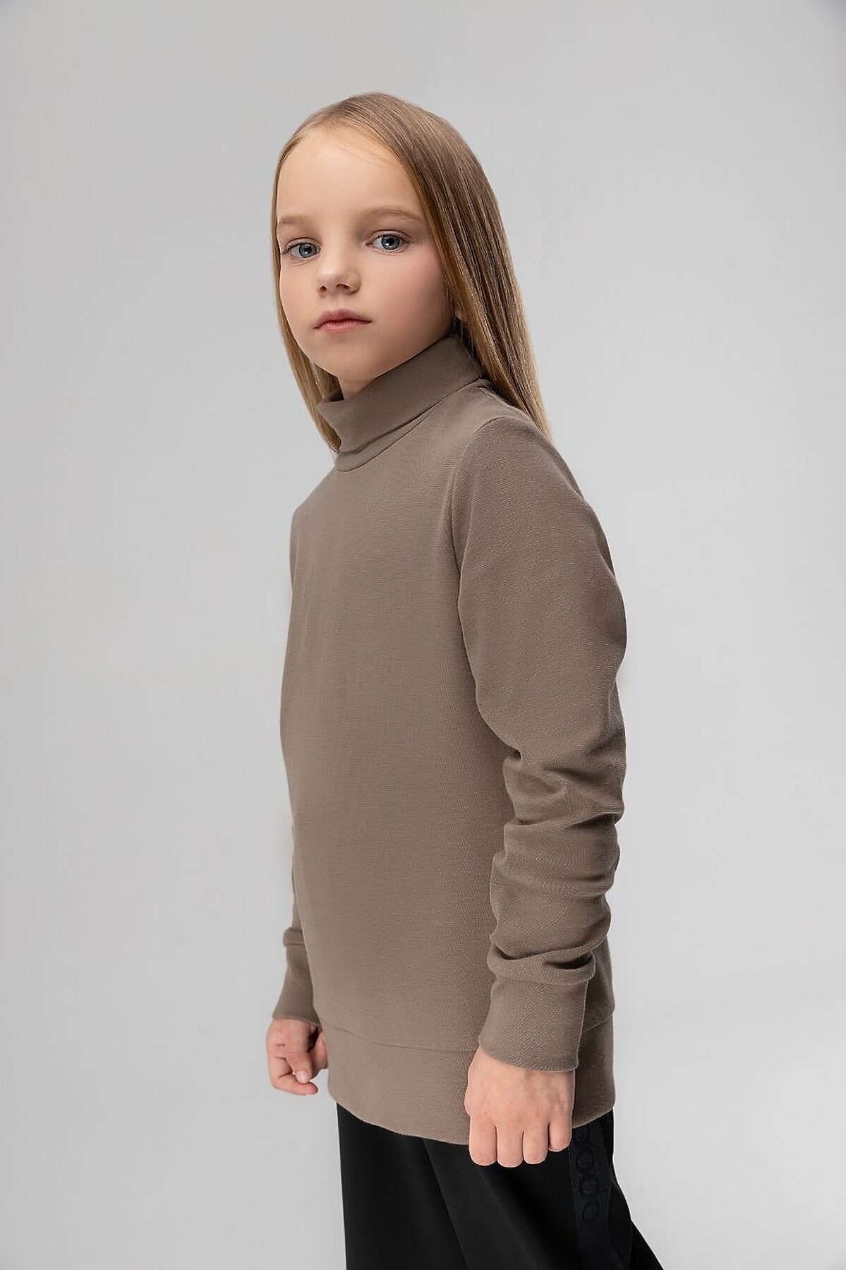 Водолазка детская. Детали: полуприлегающий покрой, рукава на манжетах, воротник-стойка. Состав: рибана 92% хлопок 8% лайкра