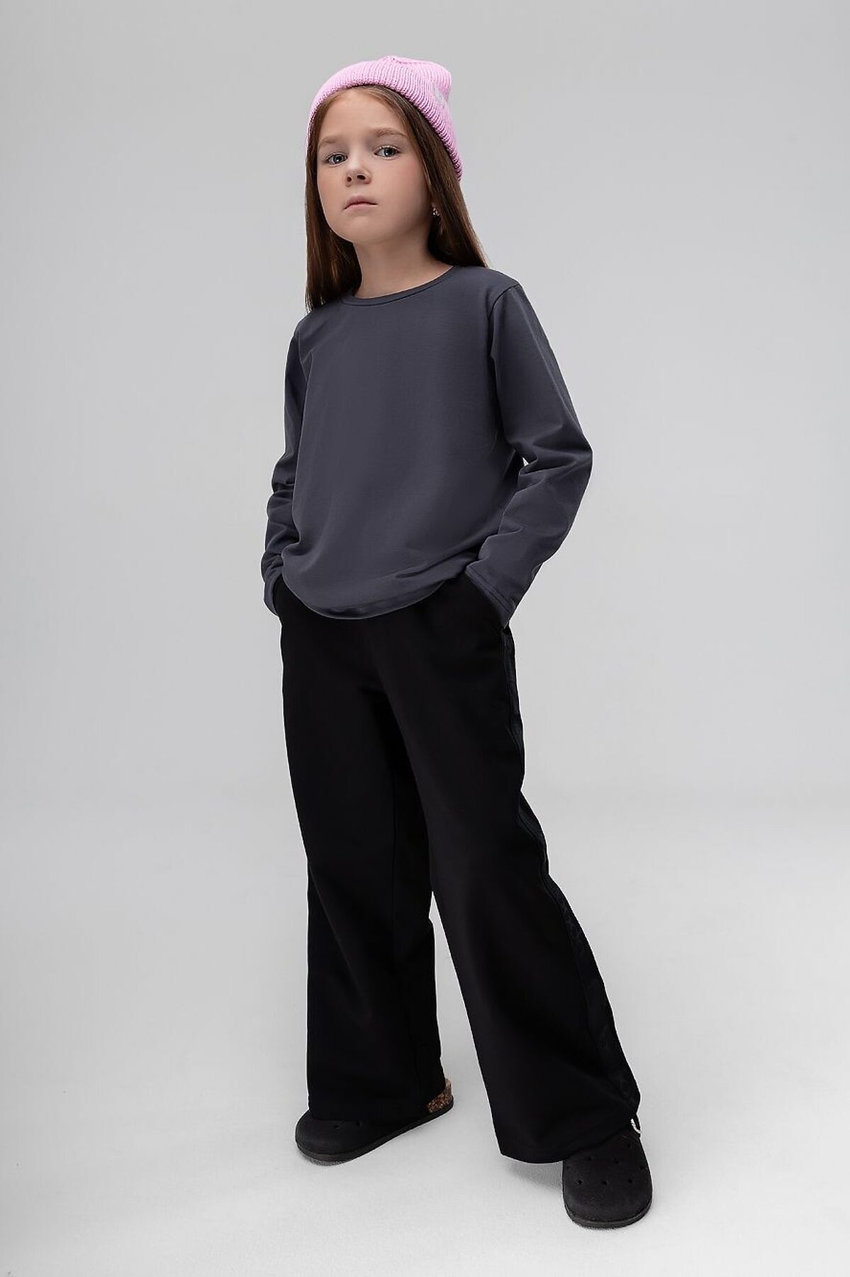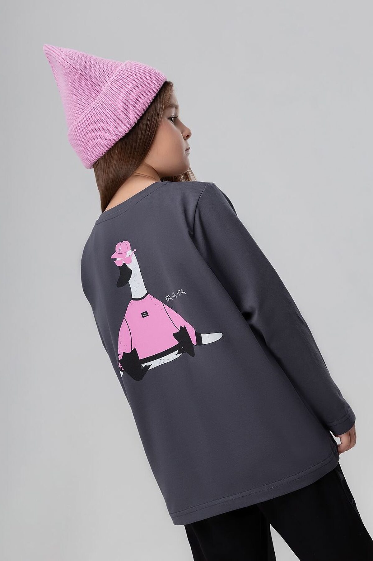 Лонгслив для детей дошкольного возраста. Лонгслив свободного силуэта с втачным длинным рукавом. Горловина футболки округлой формы. Низ изделия прямой.