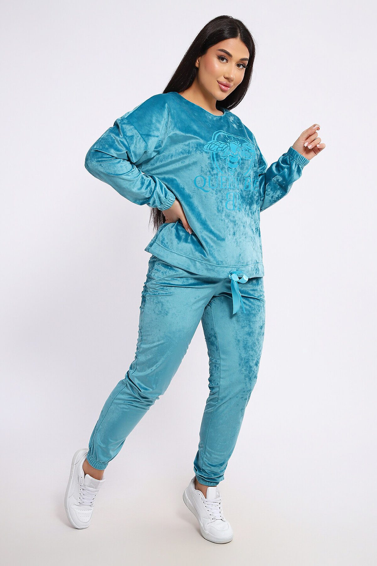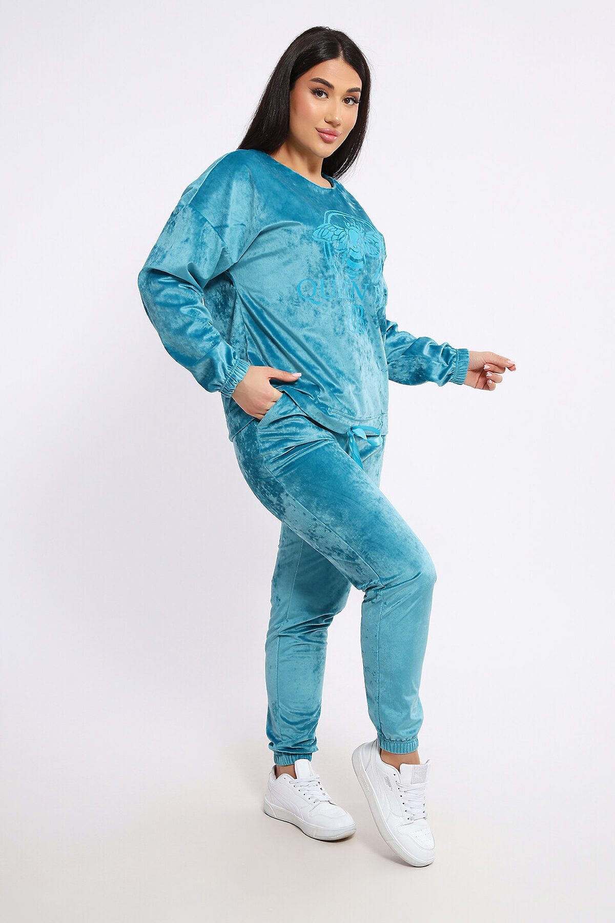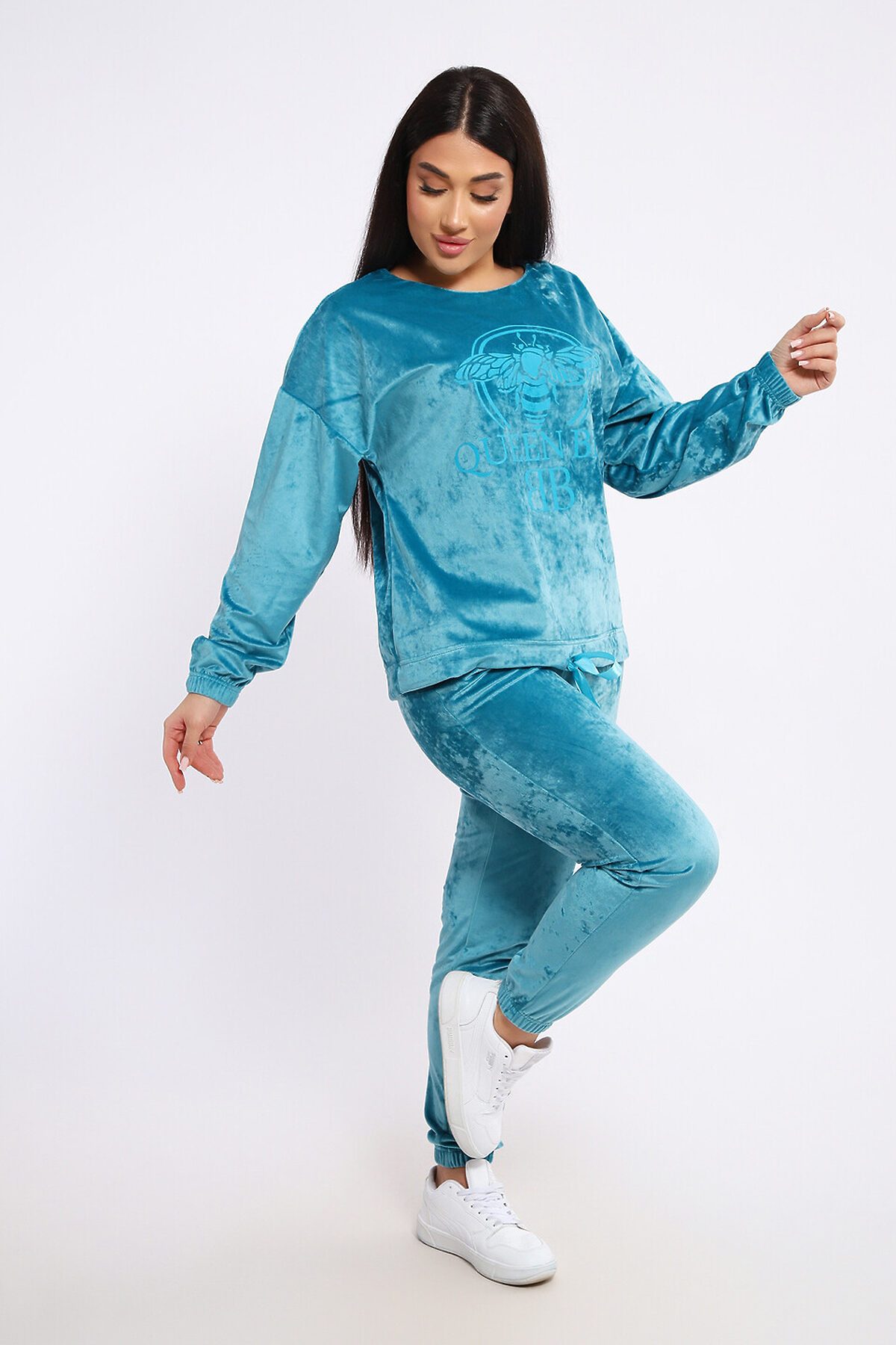 Костюм с брюками велюровый 635П НАТАЛИ, бирюзовый