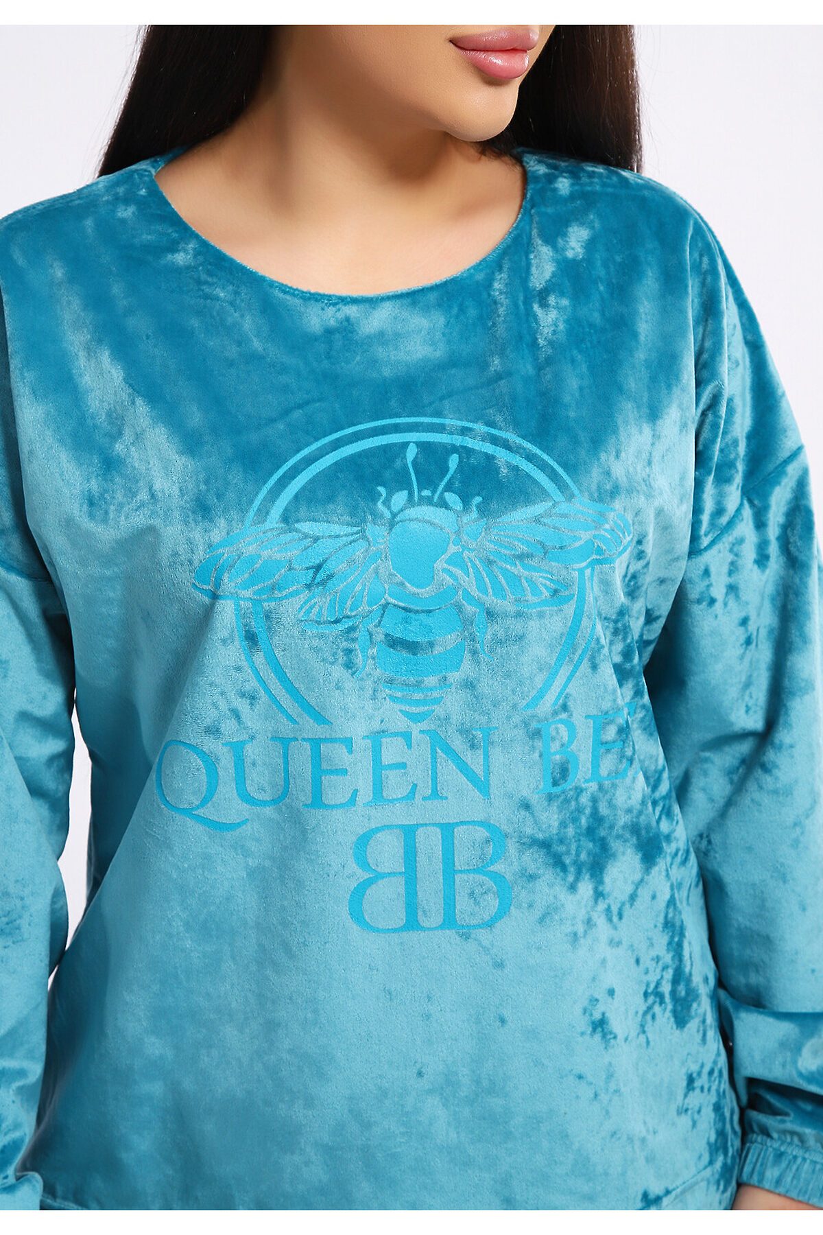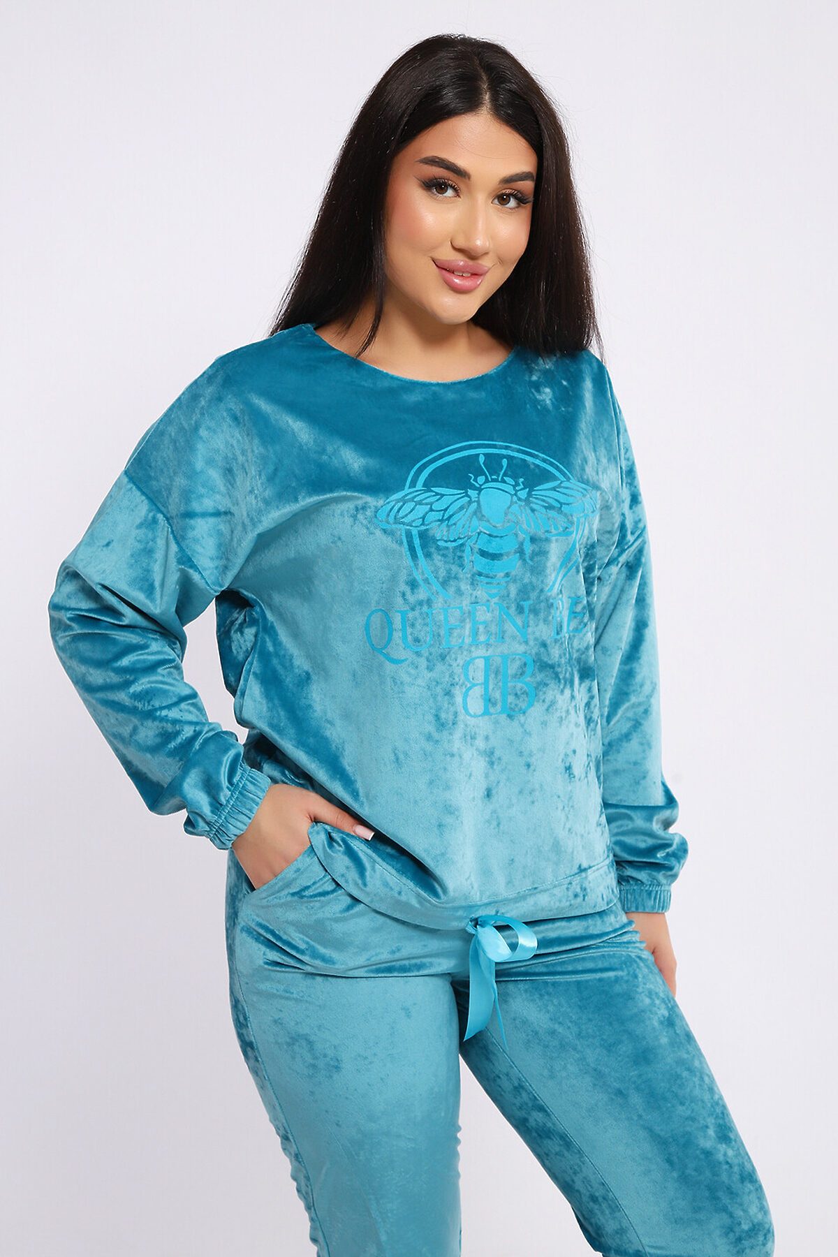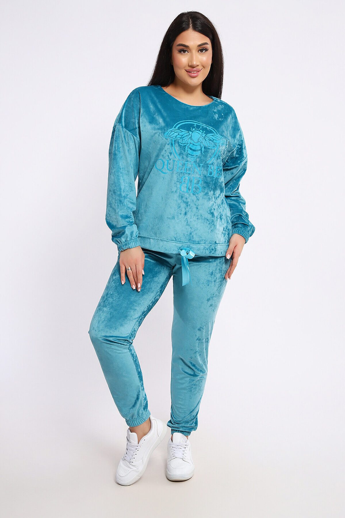 Костюм с брюками велюровый 635П НАТАЛИ, бирюзовый