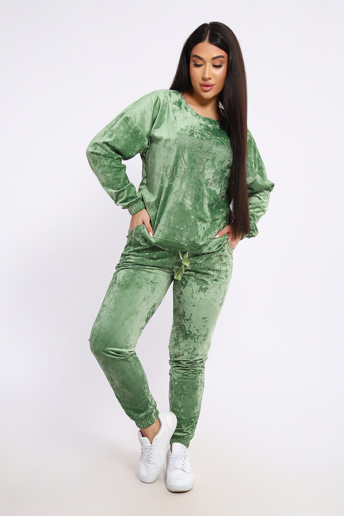 Костюм с брюками велюровый 635П НАТАЛИ, оливковый