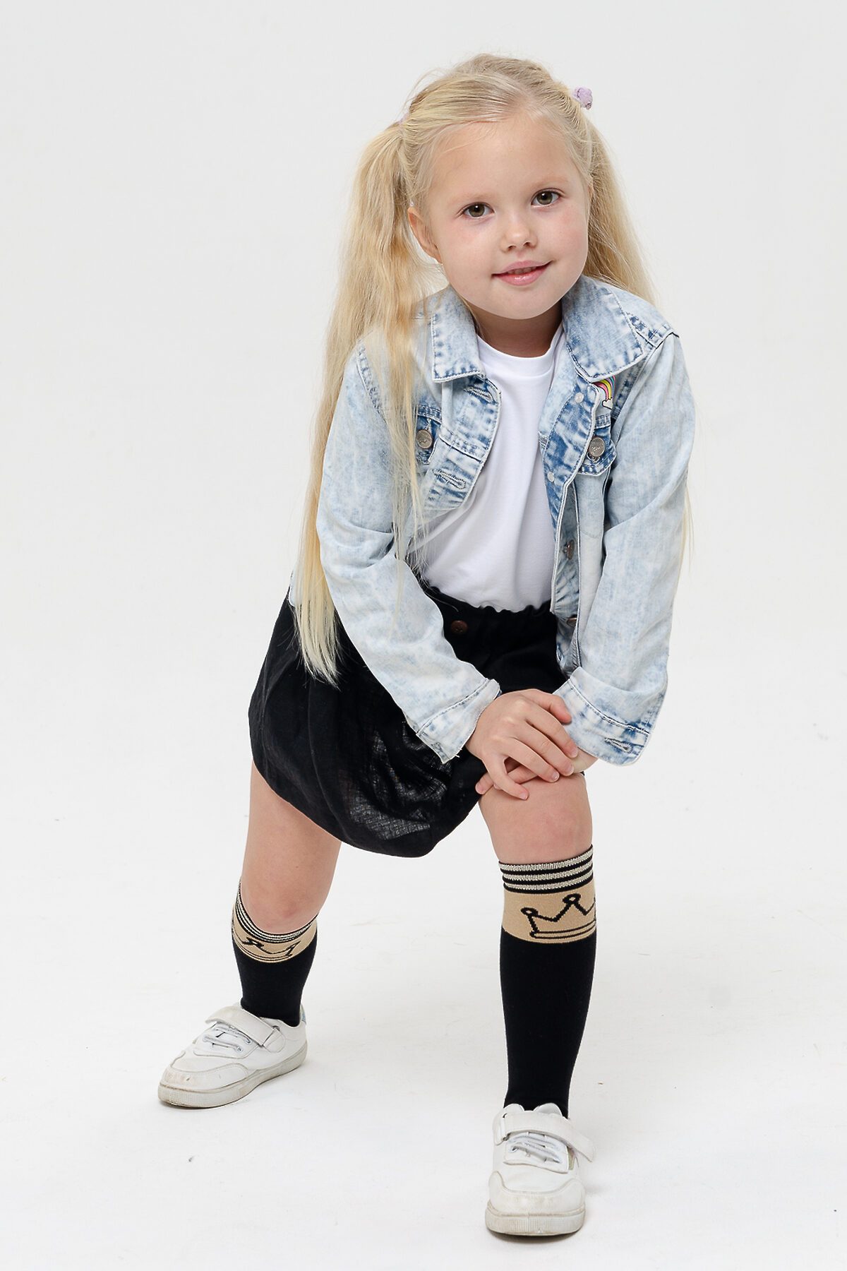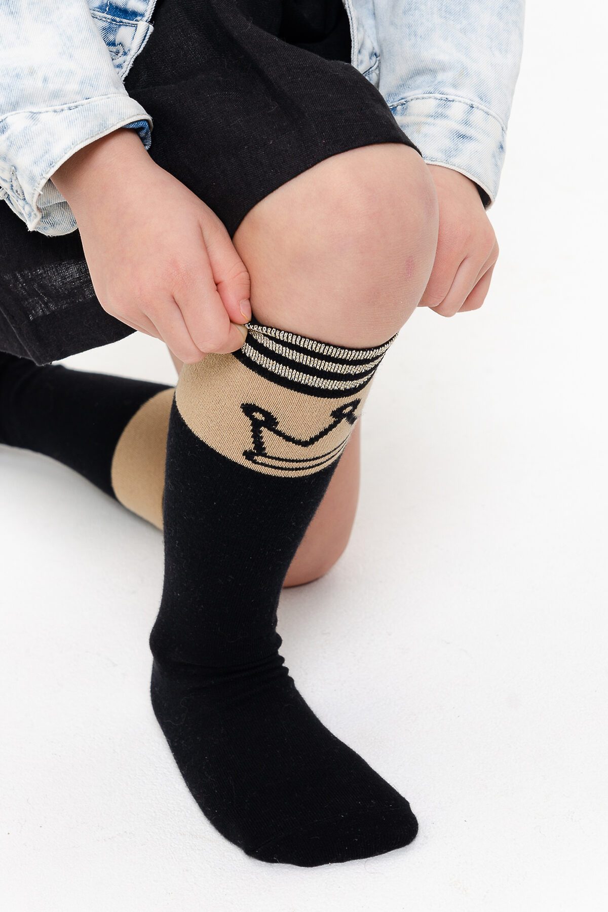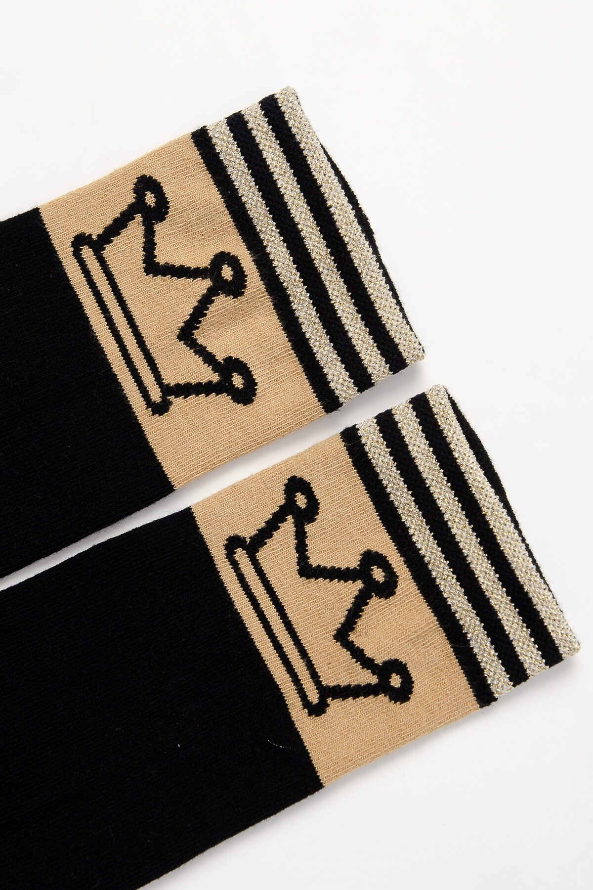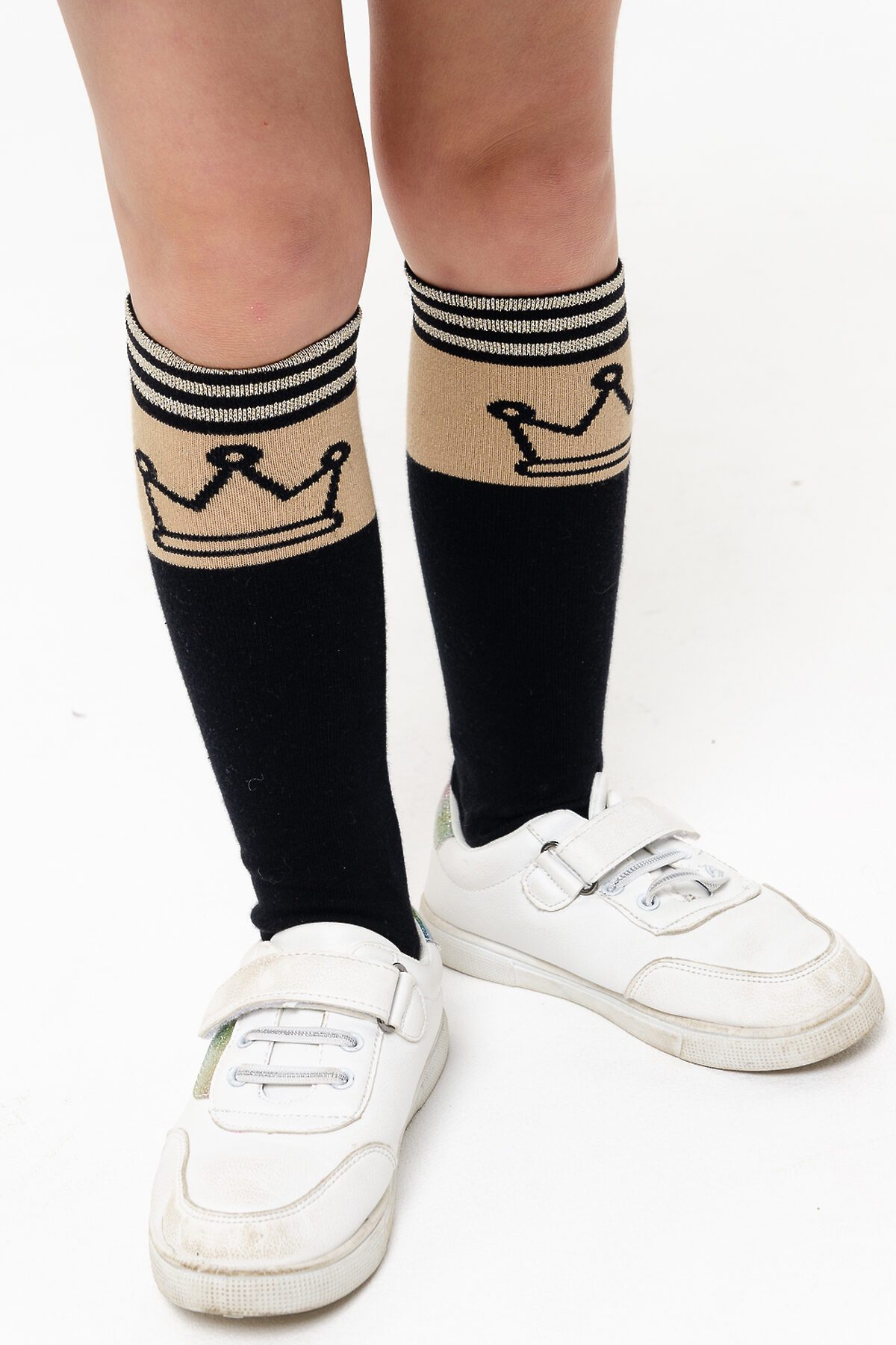 Стильные подростковые гольфы с лаконичным рисунком в виде короны и тонких полос с люрексом. Нарядные гольфы подойдут как для праздника, так и на каждый день.