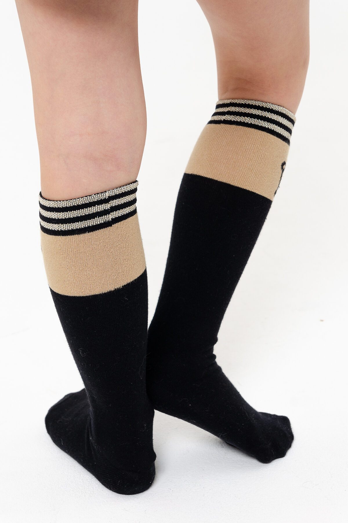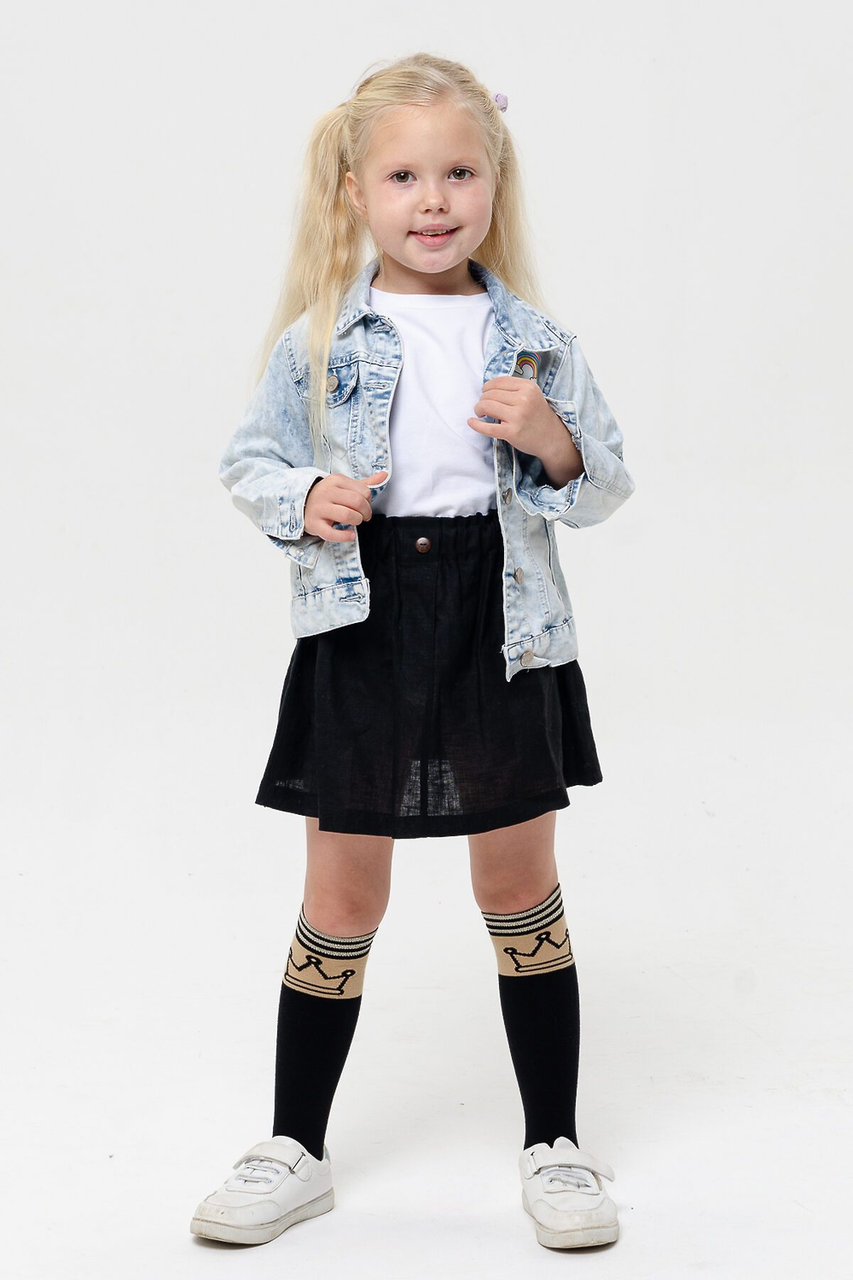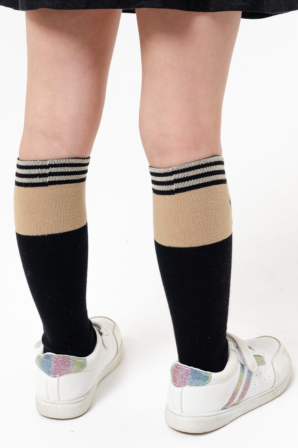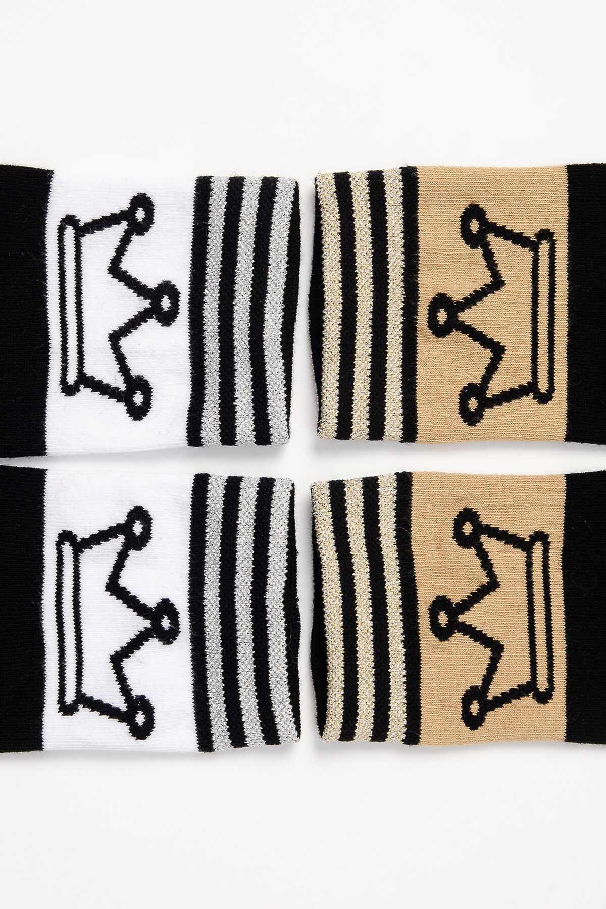 Стильные подростковые гольфы с лаконичным рисунком в виде короны и тонких полос с люрексом. Нарядные гольфы подойдут как для праздника, так и на каждый день.