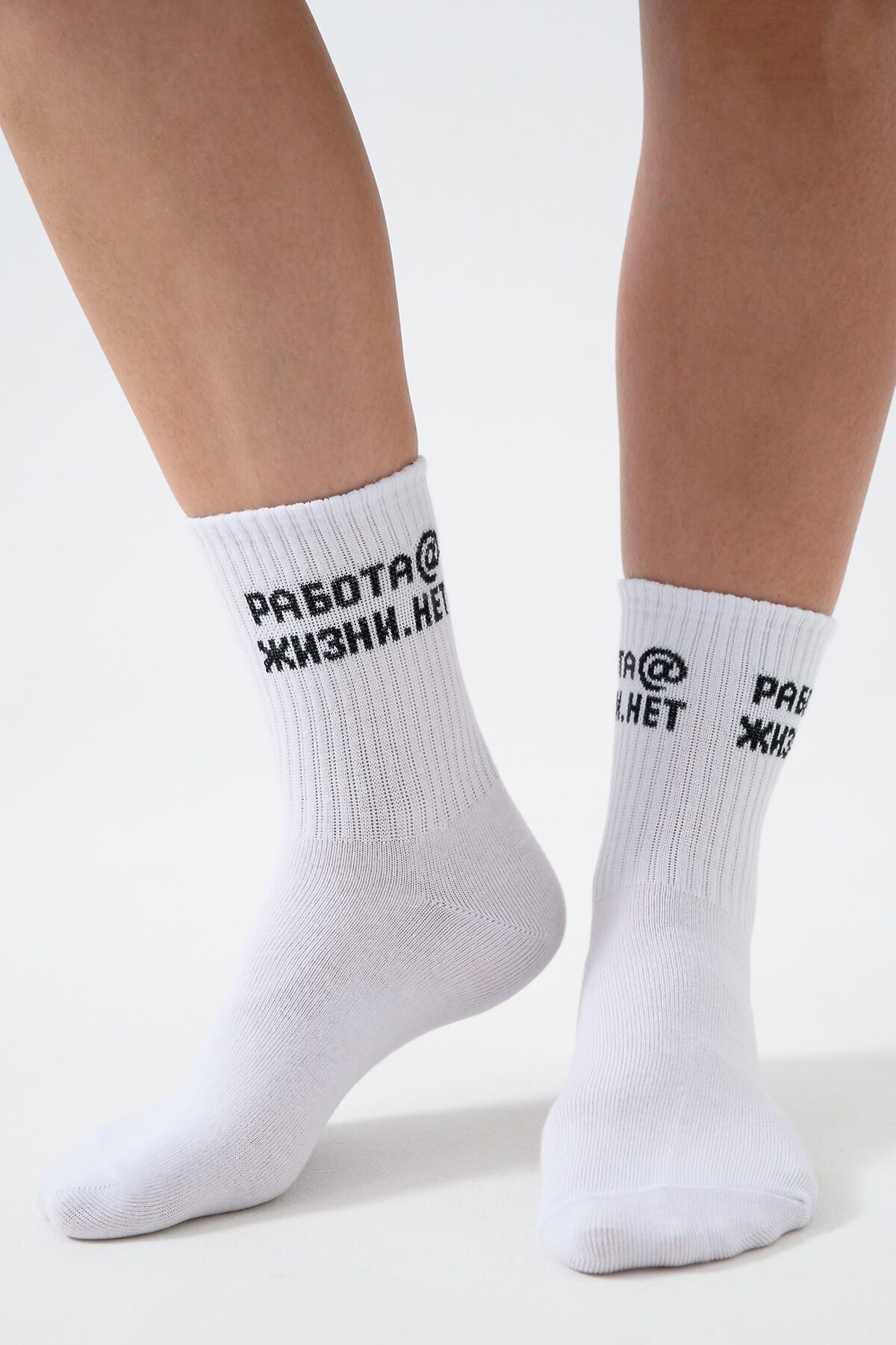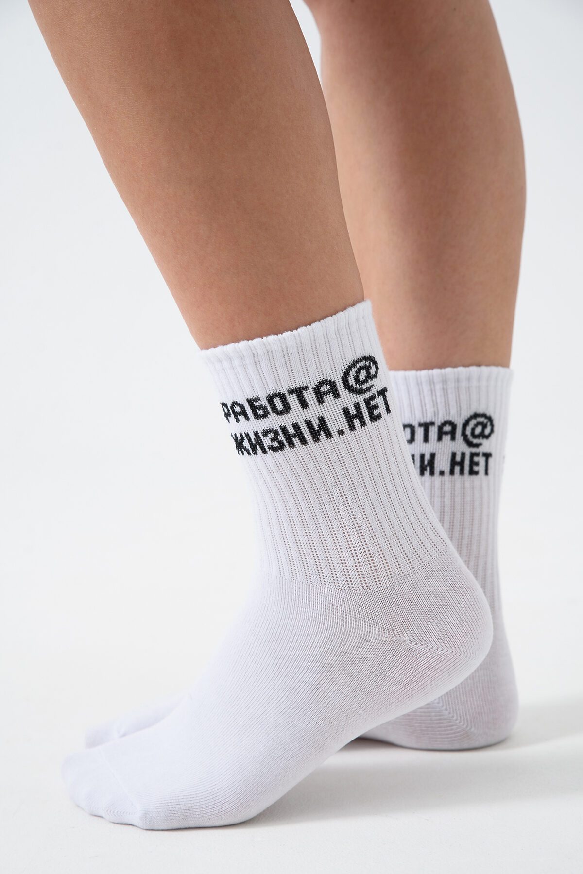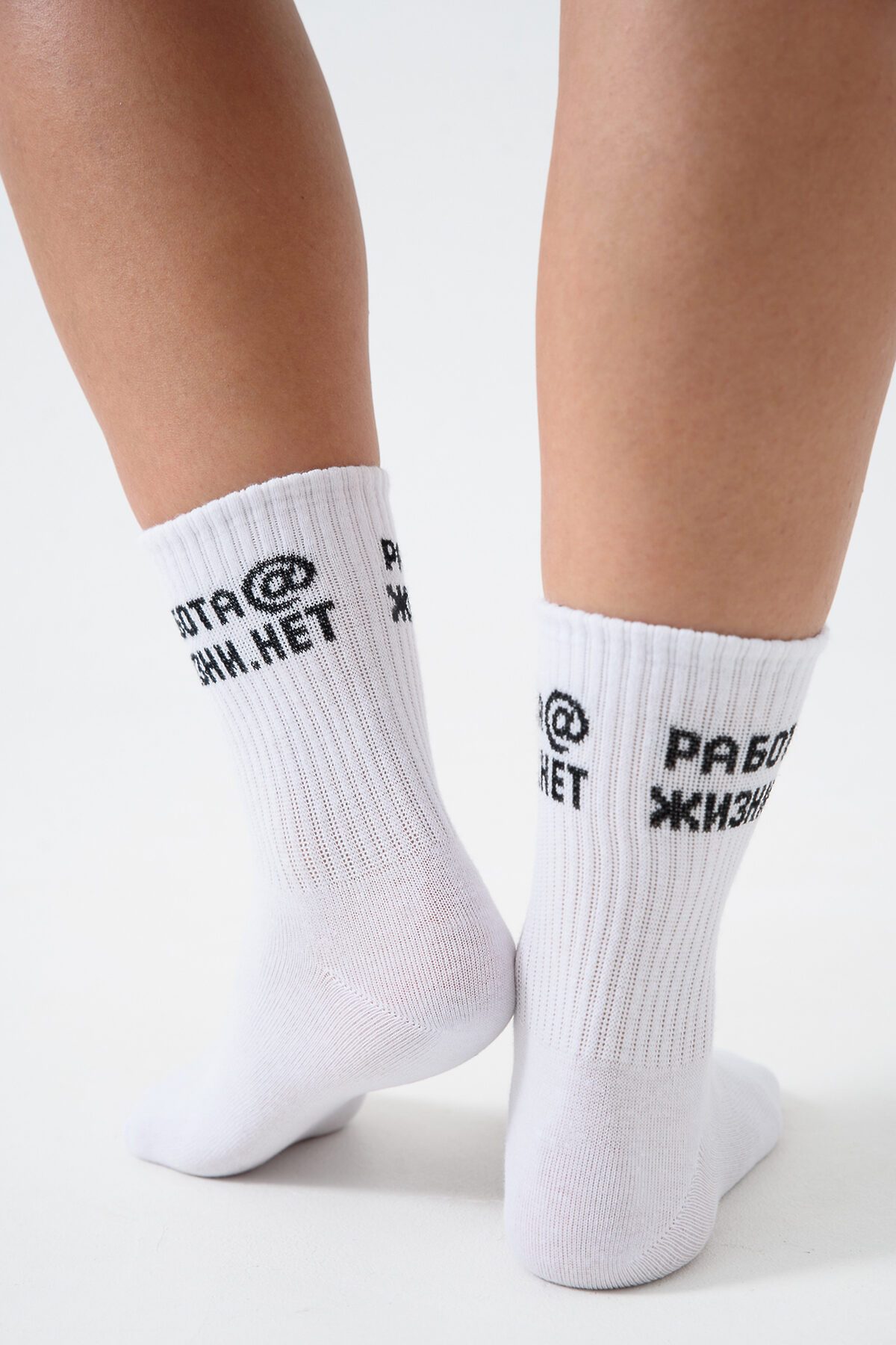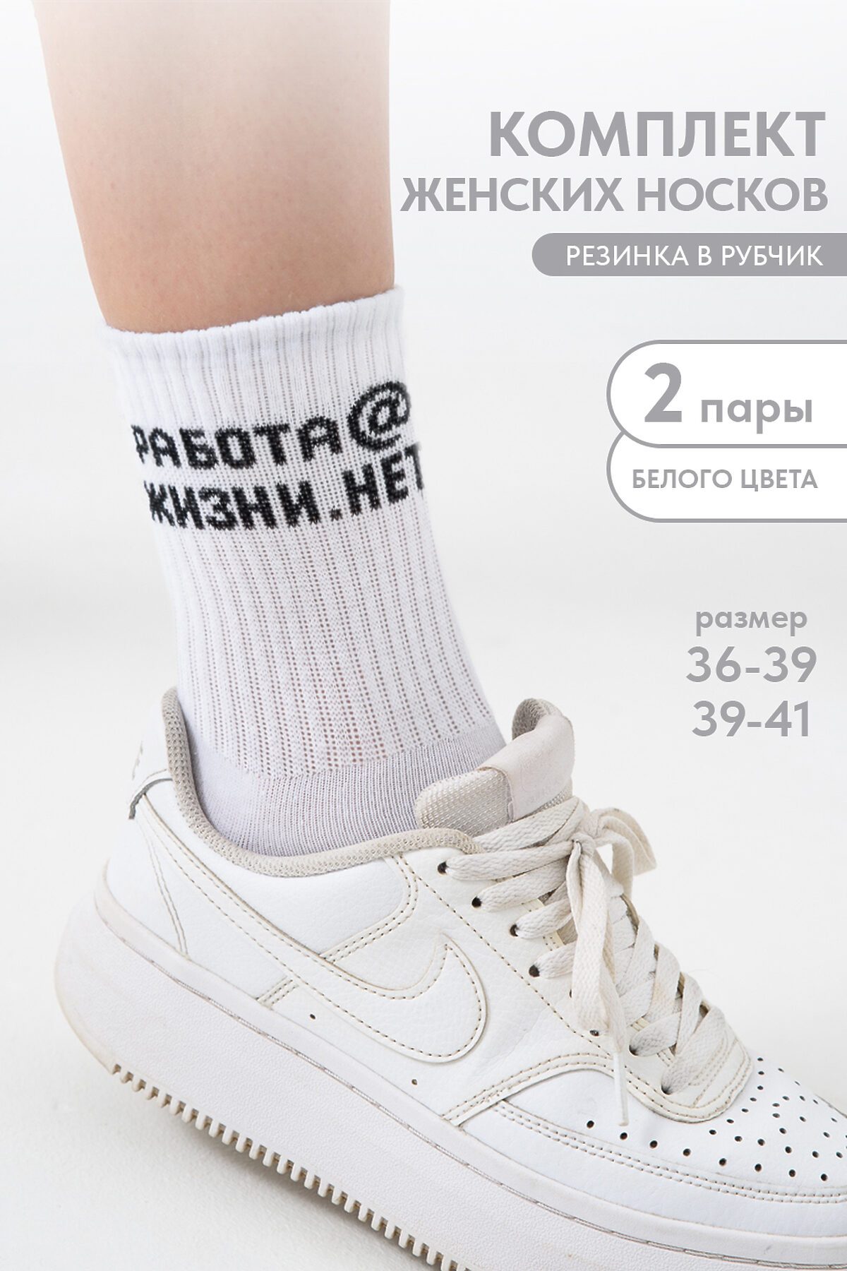 Комплект женских носков 2 пары. Широкая резинка. По верхней части носка надпись Работ@ жизни.нет