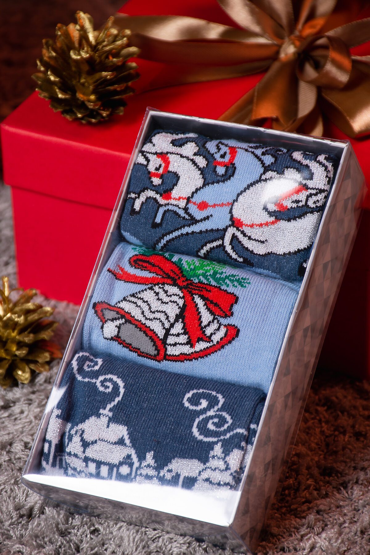 Новогодний подарочный набор женских носков с изображением тройки лошадей, зимнего пейзажа и новогодних колокольчиков. В комплекте 3 пары в красивой картонной упаковке Мы не можем гарантировать сохранность подарочной упаковки при транспортировке. Во избежание порчи товара Вы можете воспользоваться услугой жесткой упаковки или обрешётки в транспортной компании