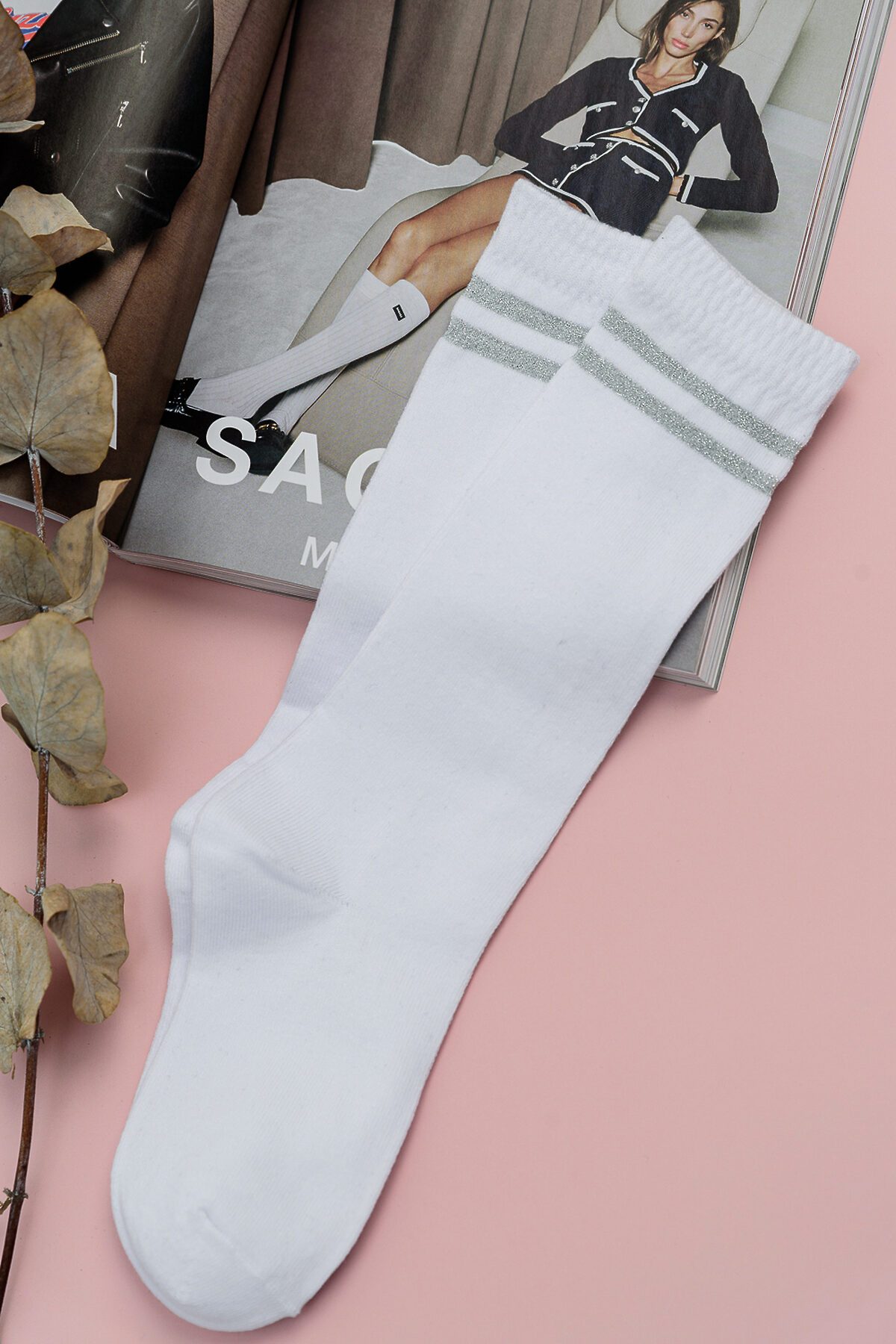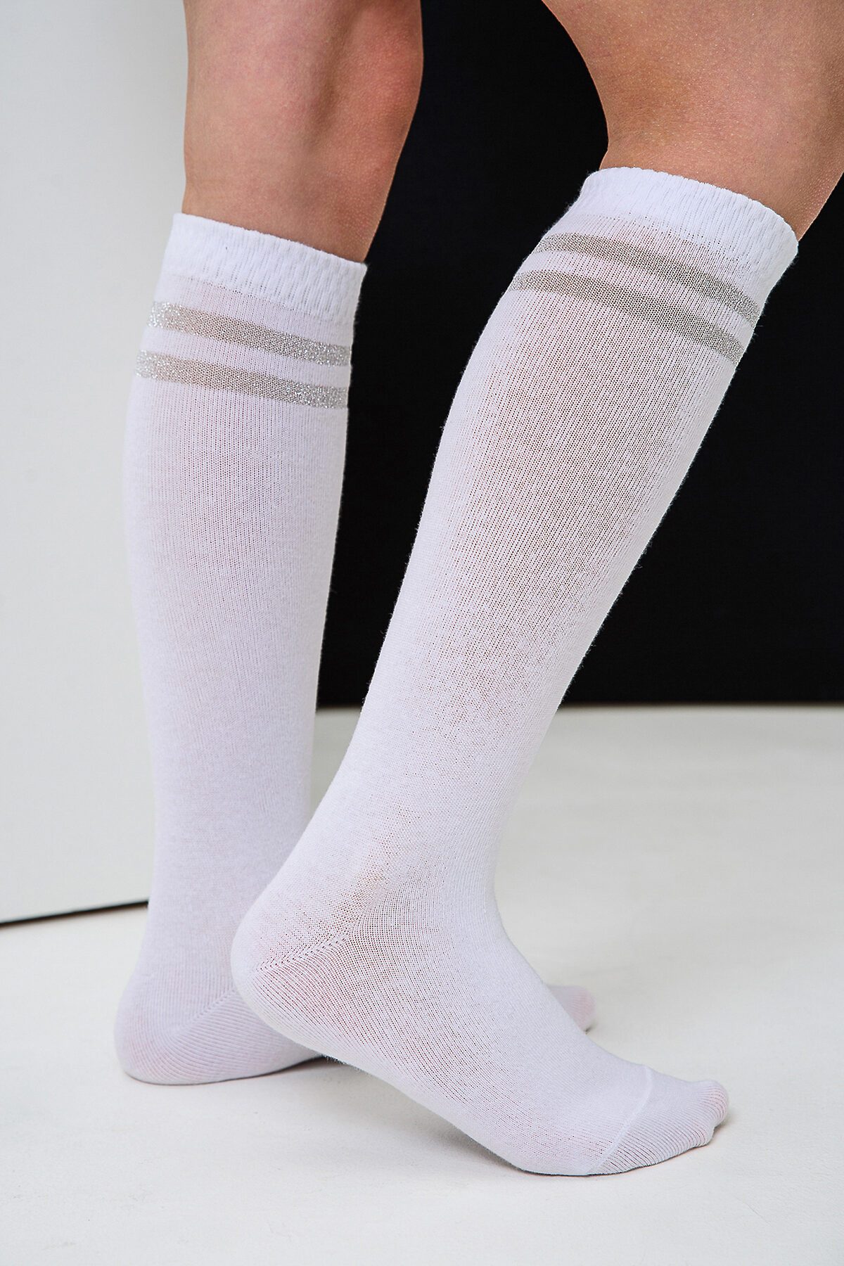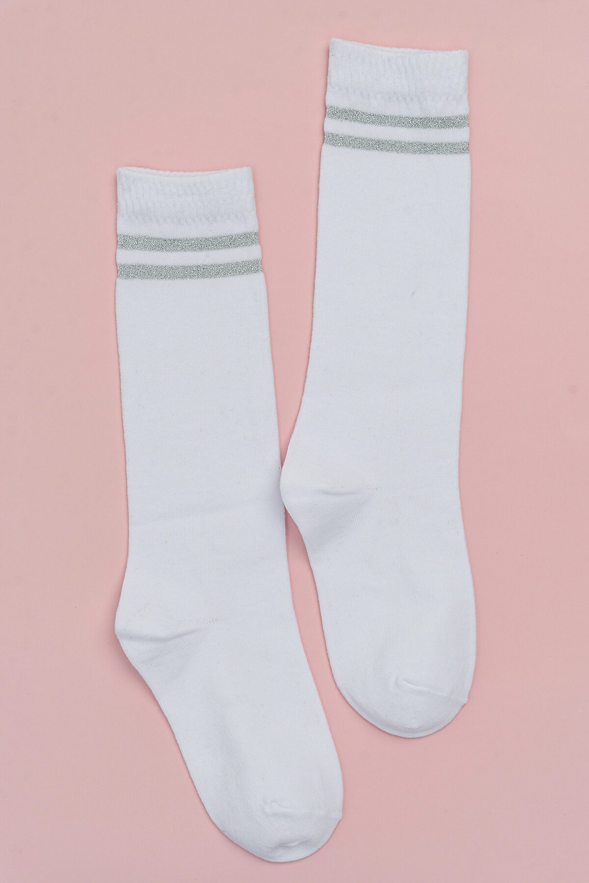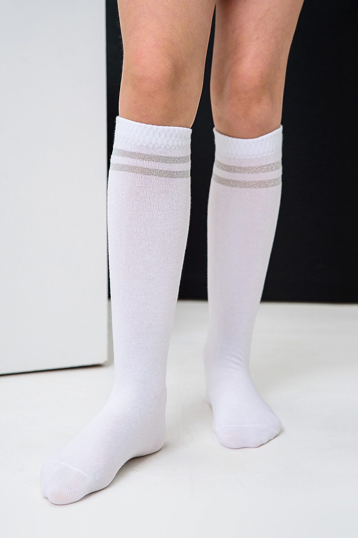 Комплект из двух пар детский гольф. На верхней части носка у самой резинки две полоски выполнены из люрекса - блестящего материала.