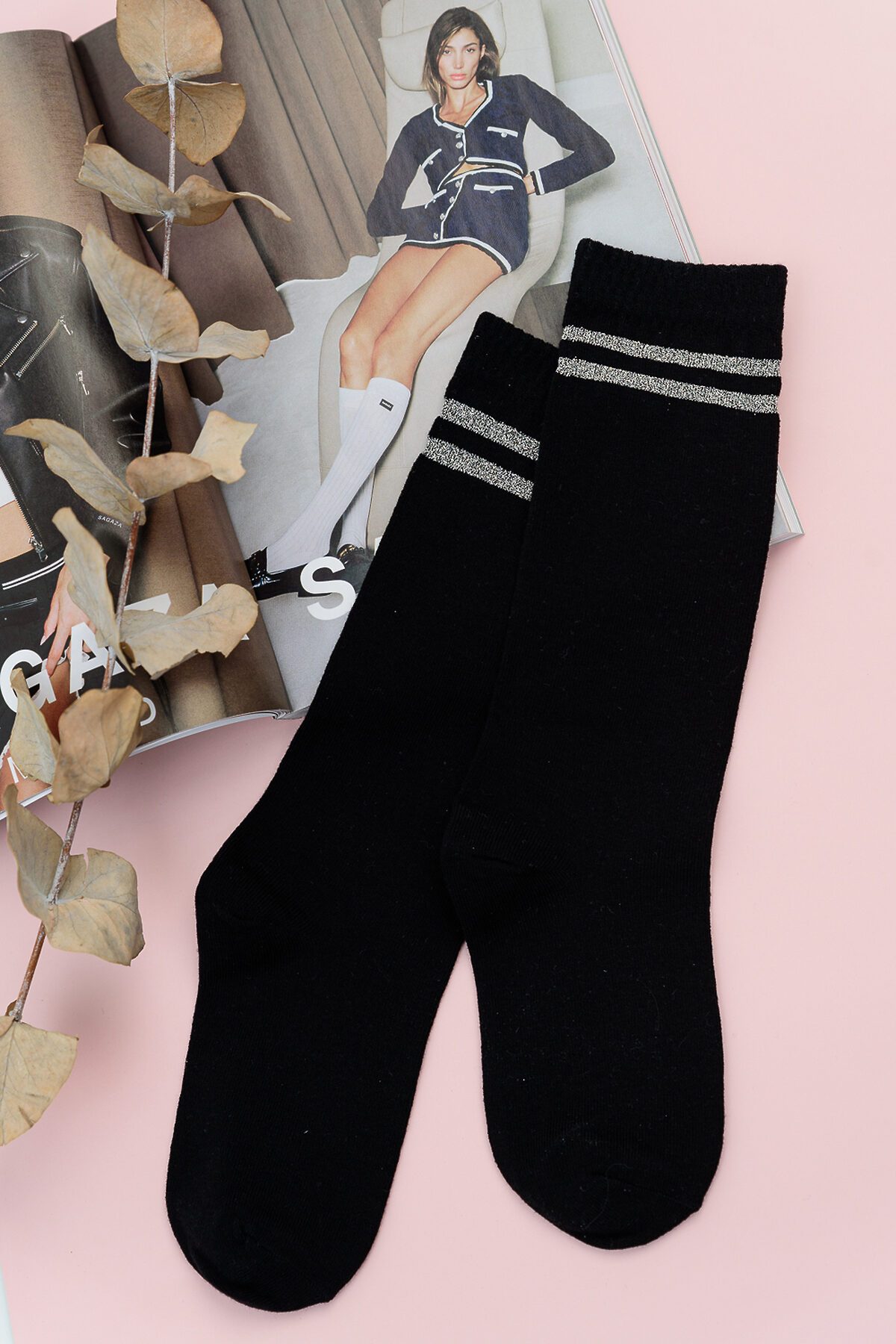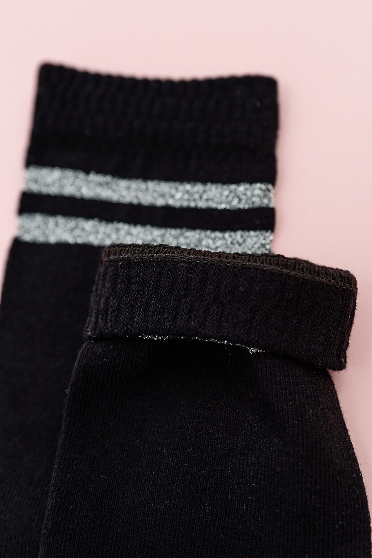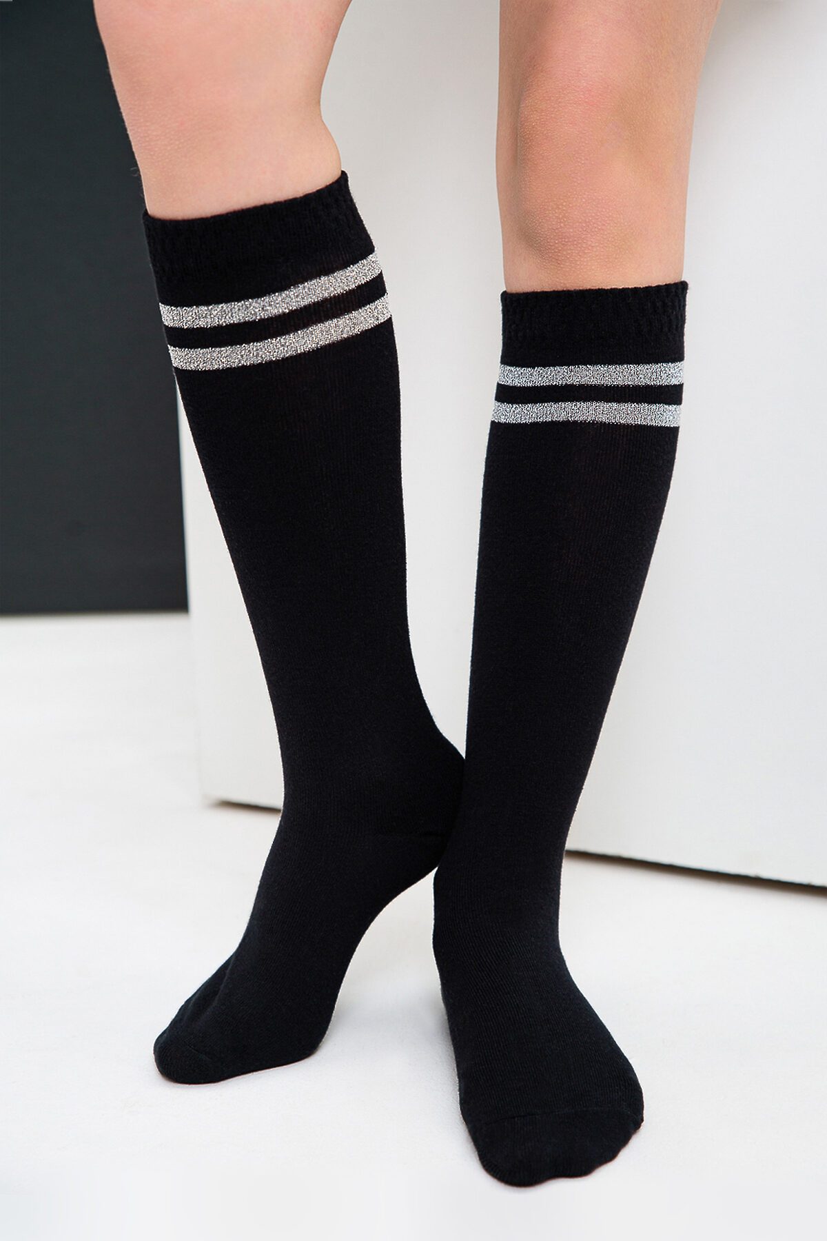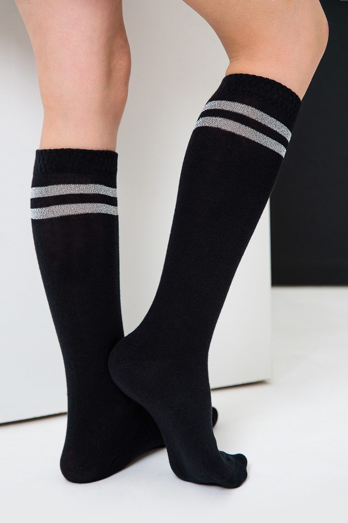 Комплект из двух пар детский гольф. На верхней части носка у самой резинки две полоски выполнены из люрекса - блестящего материала.